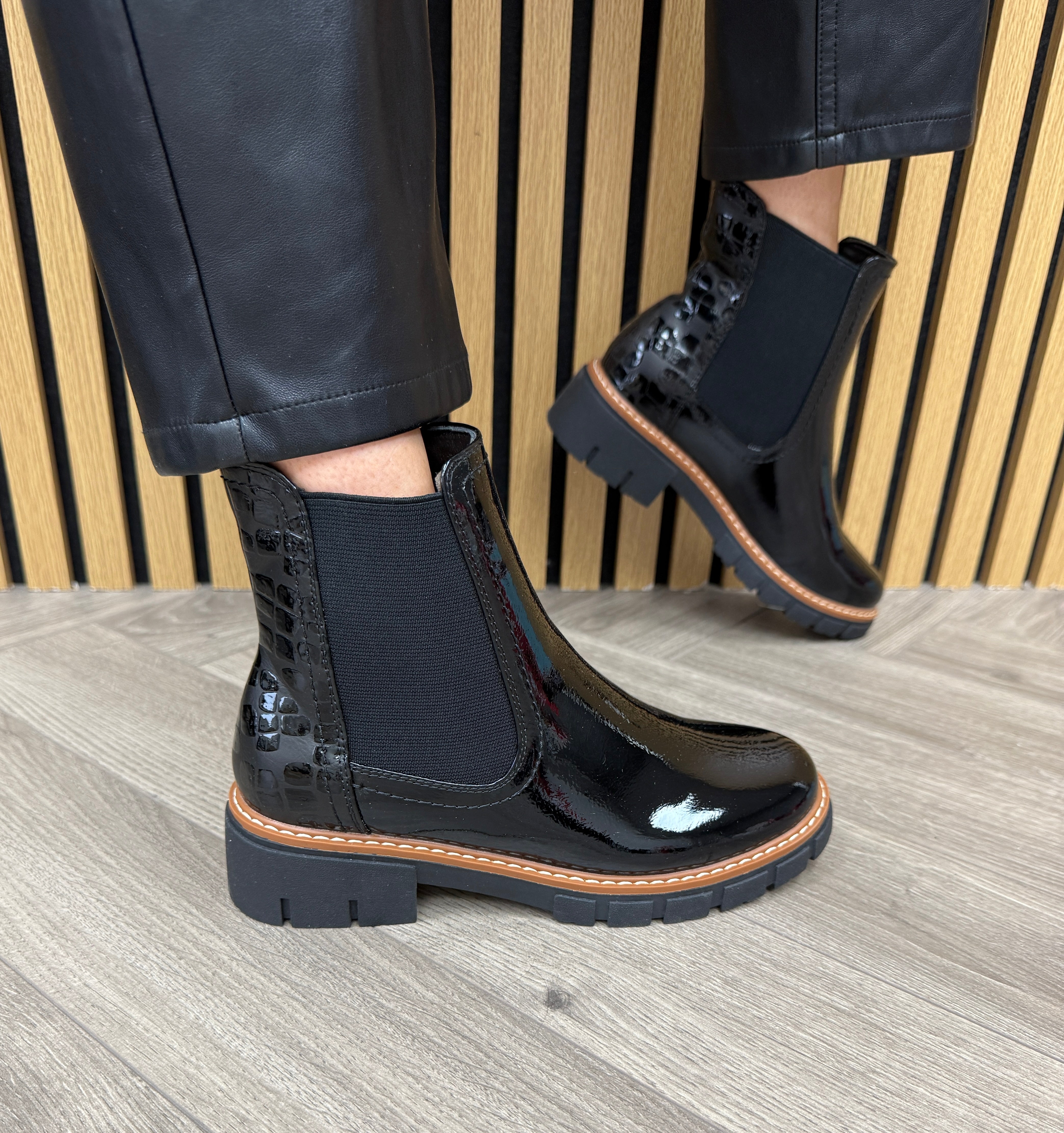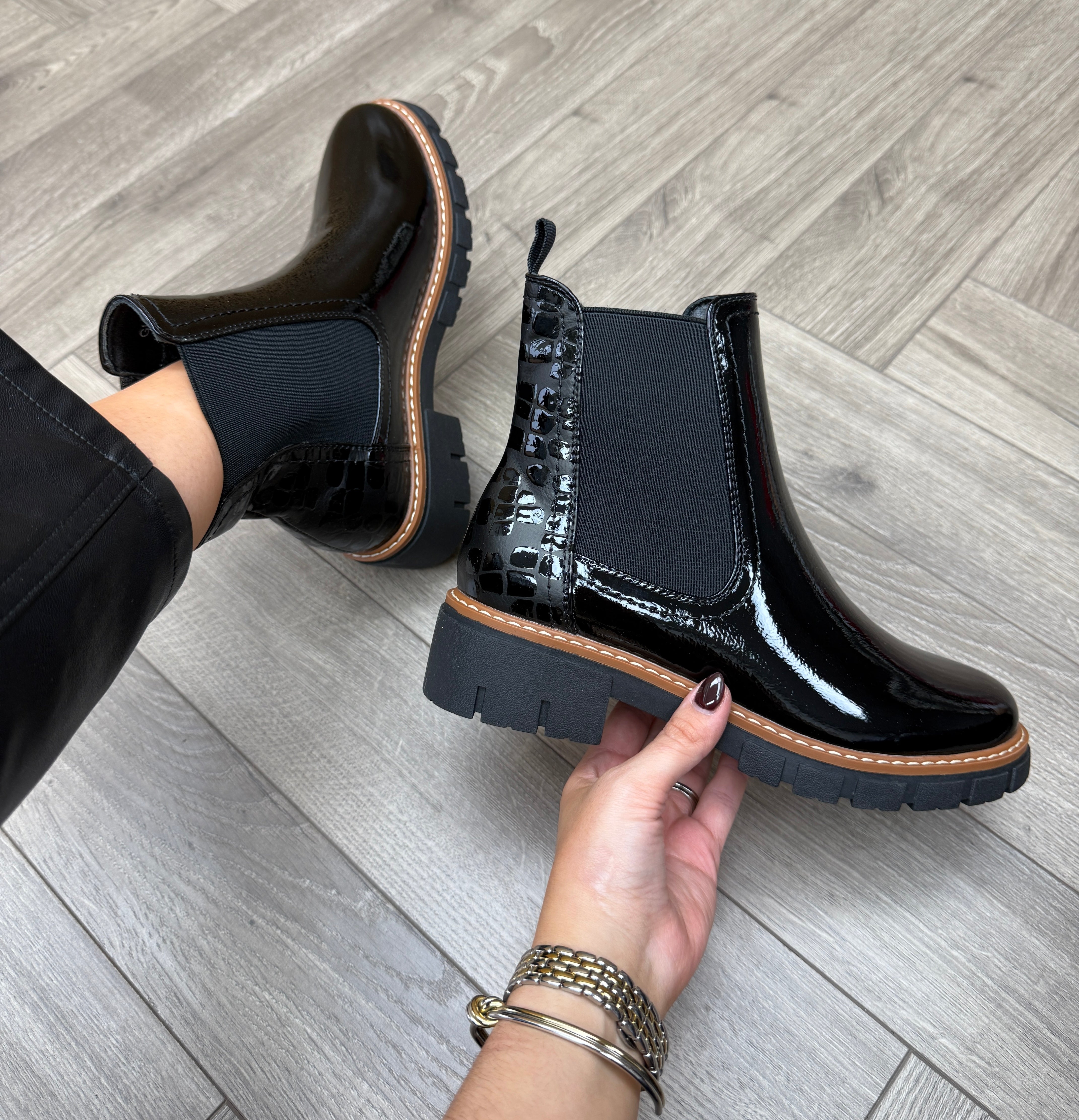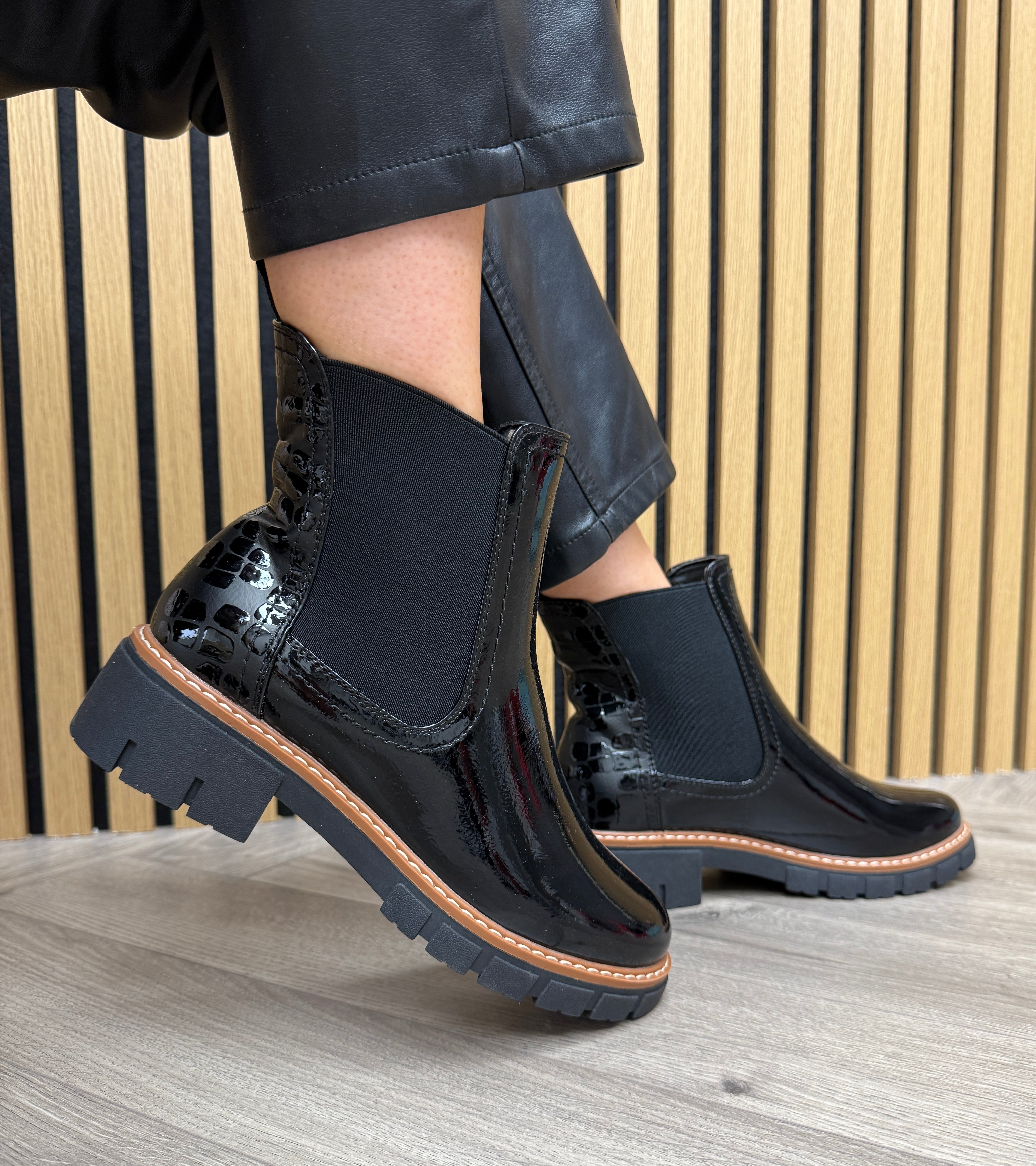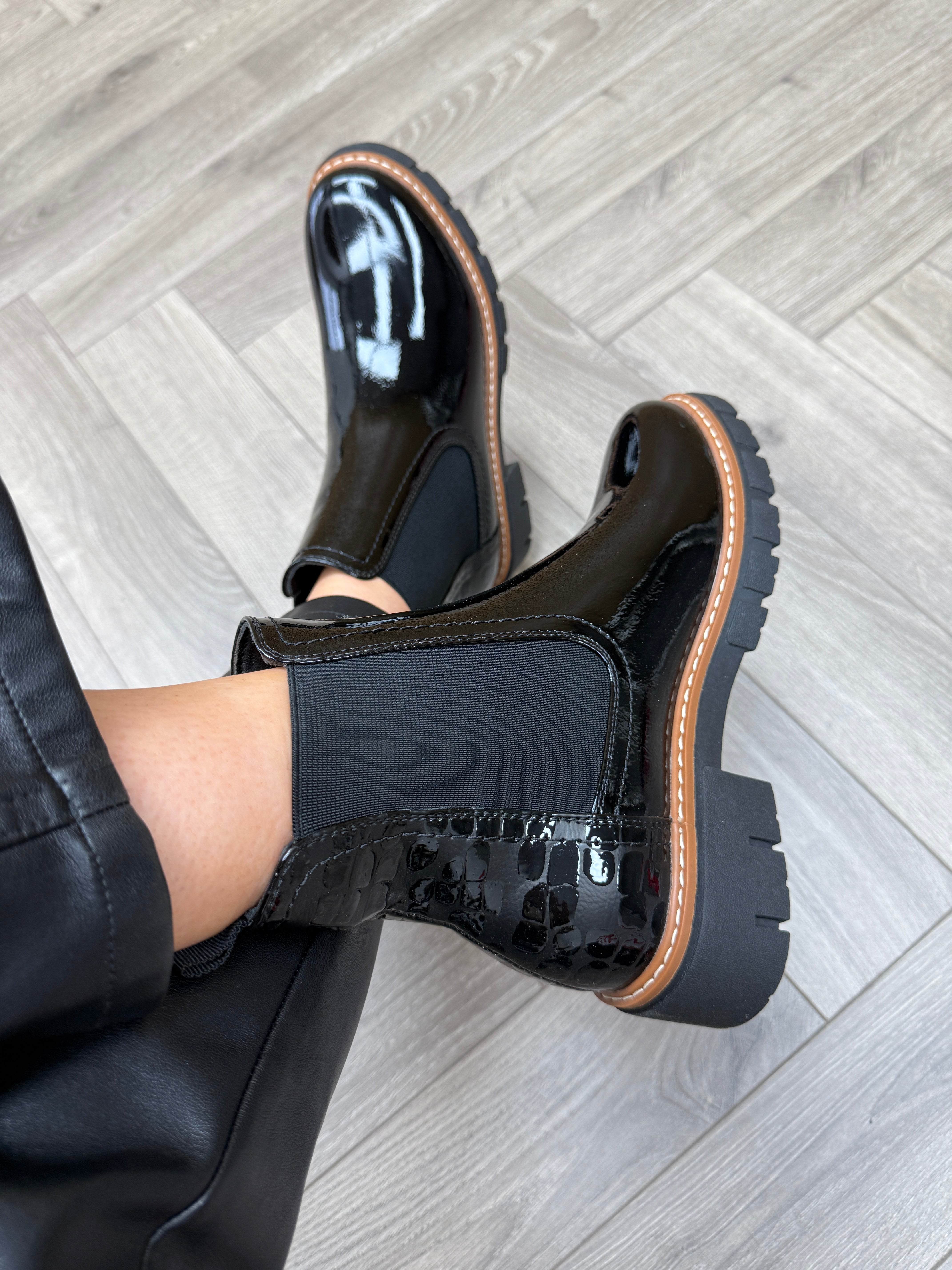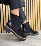 Lunar ‘Peace’ Patent Pull On Ankle Boot GLB222 - Black (L24)