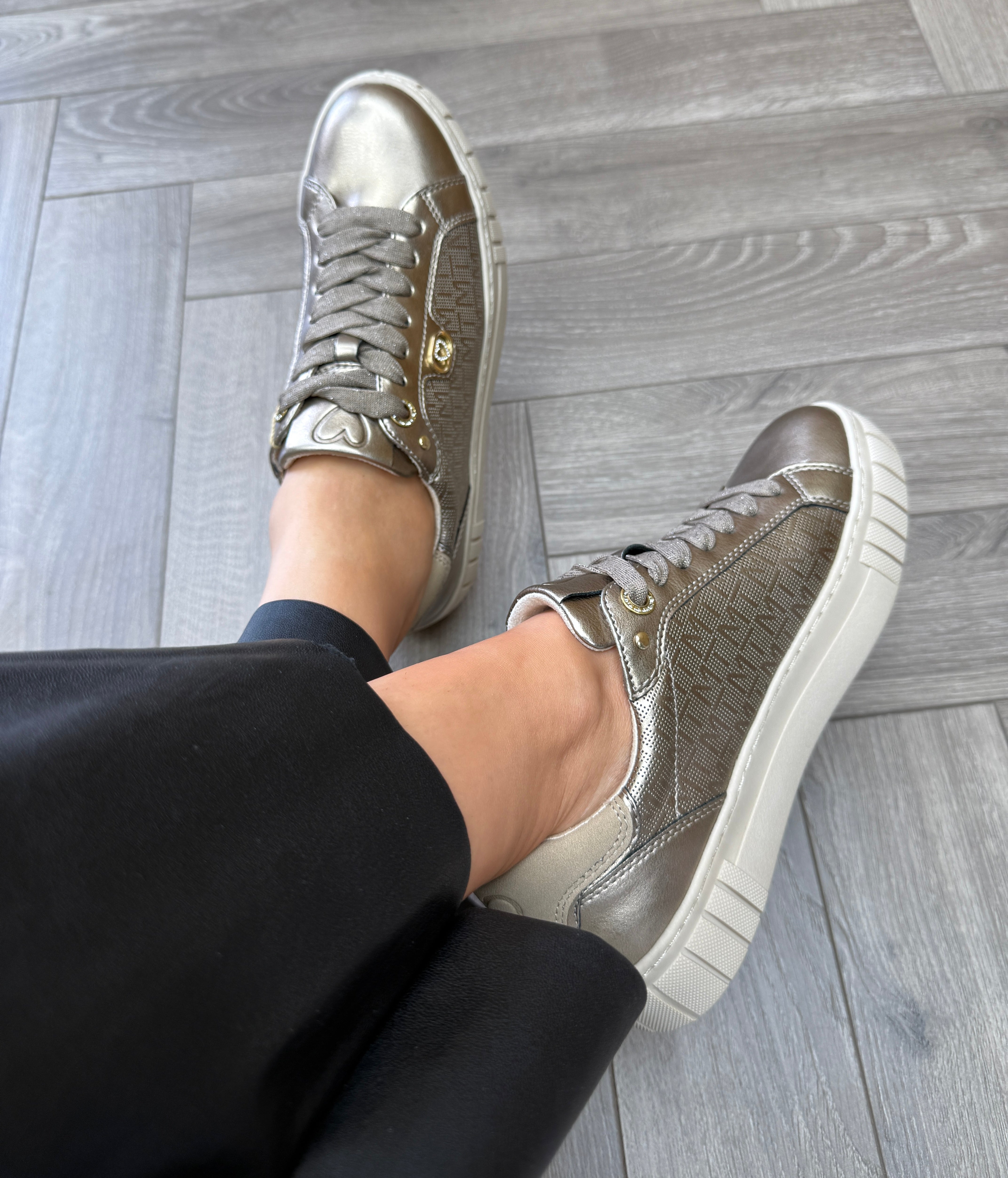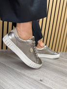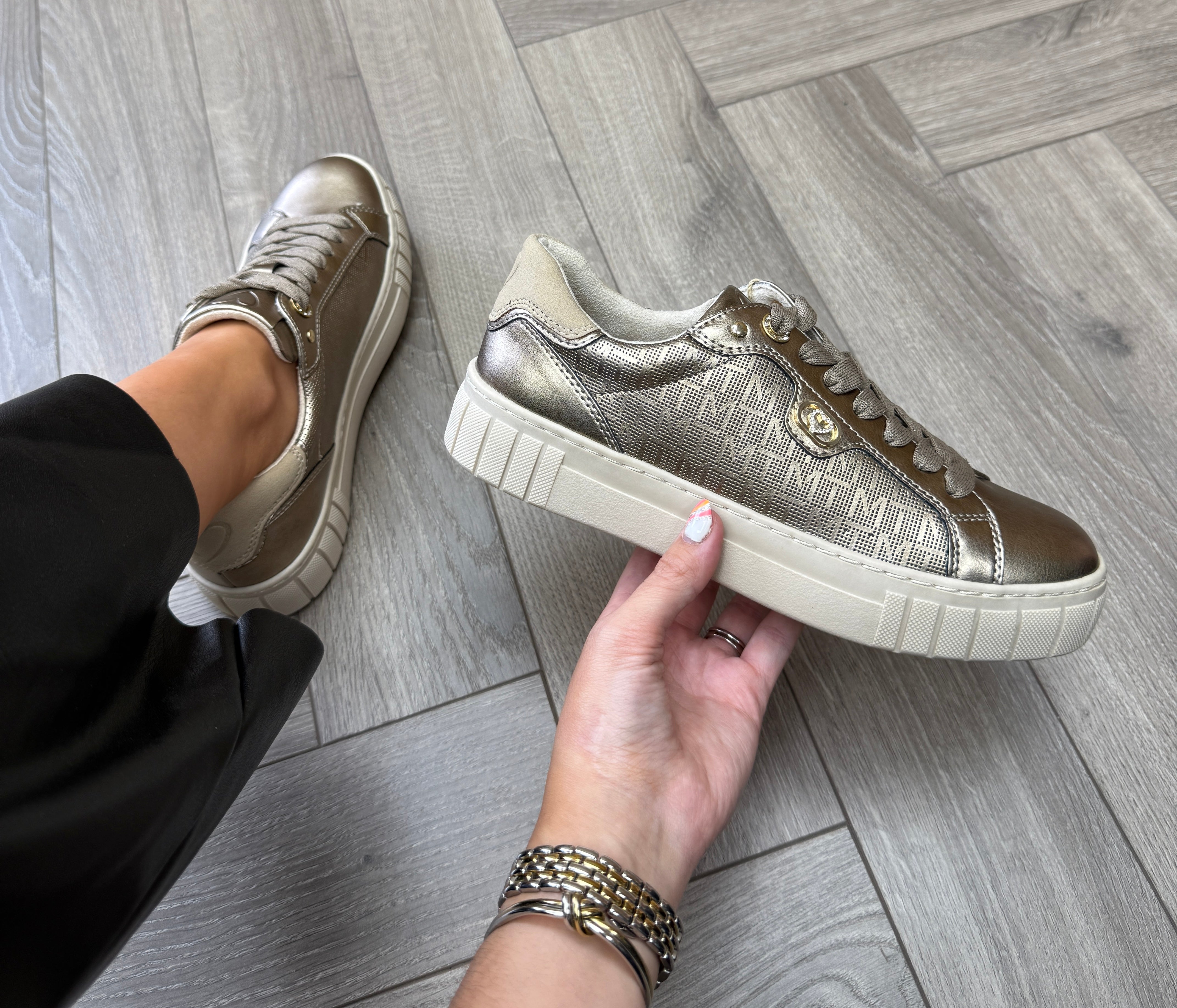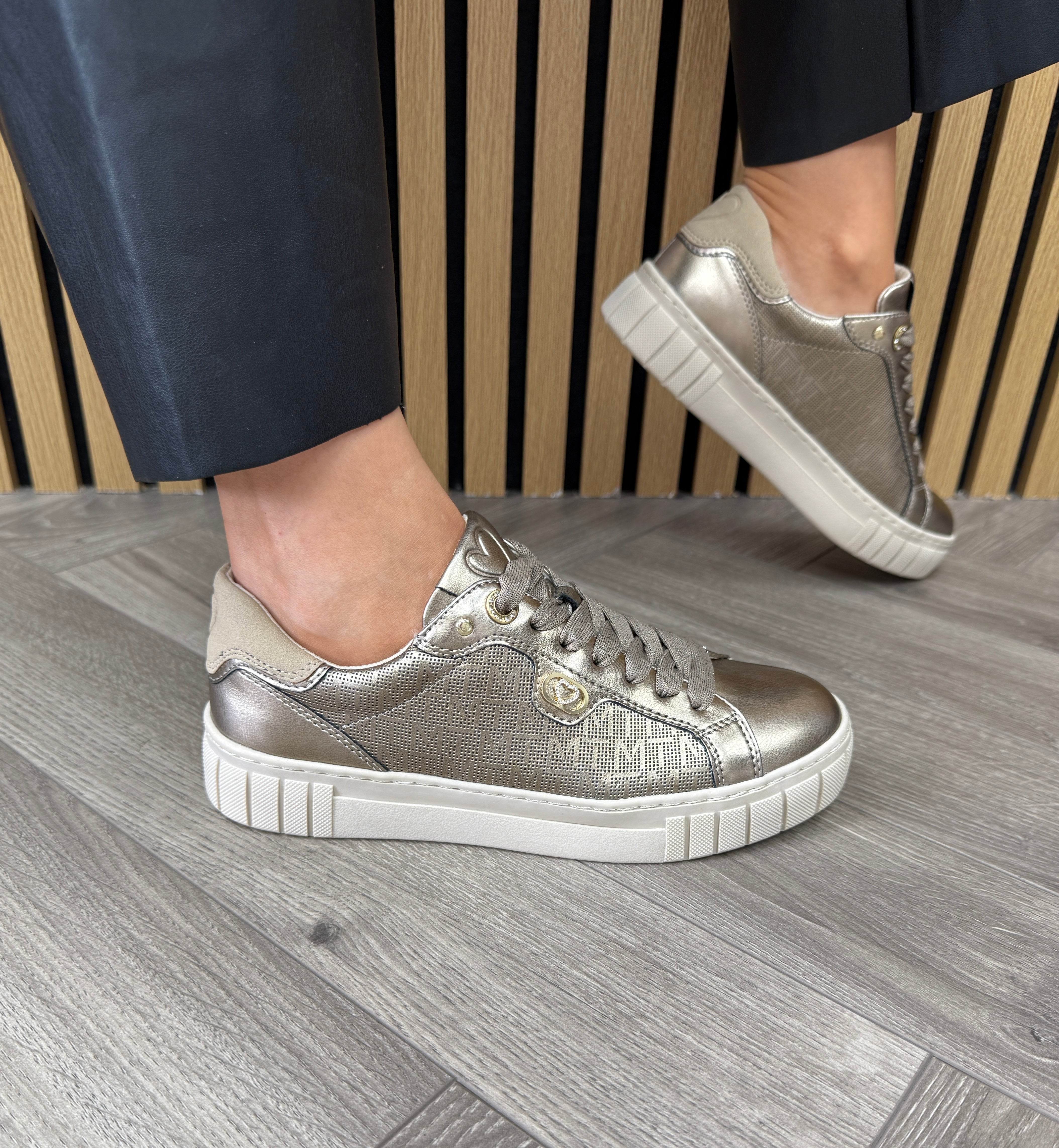 Marco Tozzi 2-23727-45 Metallic Trainer With Logo Print - Dark Gold Comb (MTAW33)
