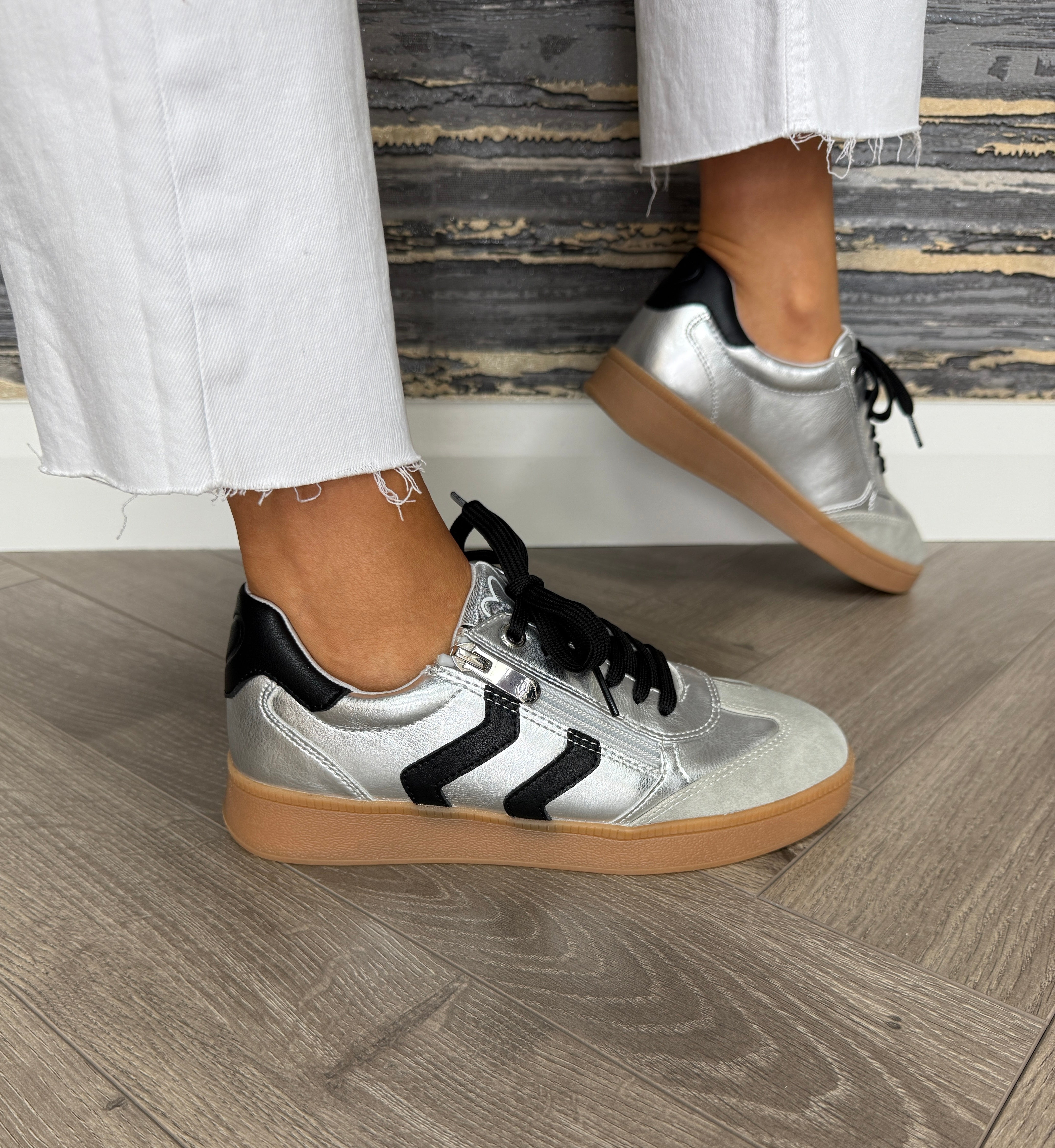 Marco Tozzi (AW25) 2-23739-44 Gum Sole Trainer With Black Strip - Sliver Comb (MTAW4)