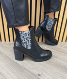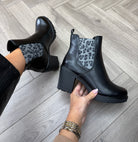 Marco Tozzi 2-25414-41 Slip On Heeled Boot With Printed Gusset - Black Comb (MT54)