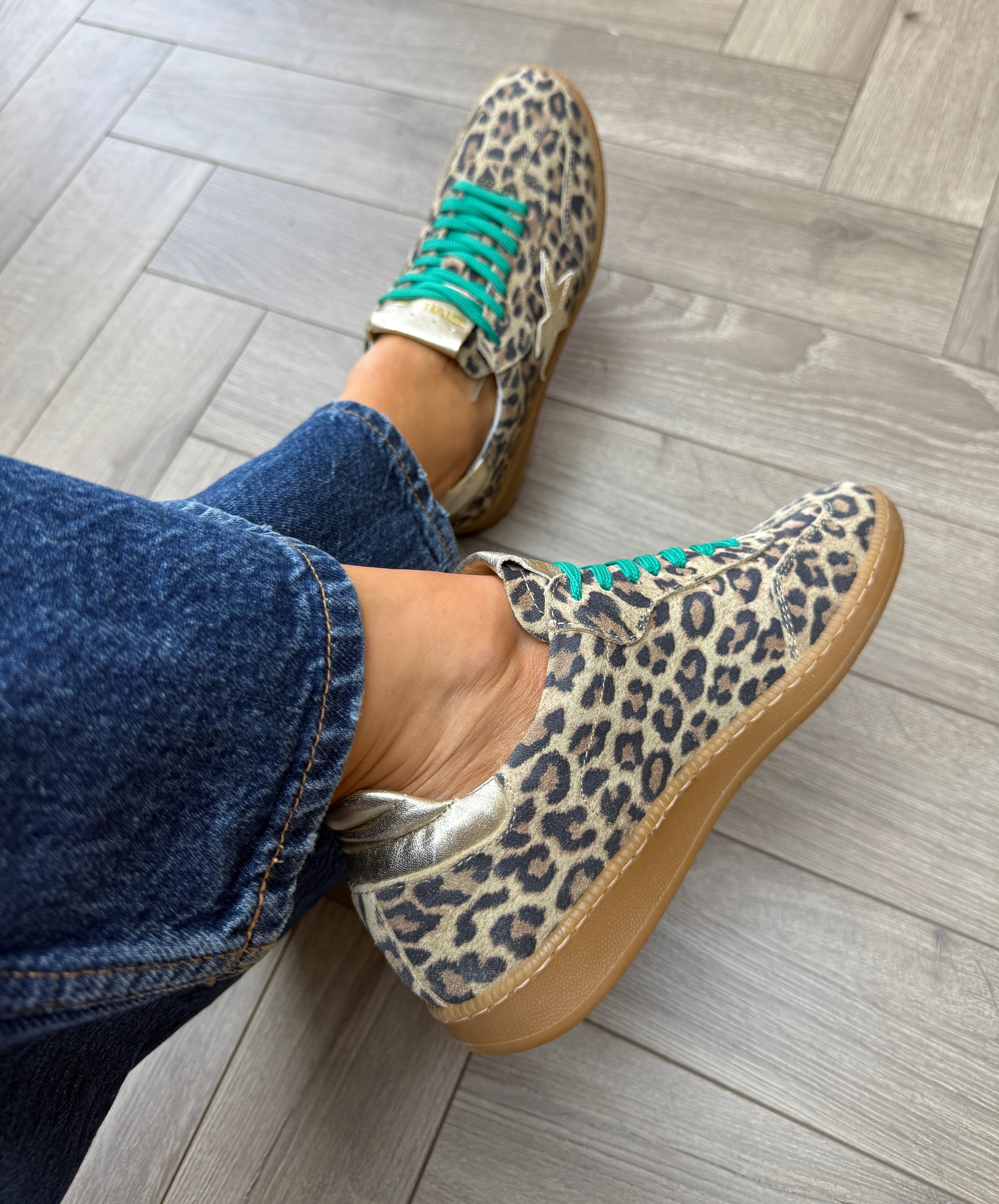 Meline 525 R Gum Sole Leopard Trainer With Green Lace - Acid-Leop Cromlam/Platino/F.Do Ambra (ME9)