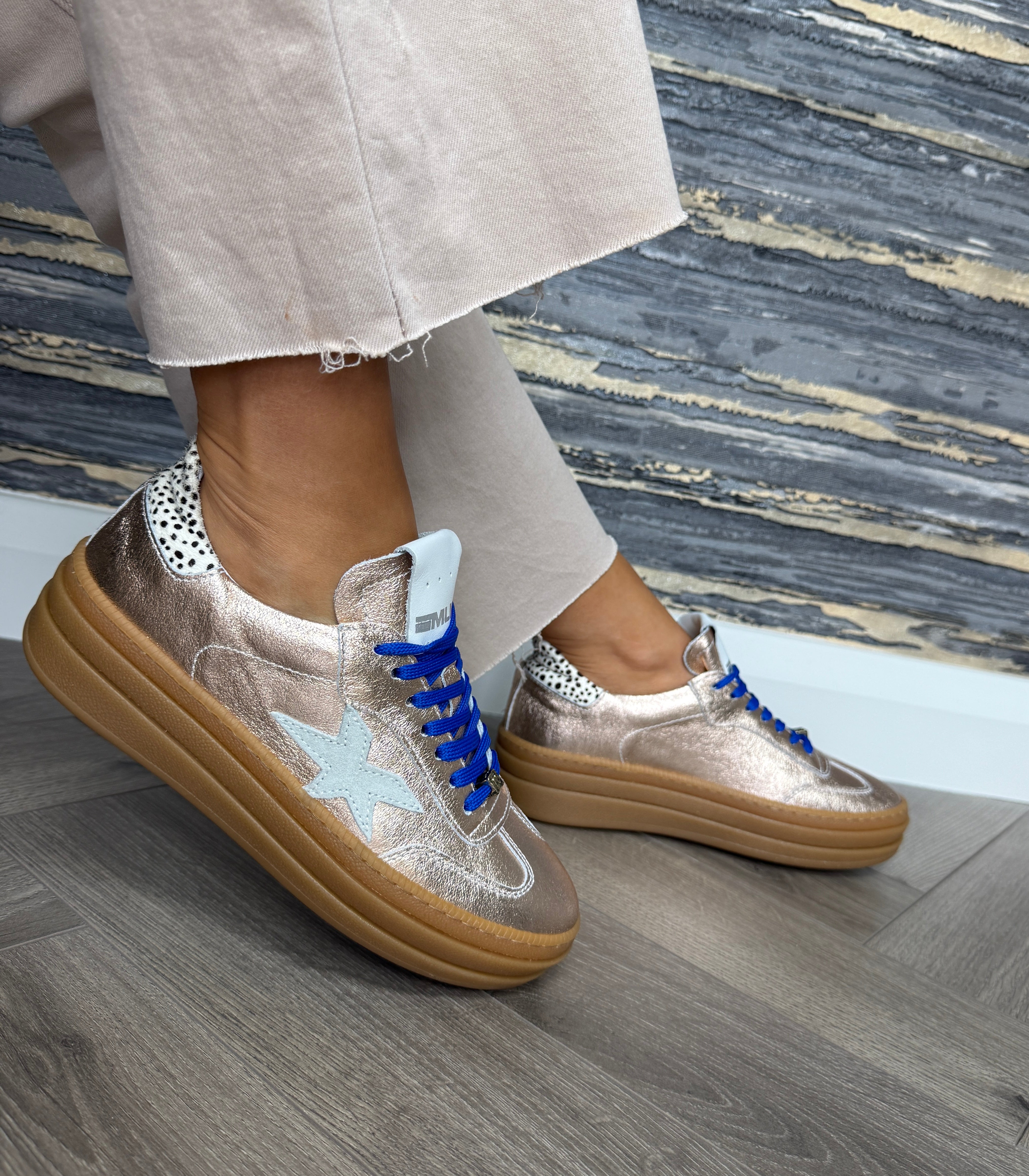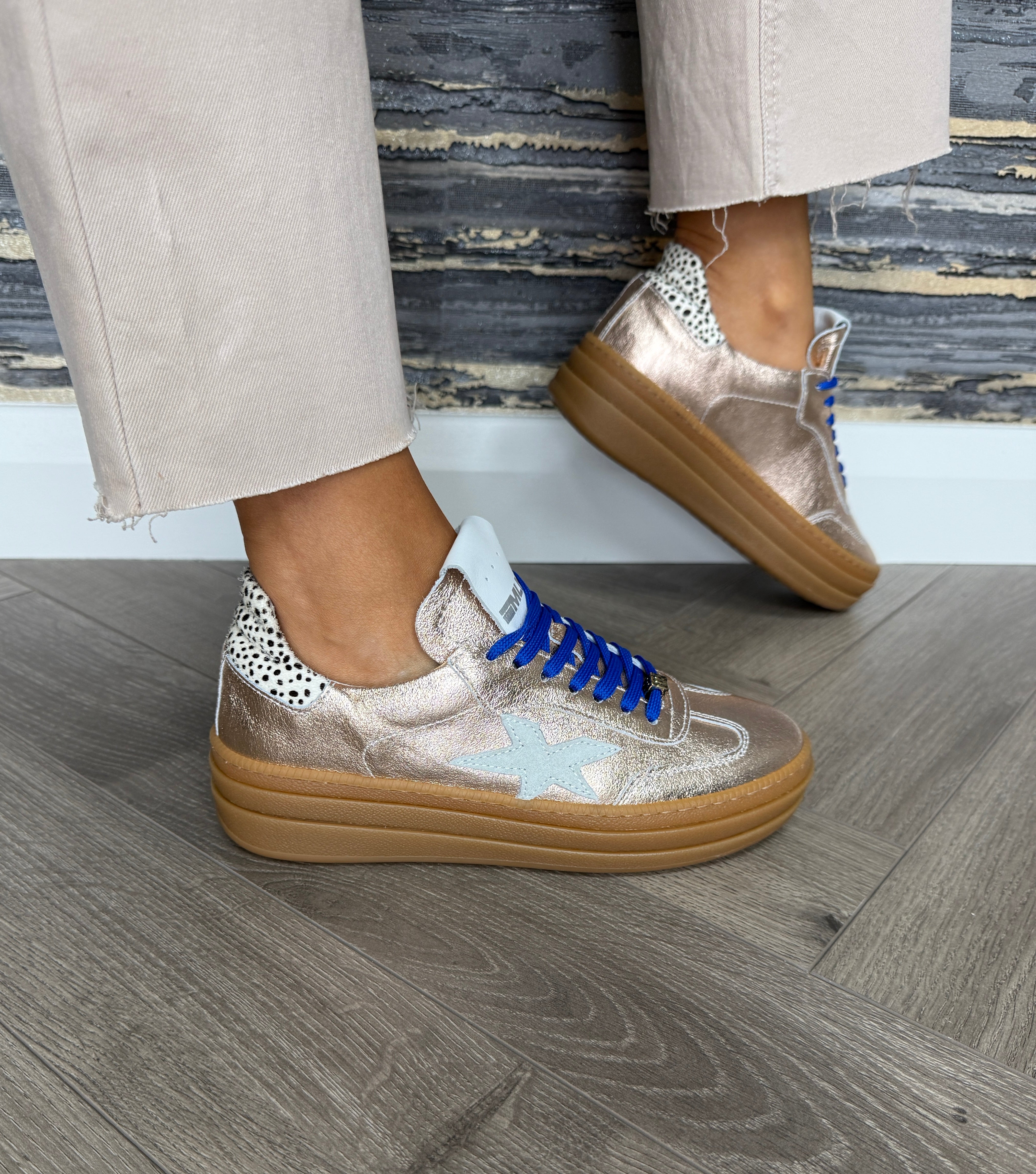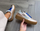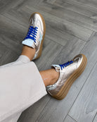 Meline (AW25) 525 Z W-92 Flatform Gum Sole Metallic Trainer With Royal Blue Lace - Rosa Cav (MEAW3)