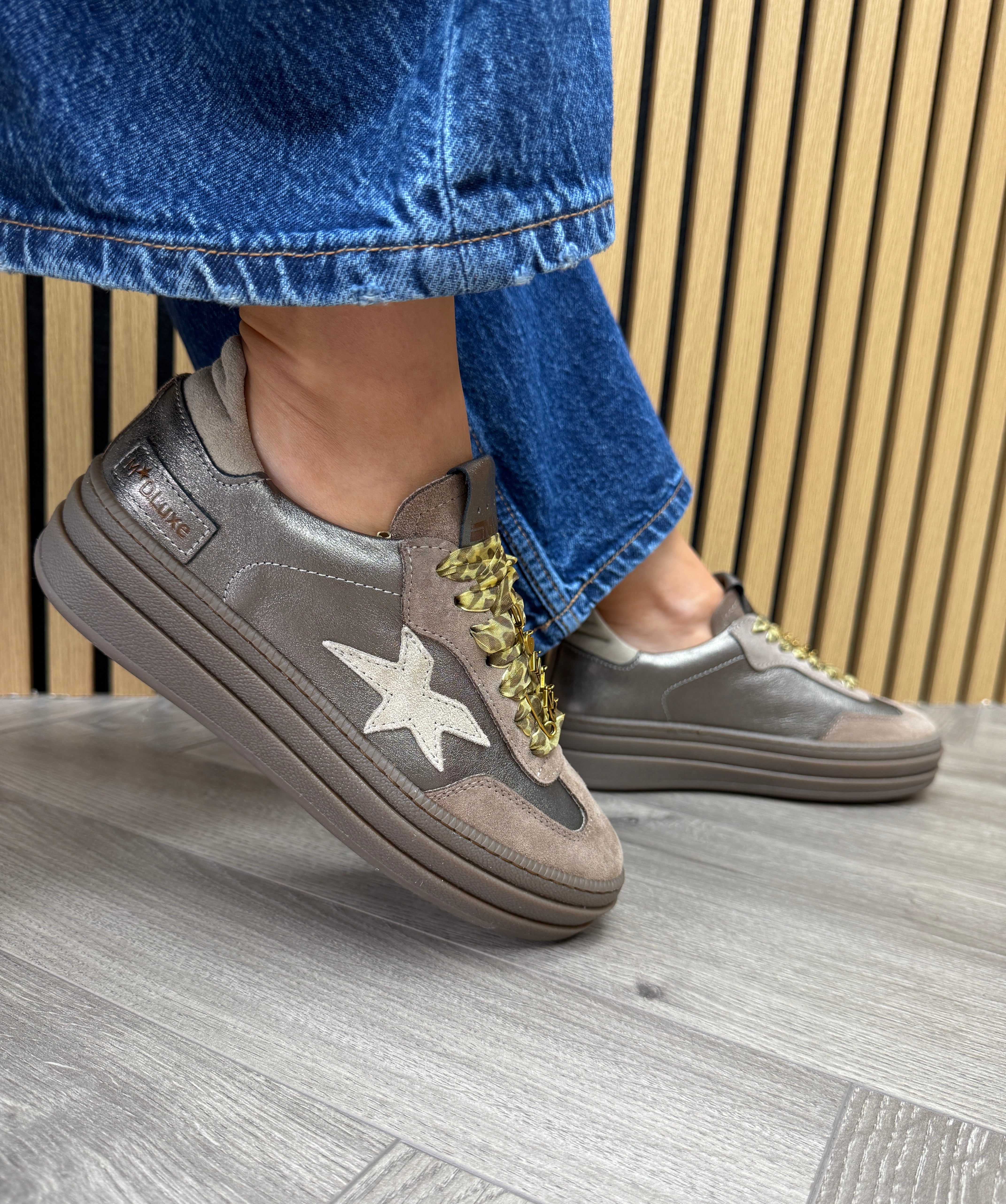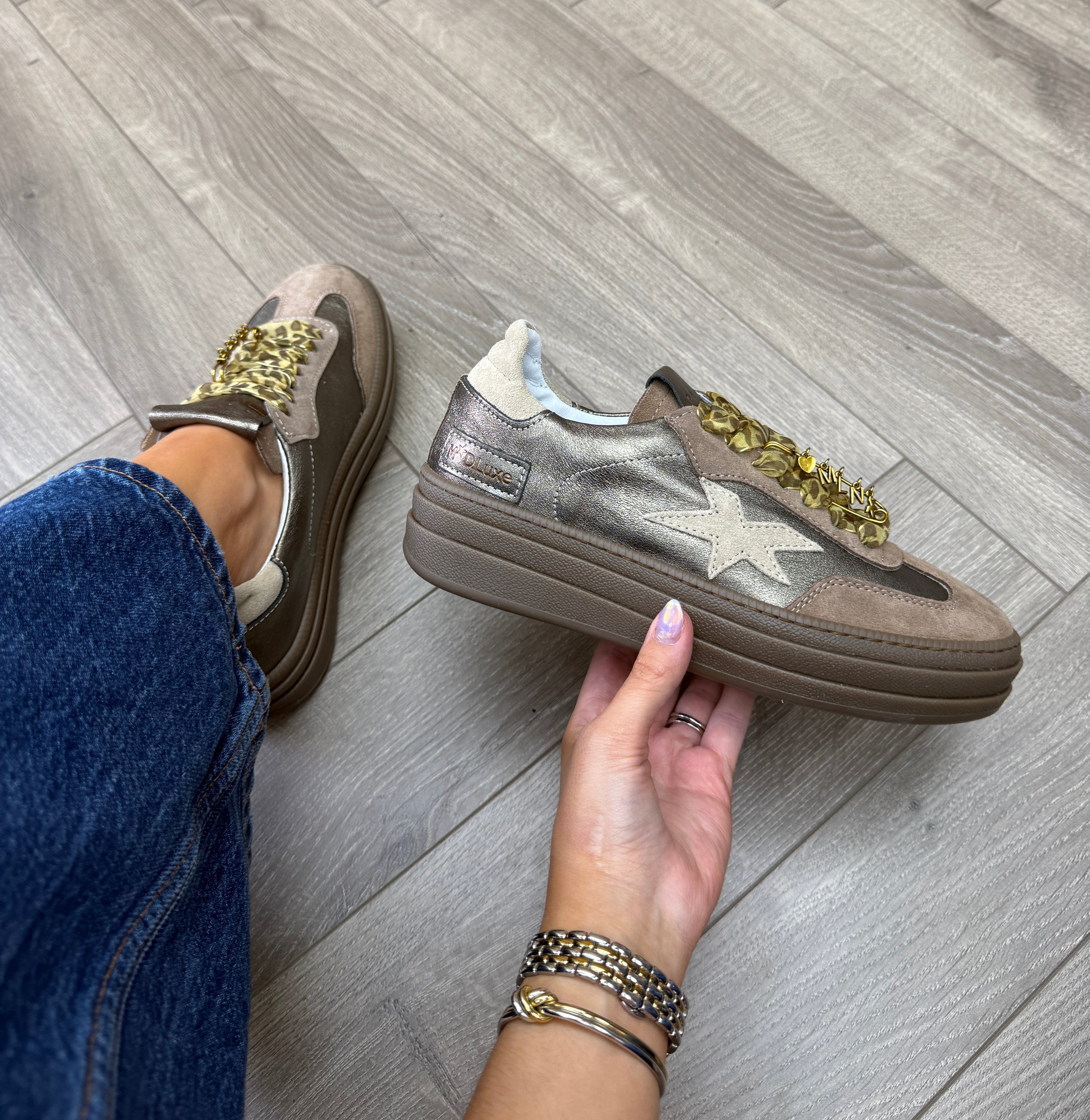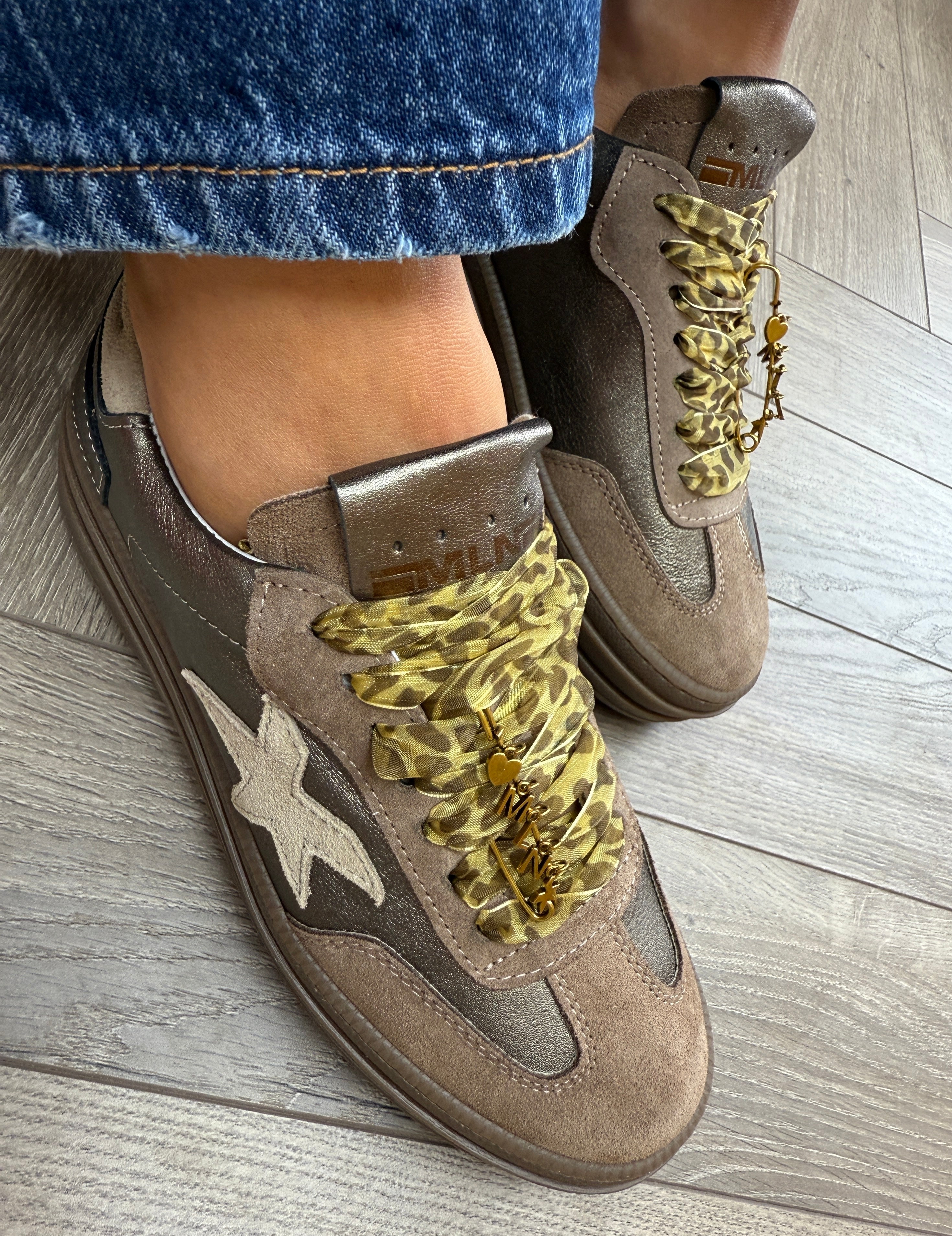 Meline 526 M-Z Platform Trainer With Printed Chiffon Laces - Taupe (ME11AW)