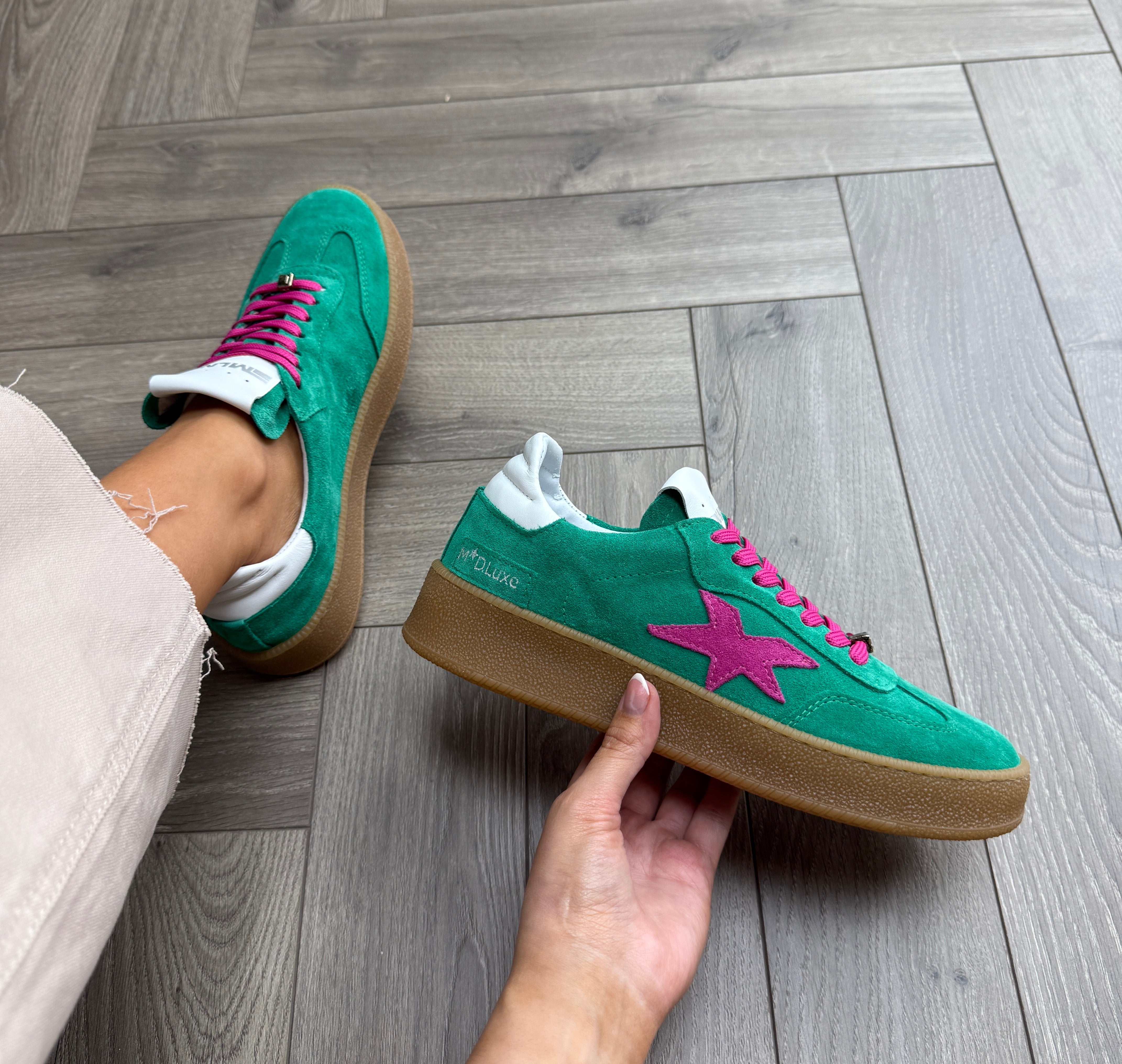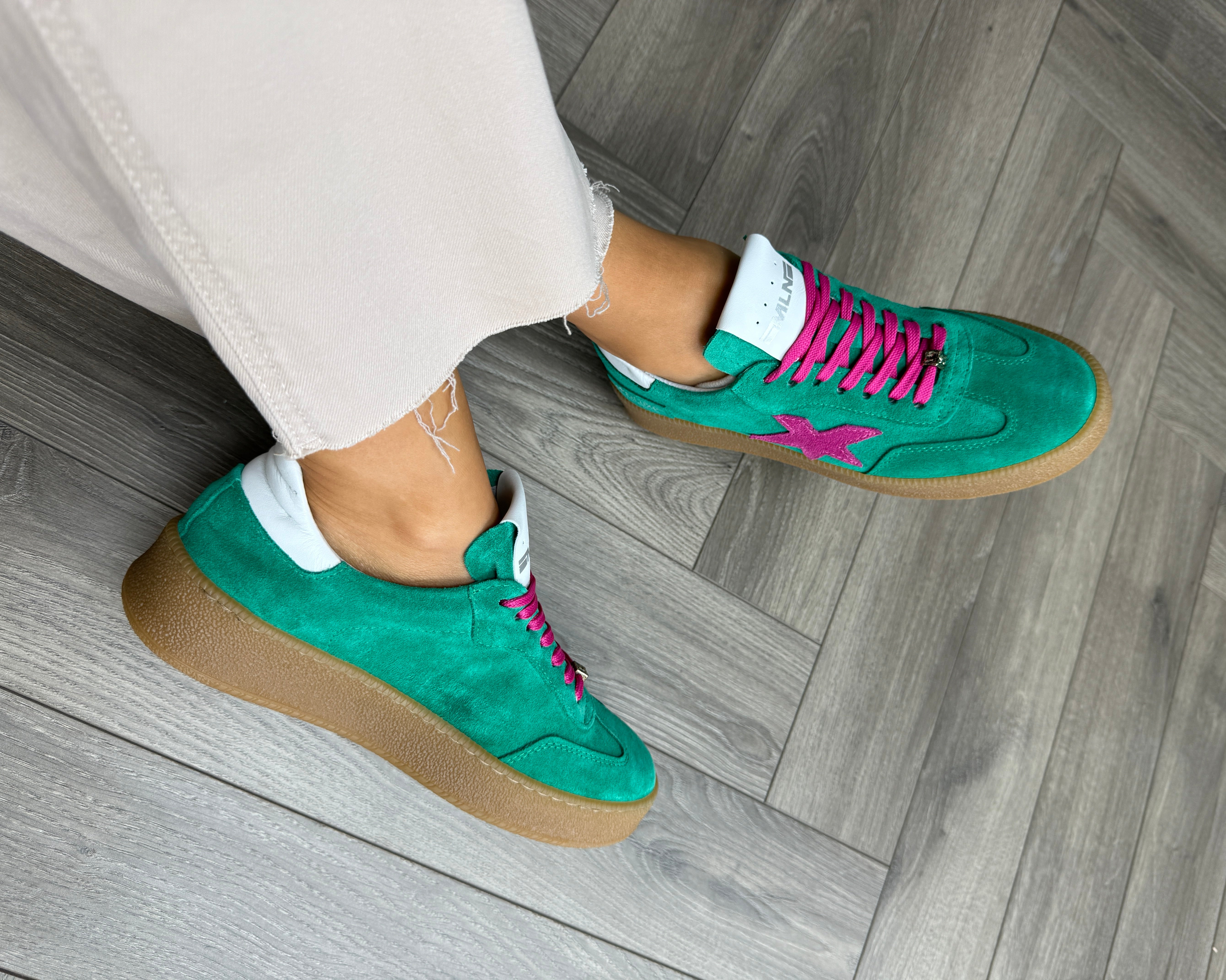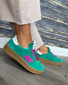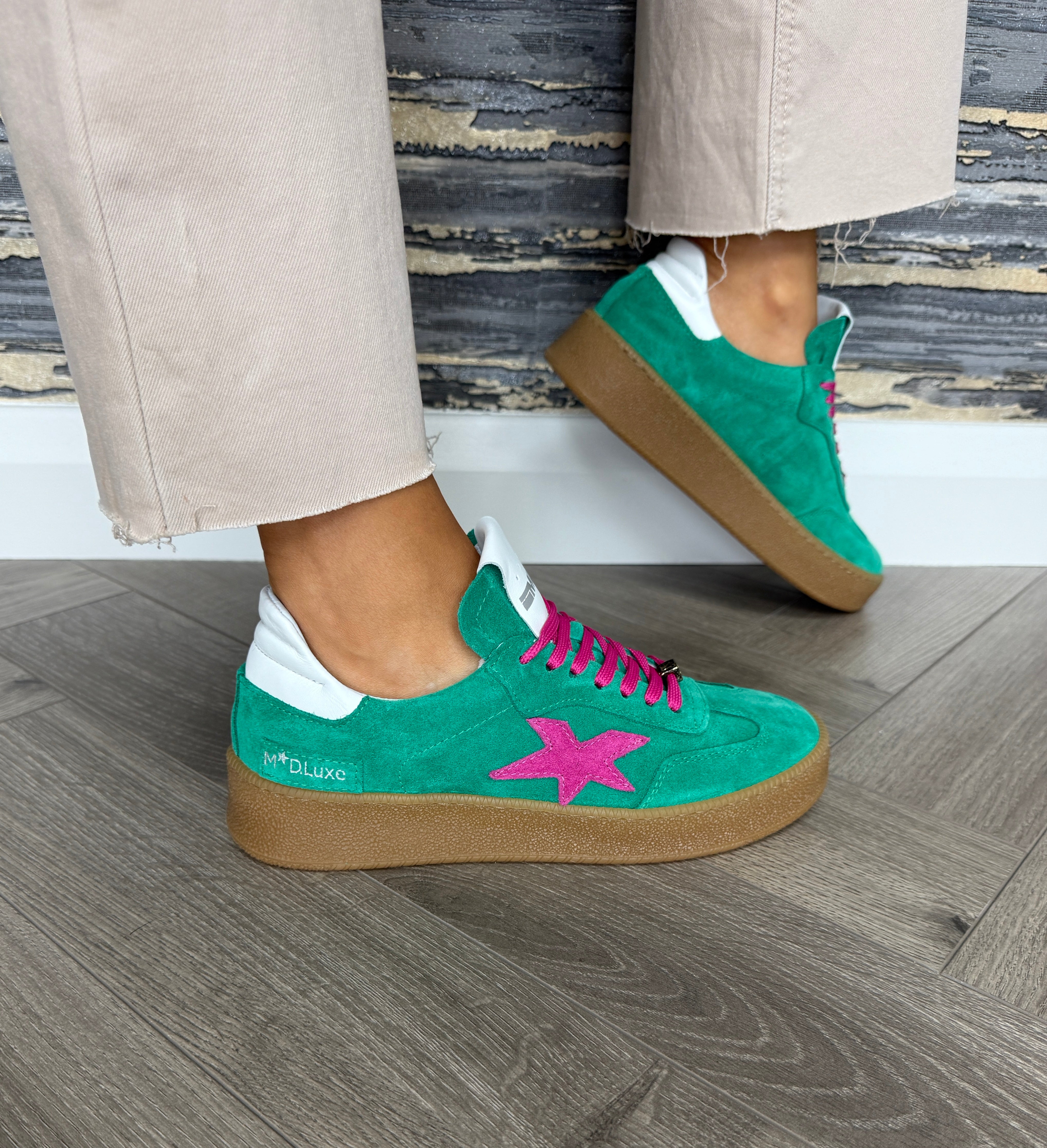 Meline (AW25) 526 SBT W-97 Platform Gum Sole Trainer With Fuchsia Pink Lace And Star - London Green (MEAW2)