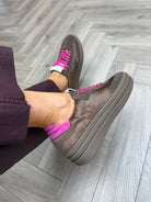 Meline (ME13) Platform Trainer With Bright Pink Laces 526 Z - Coffee