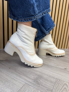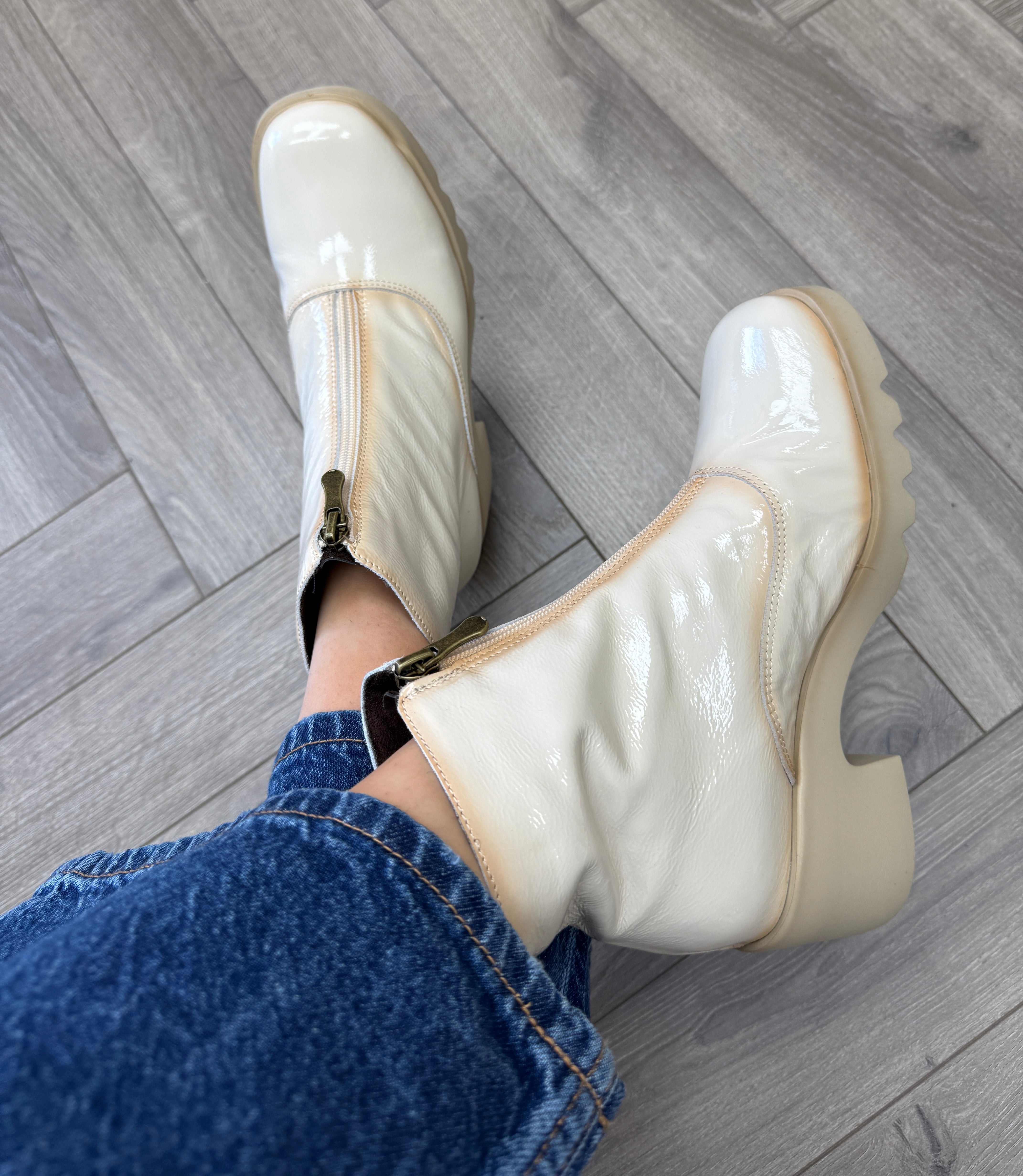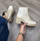 Pepe Saenz ‘PS21225’ Patent Front Zip Chunky Heel Boot - Greige (PS1AW)
