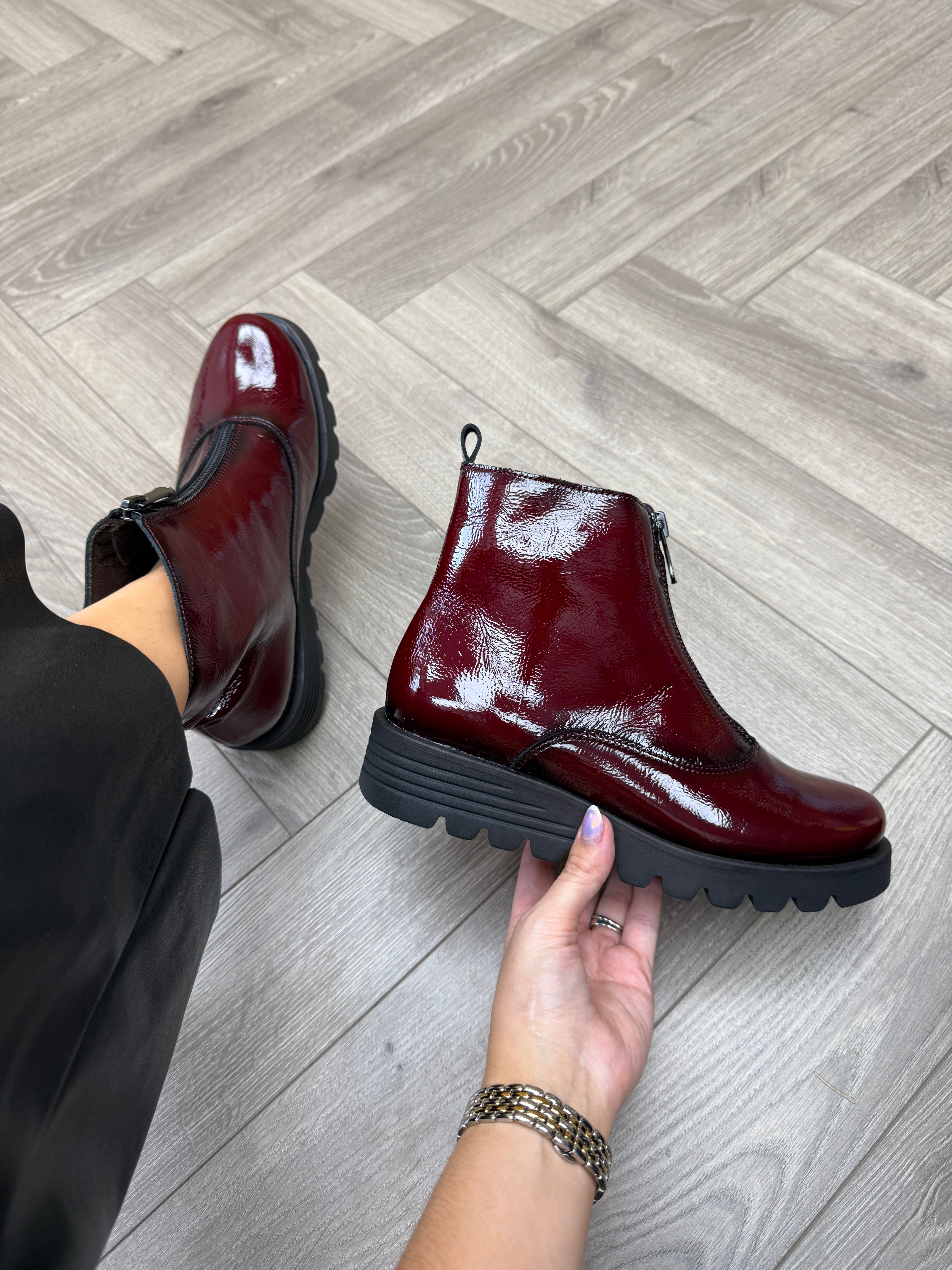 Pepe Saenz ‘PS21544’ Patent Front Zip Wedge Boot - Burdeos (PS2AW)