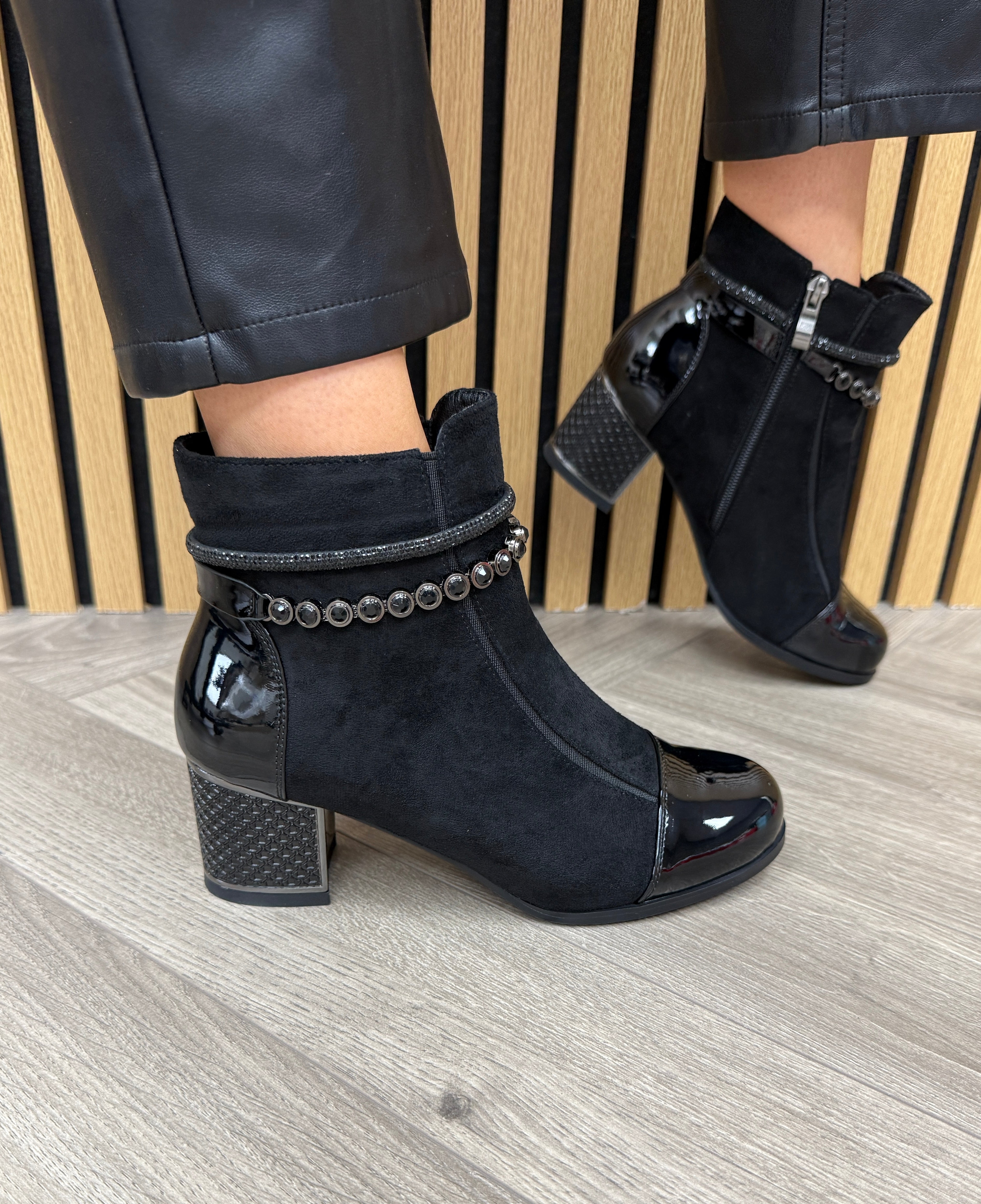 Redz ‘1901’ Ankle Boot With Diamanté Strap Strap - Black (R6)