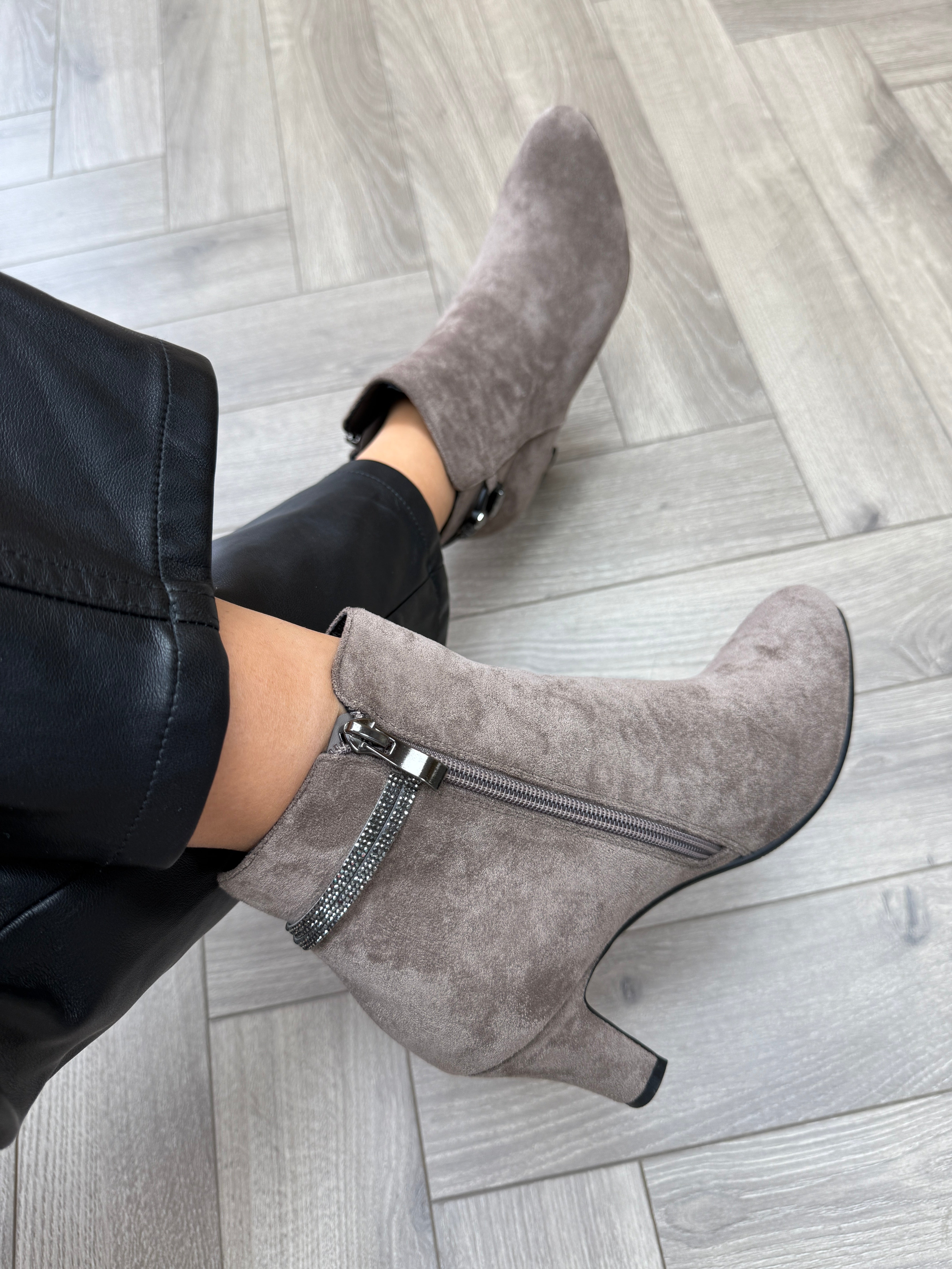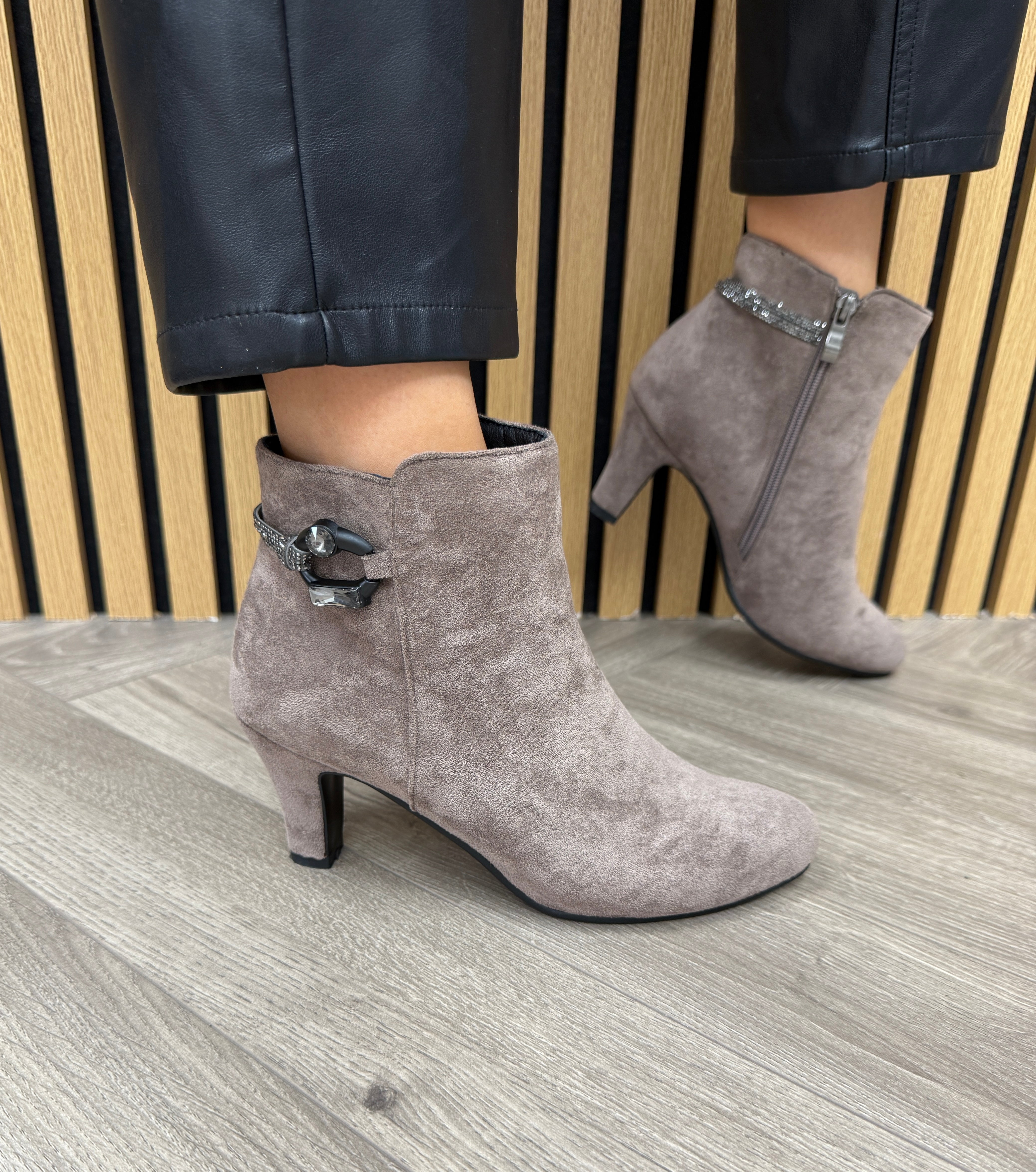 Redz ‘D6397’ Heeled Ankle Boot With Diamanté Strap - Taupe (R2)