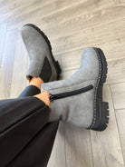 True to size. Zip access. Faux Nubuck leather.