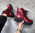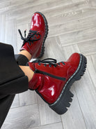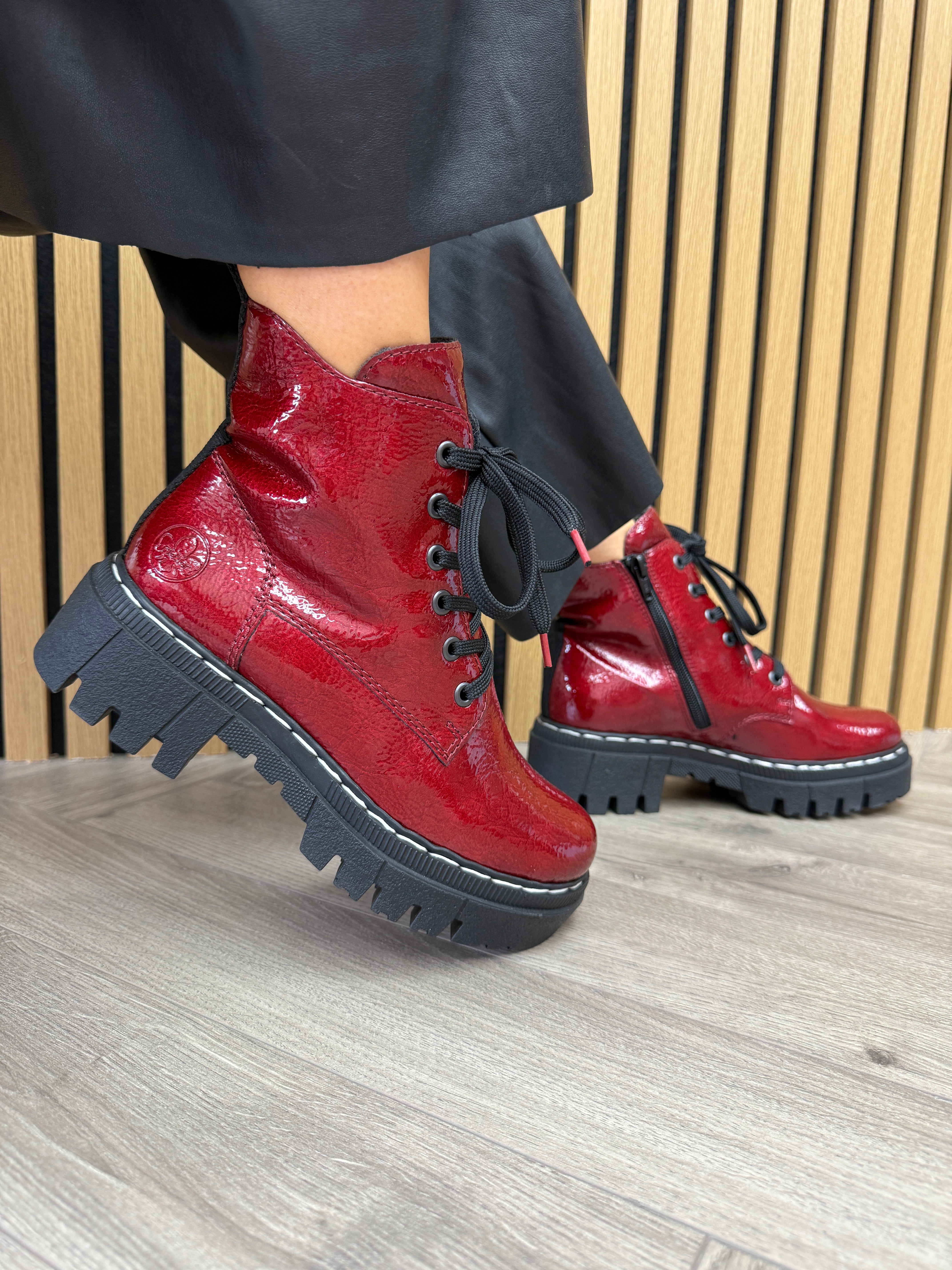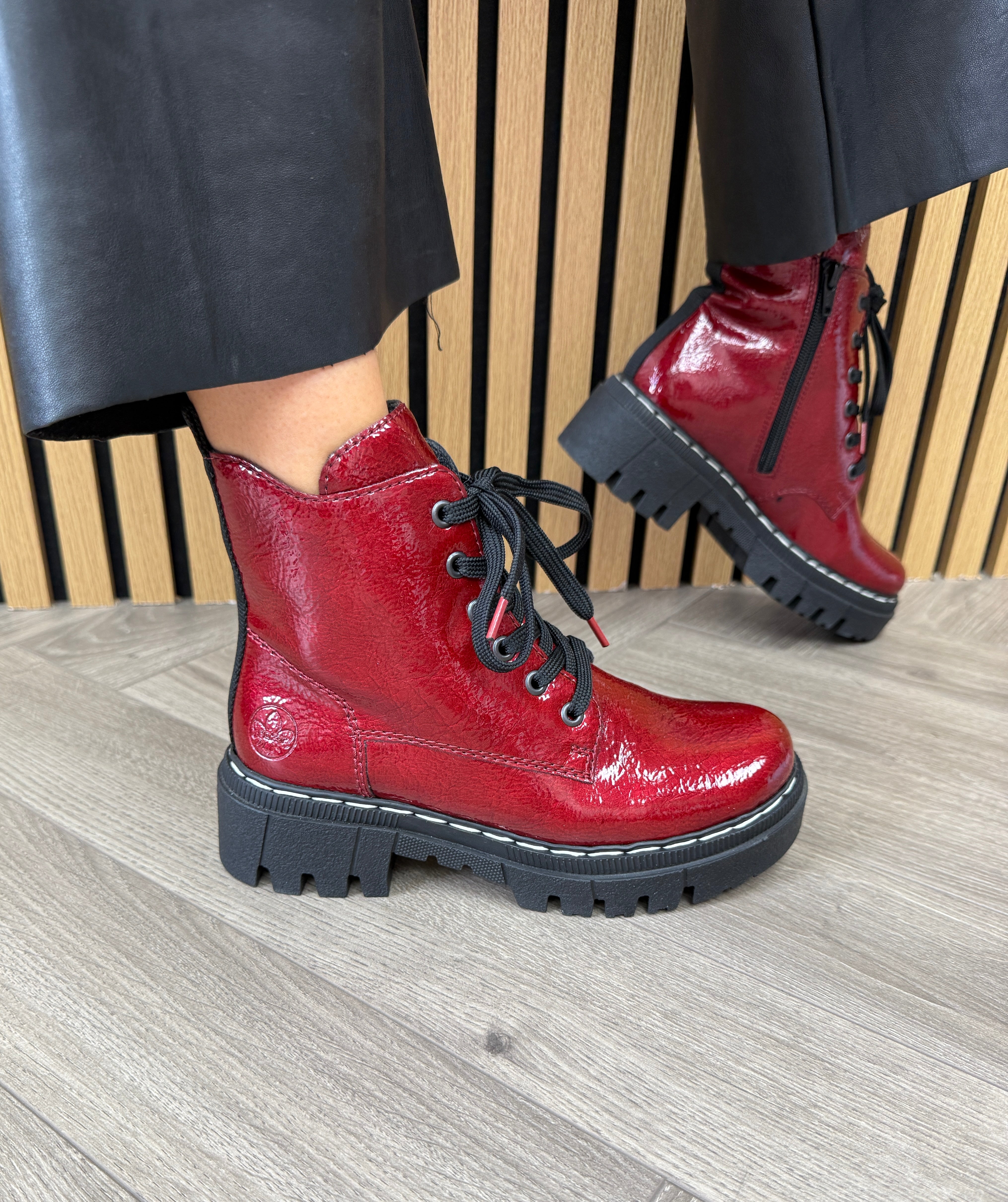 Rieker 74020-33 Patent Biker Boot With White Stitching (R66)- Red