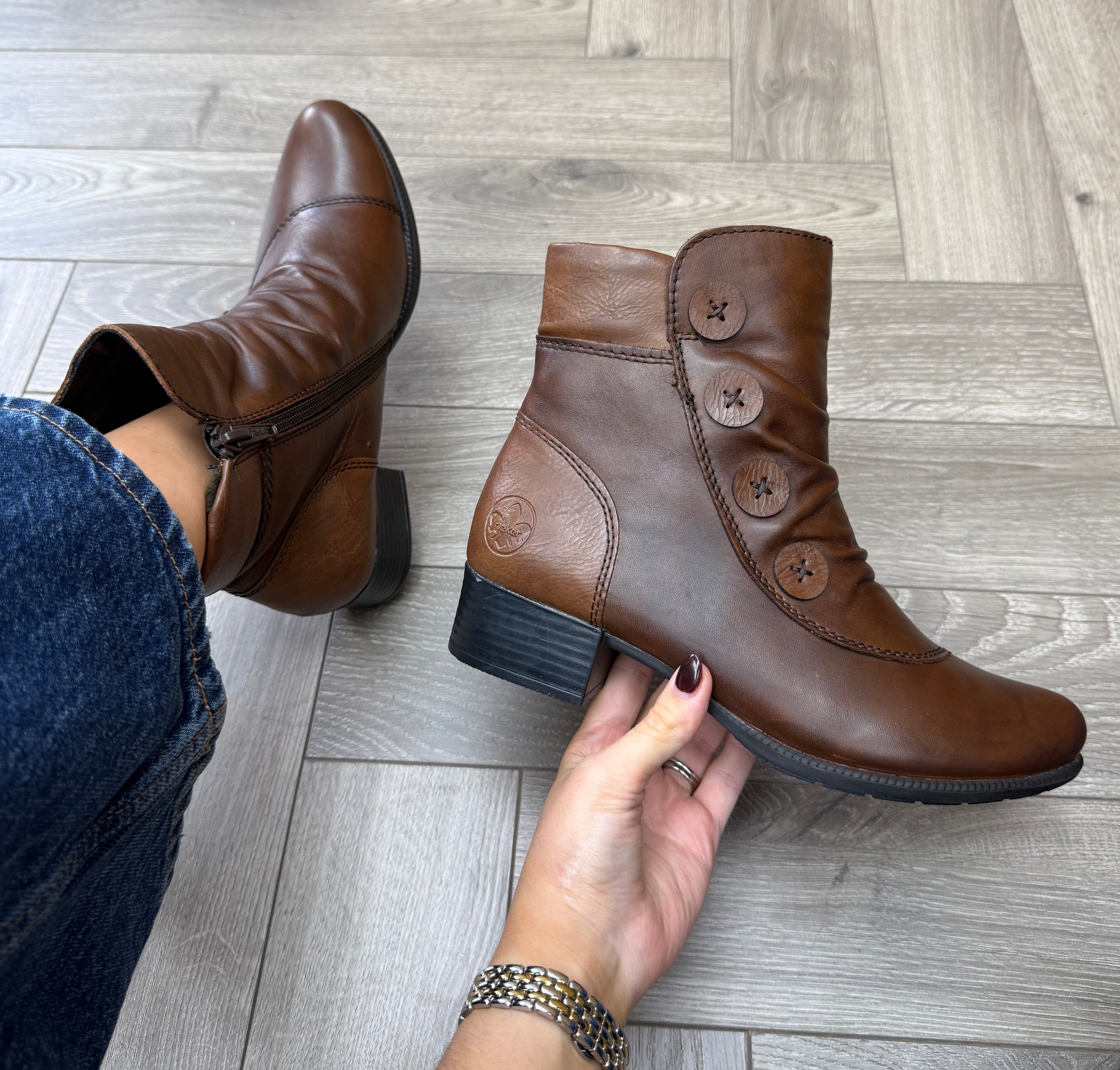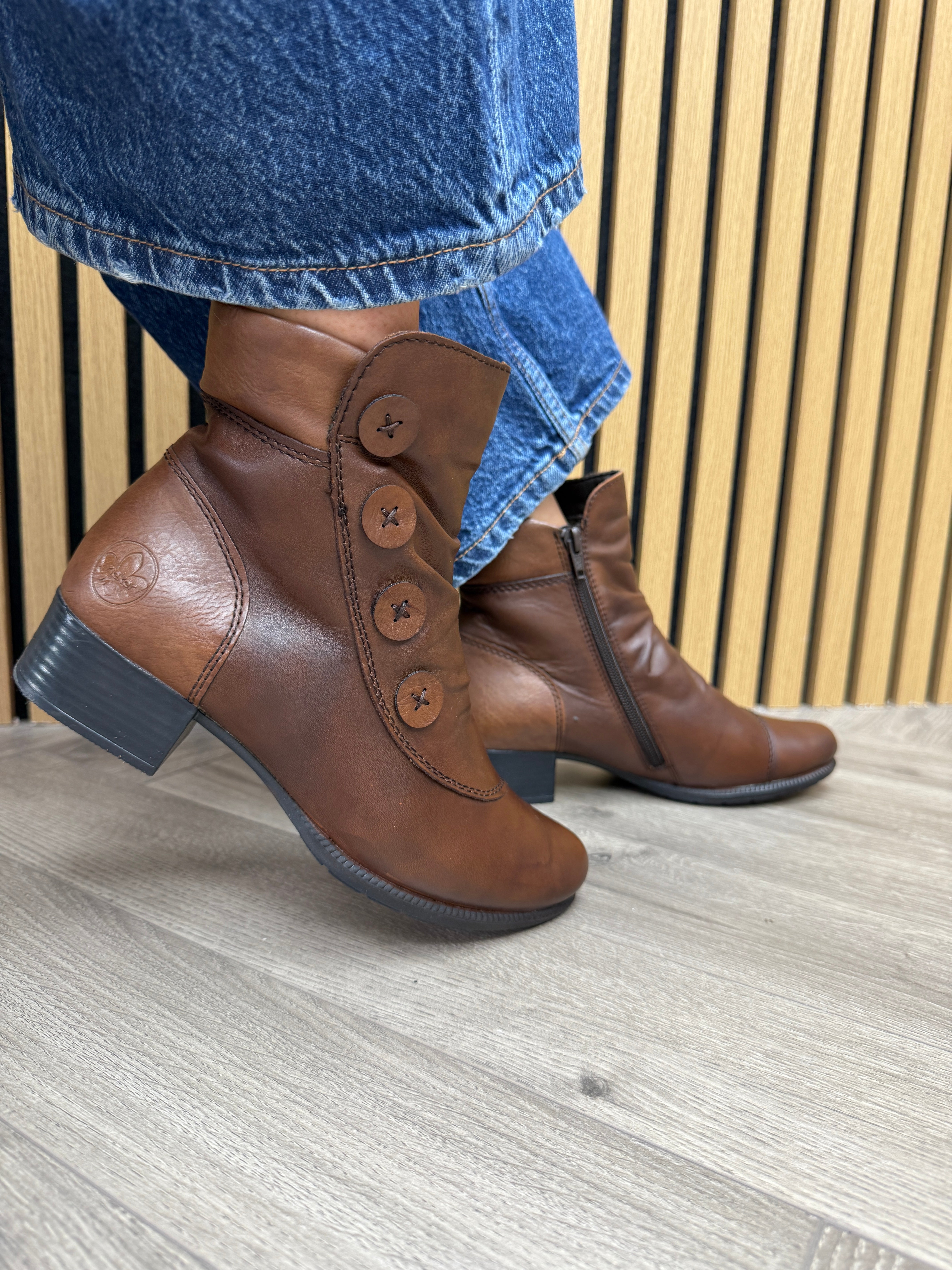Rieker 78659-22 Ankle Boot With Button Detail (R90)- Brown