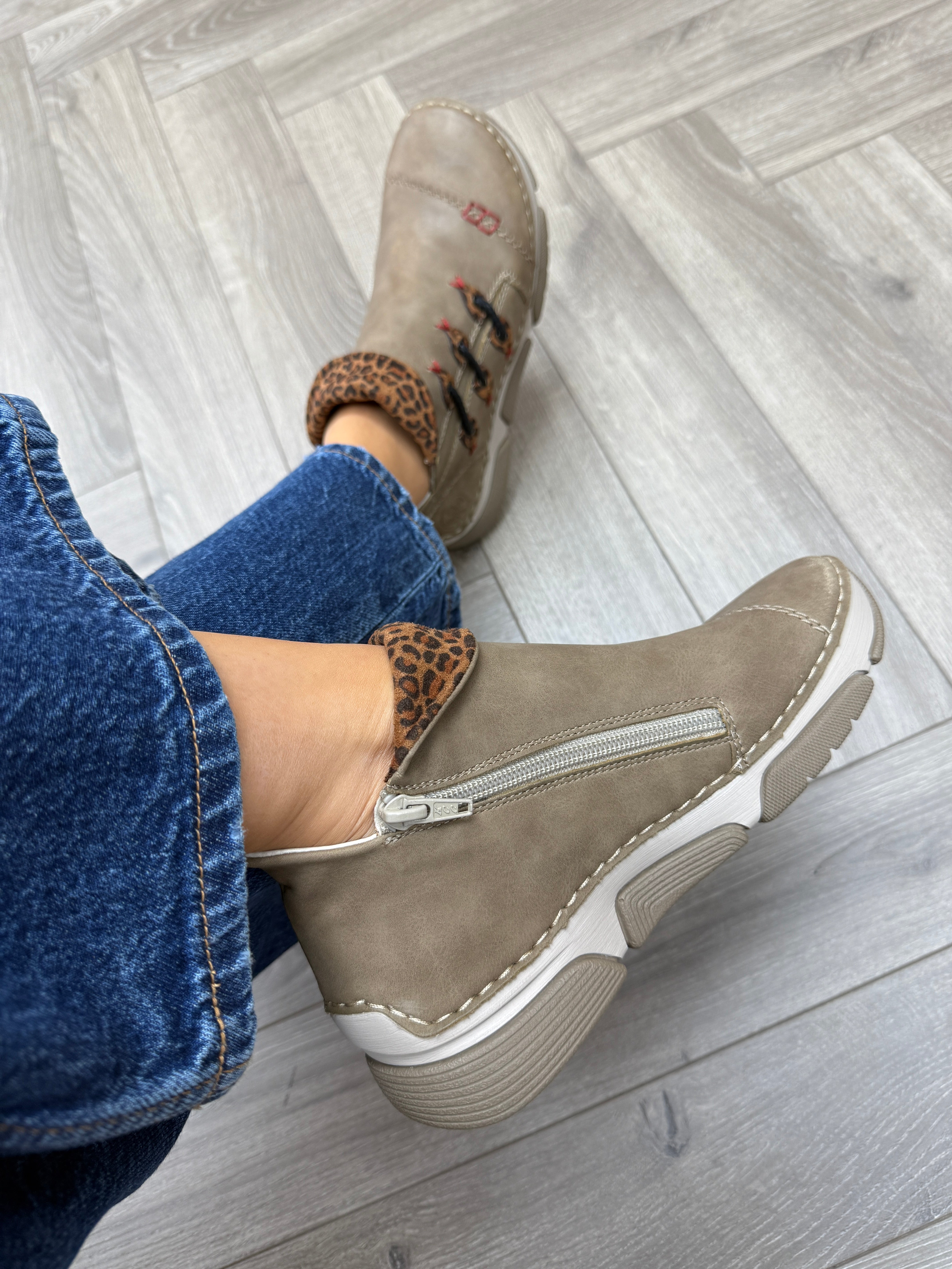 Rieker 45983-64 Trainer Boot With Leopard Cuff - Beige (R57)
