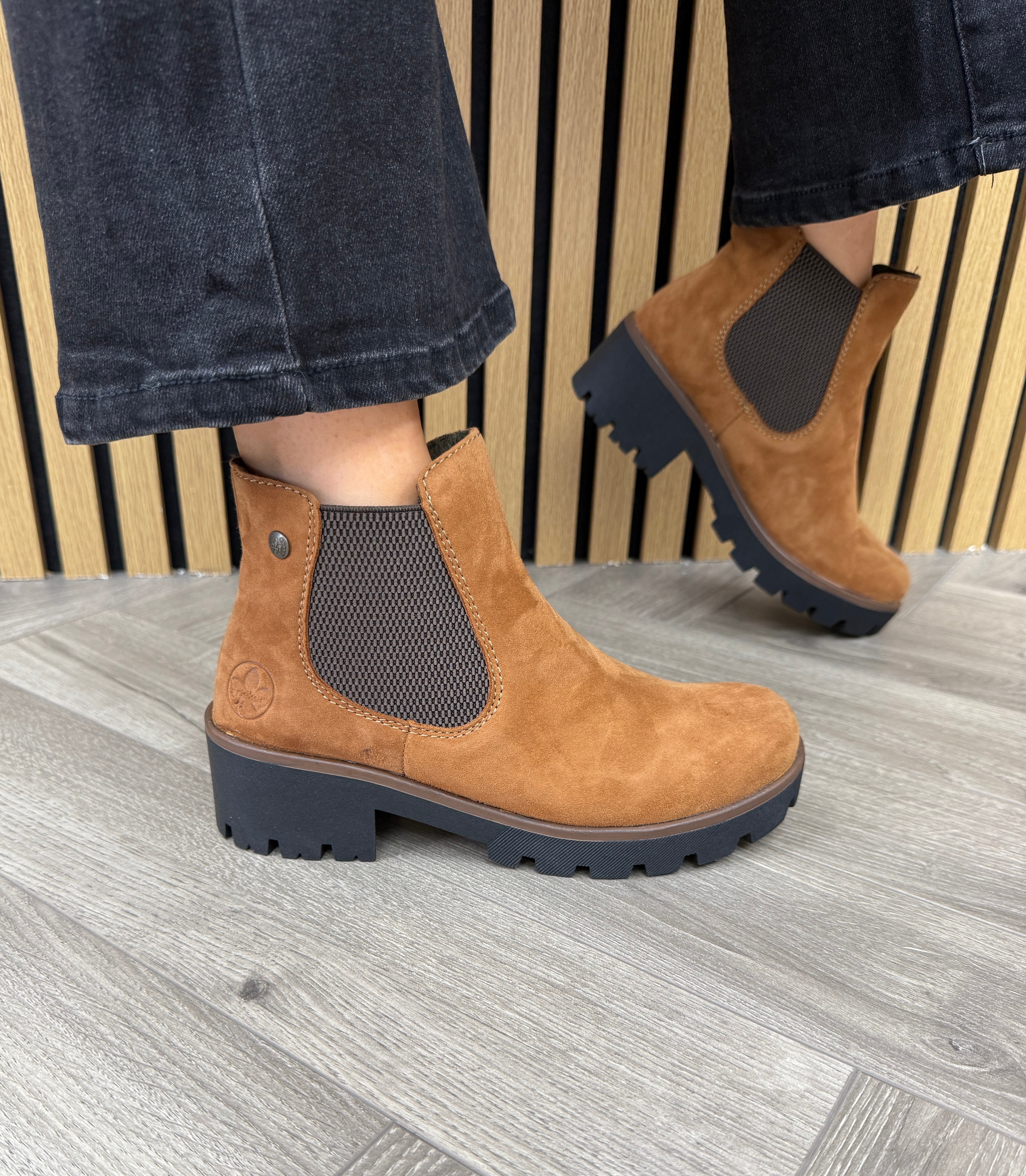 Rieker 79265-22 Chunky Pull On Boot With Elastic - Brown (RAW48)