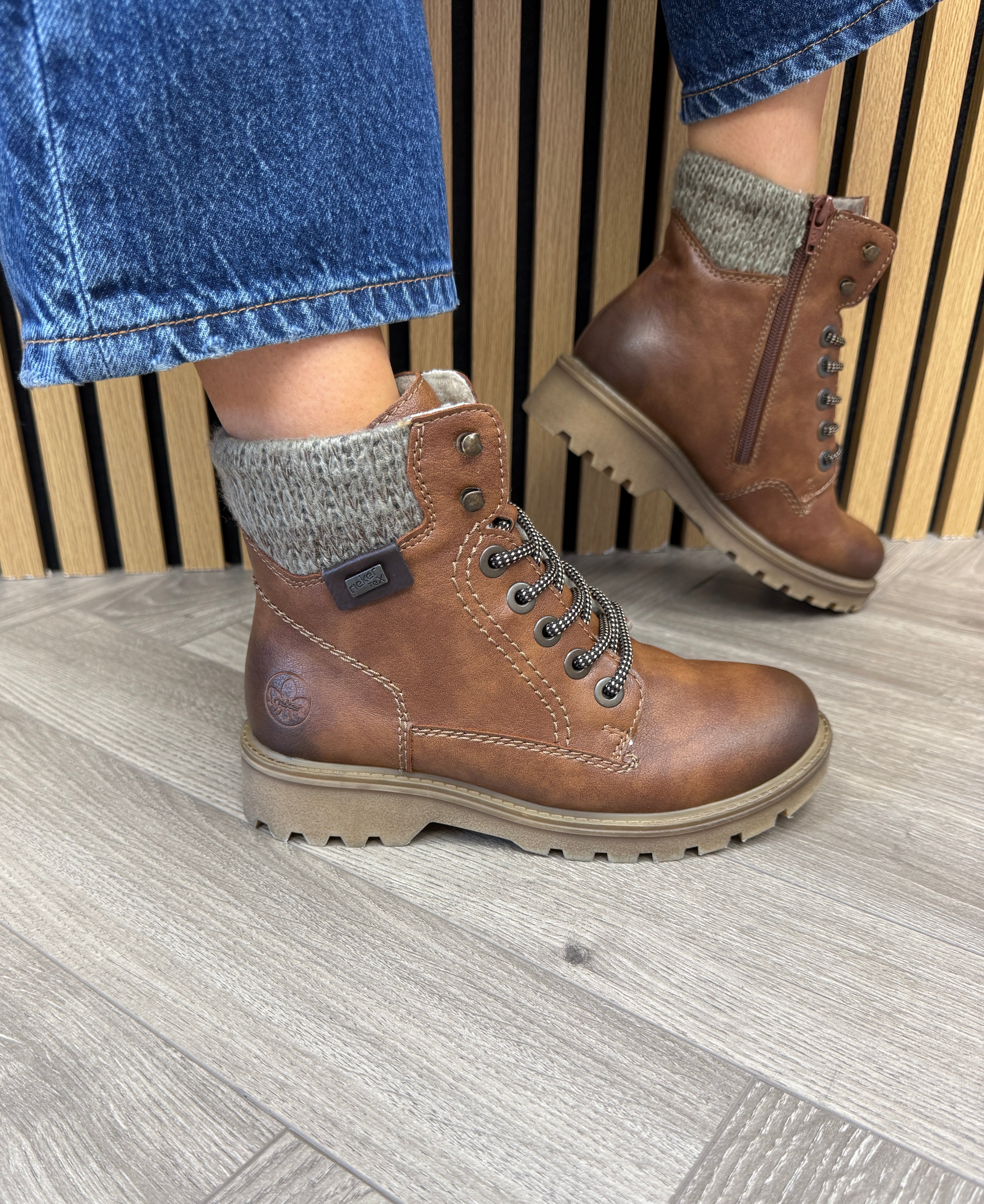 Rieker 73220-24 Laced Boot With Side Zip (R64)- Brown