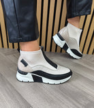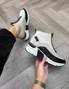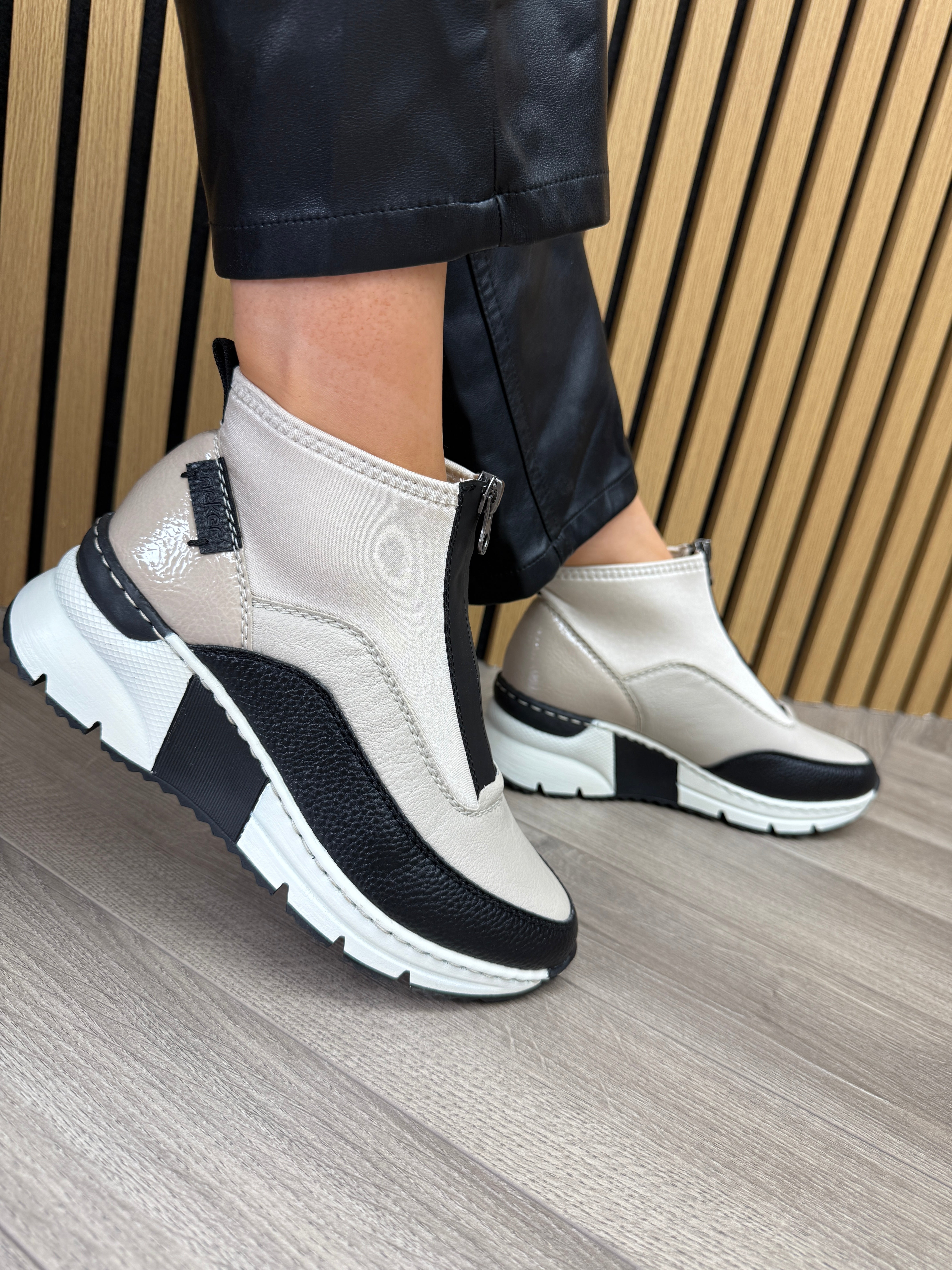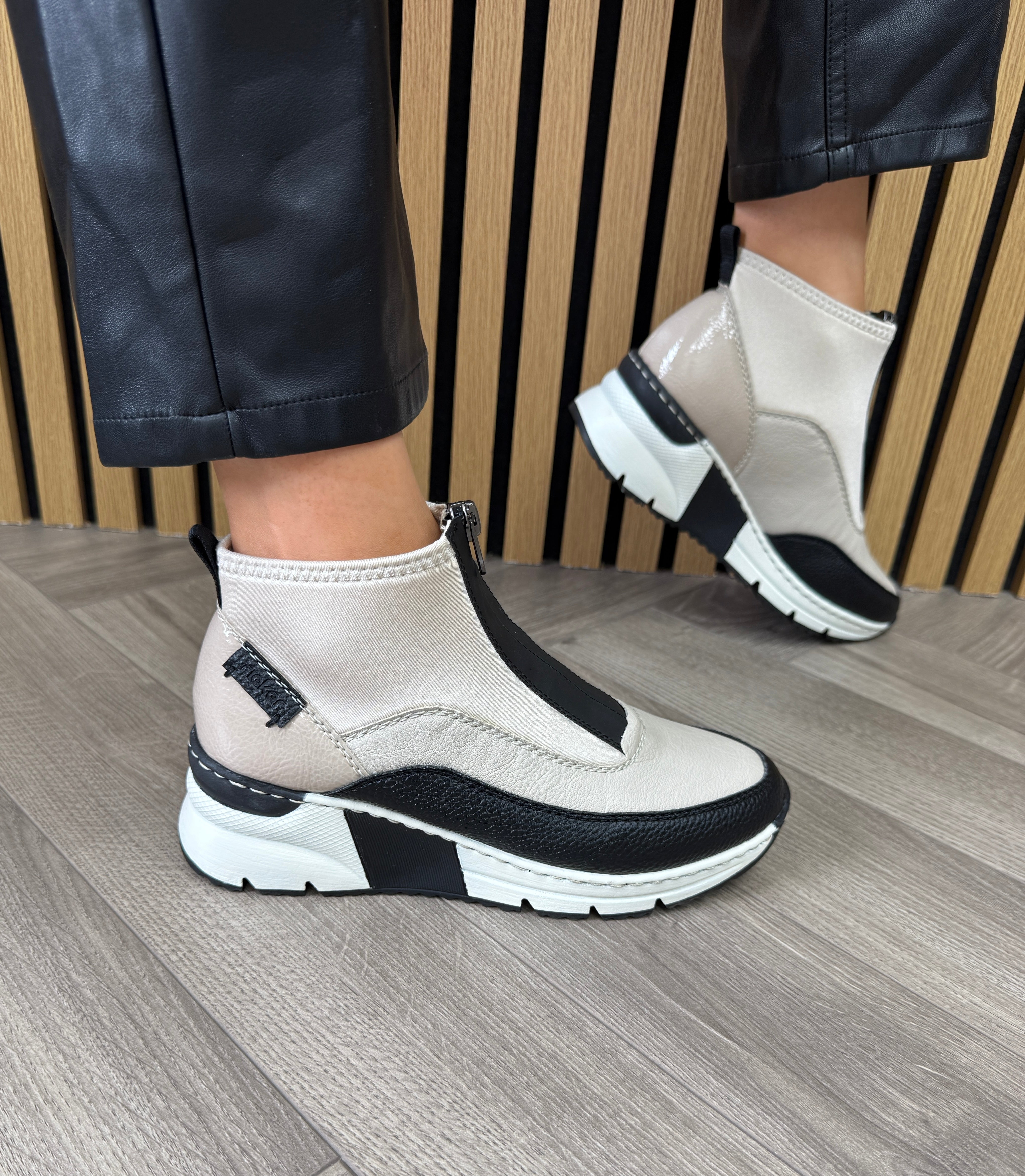 Rieker (RAW6) Elevated Trainer Boot with Front Zip N6352-60 - Beige Combination