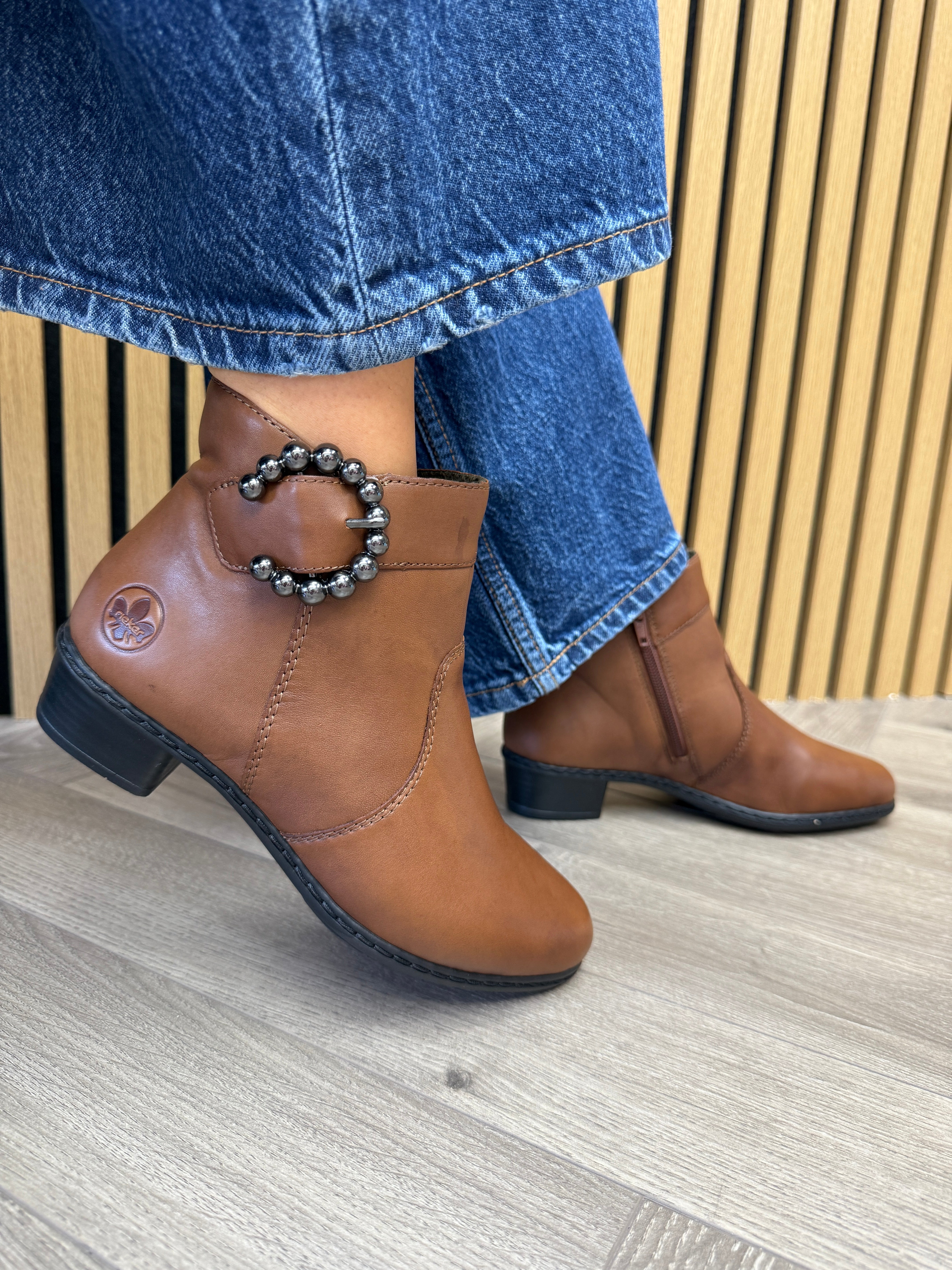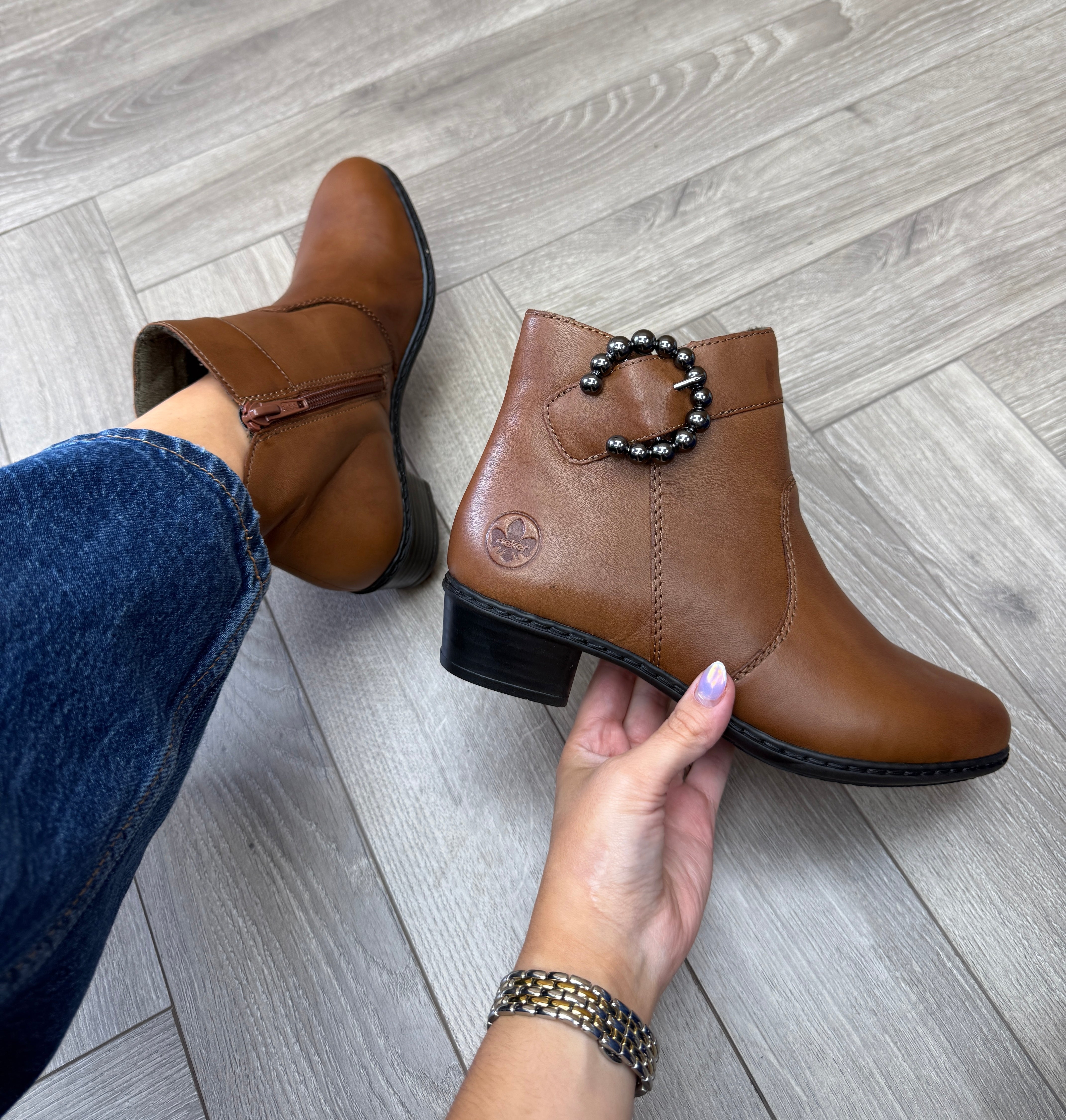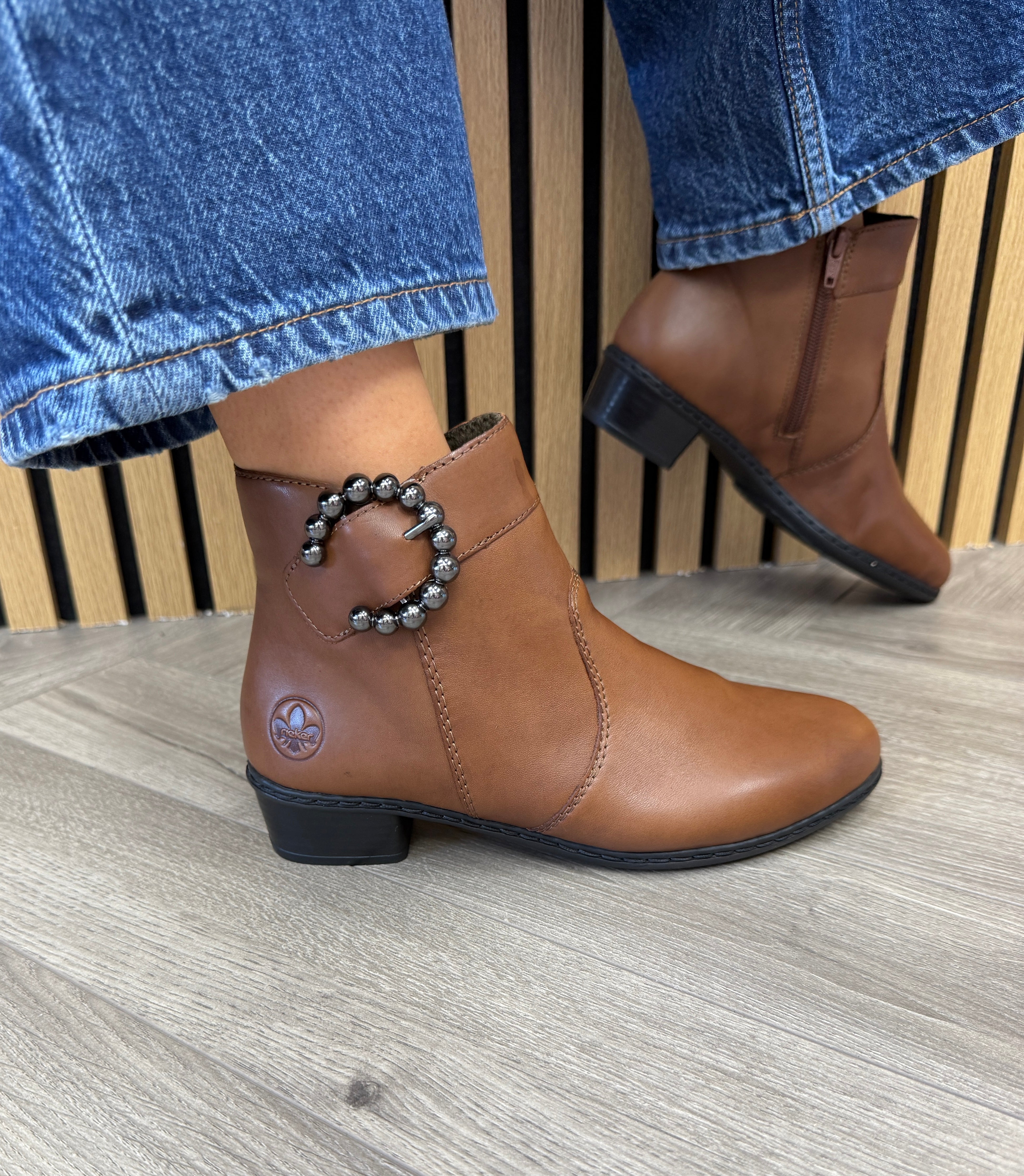 Rieker Y0797-24 Ankle Boot With Beaded Buckle Detail (R70)- Brown