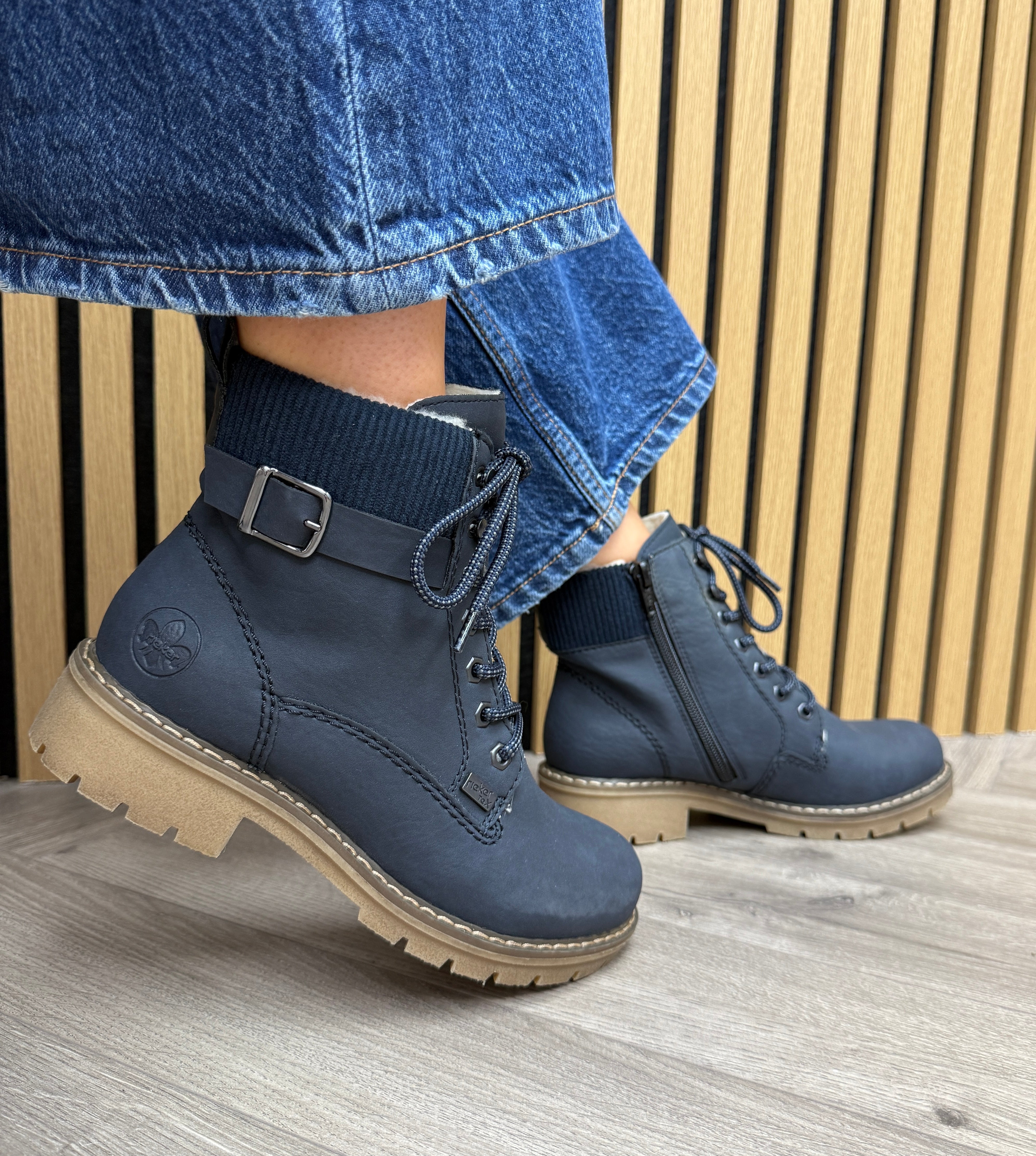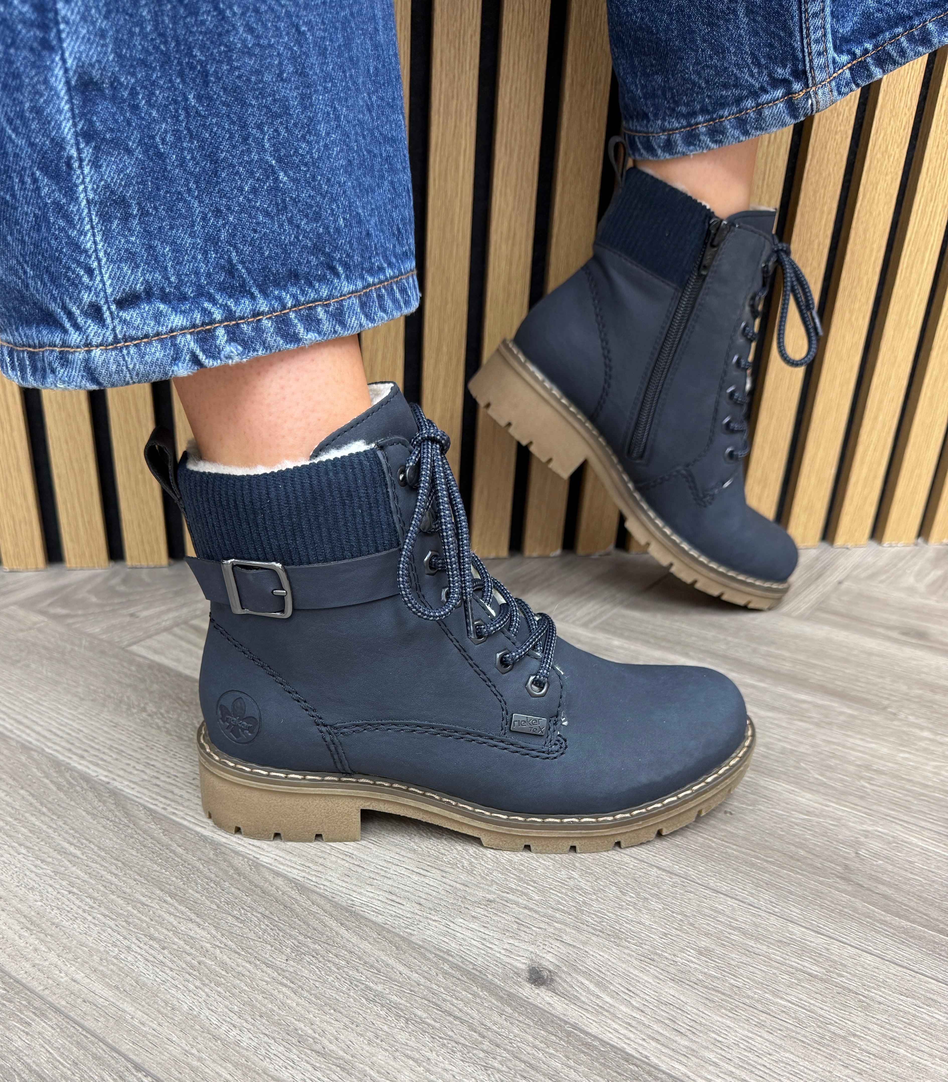 Rieker Y9102-14 Fur Lined Boot With Ankle Ribbed Cuff - Blue (R76AW)