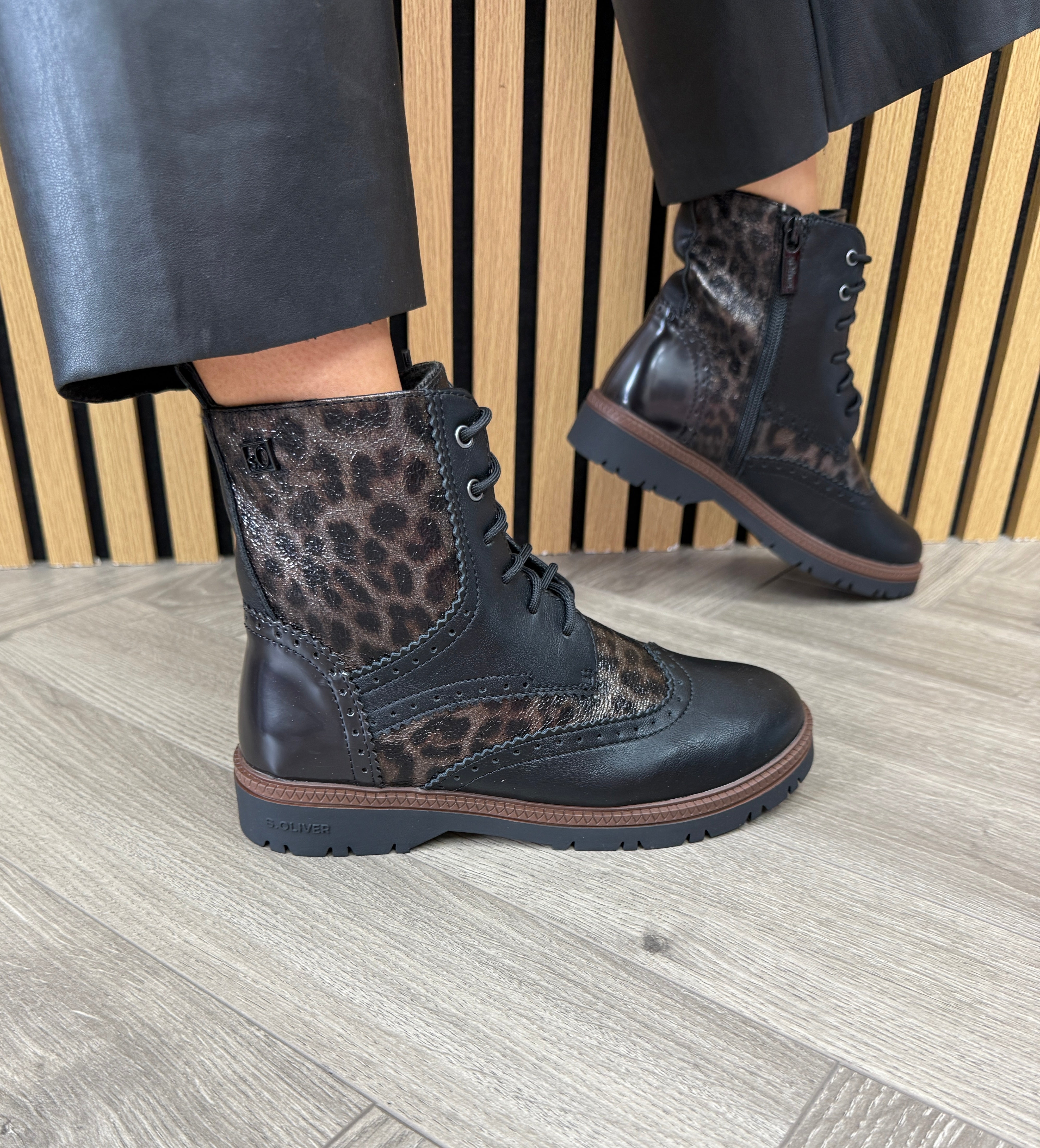 S.Oliver 5-25232-43 Laced Boot with Leopard Insert - Leopard Comb (S32AW)