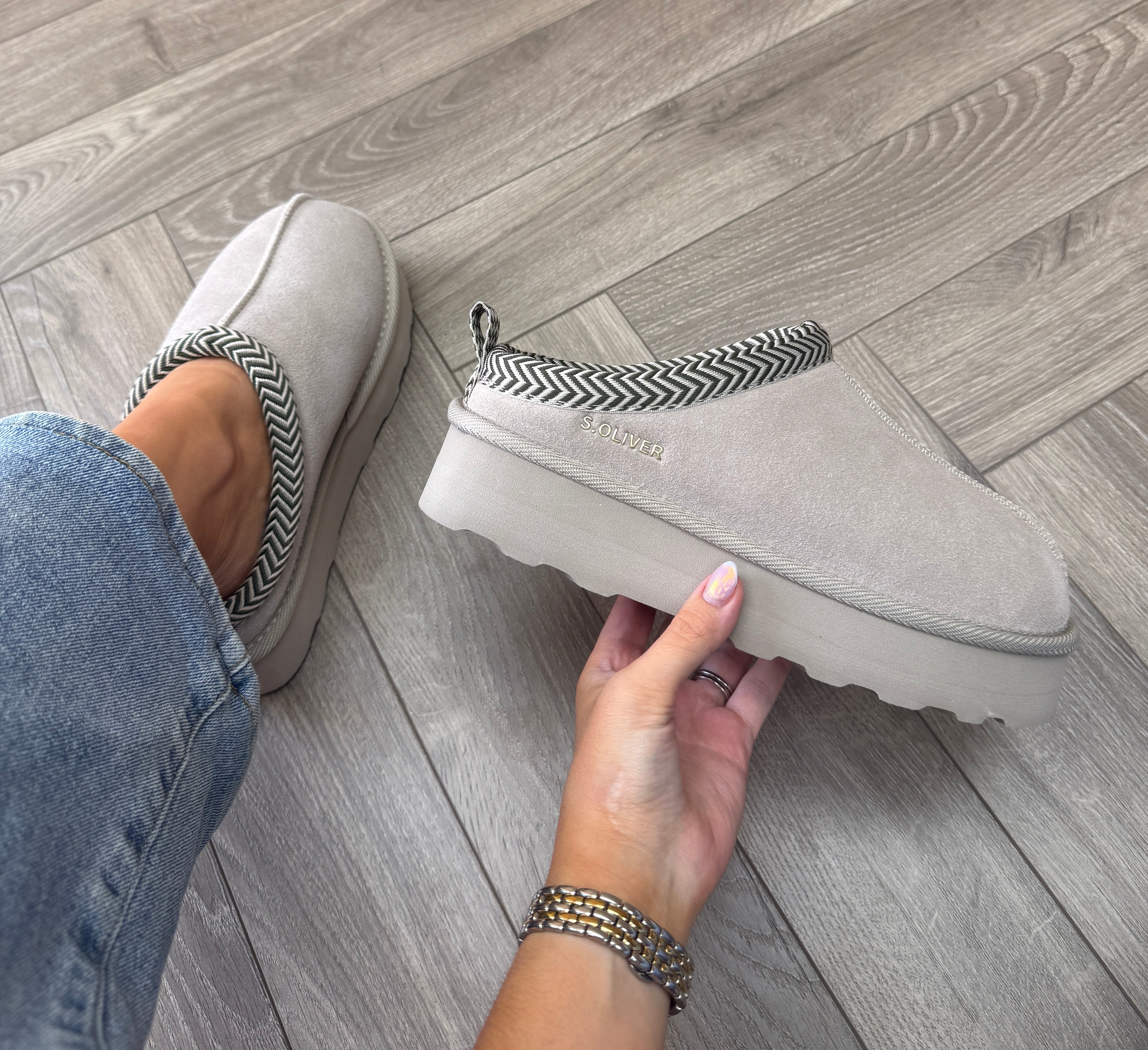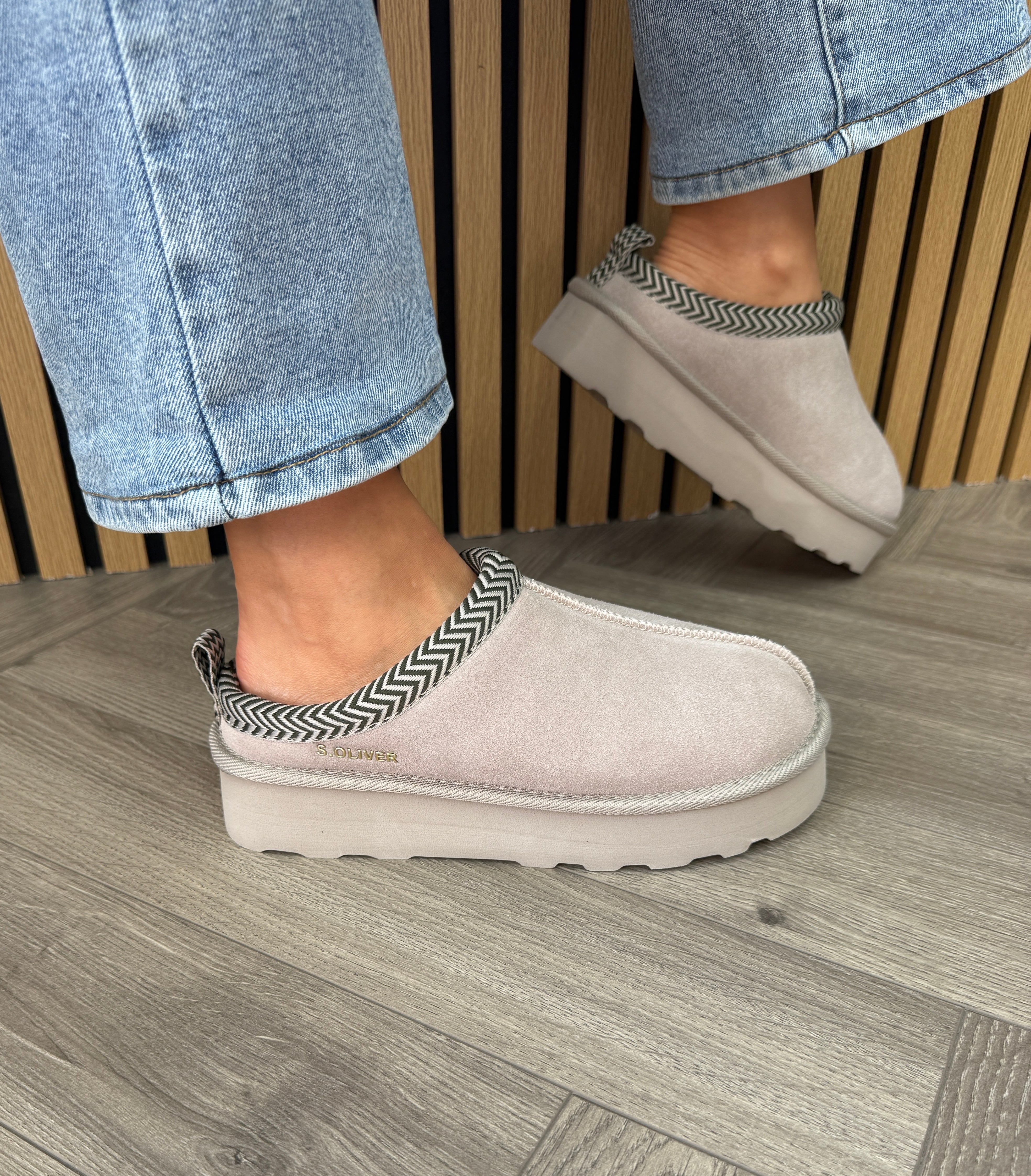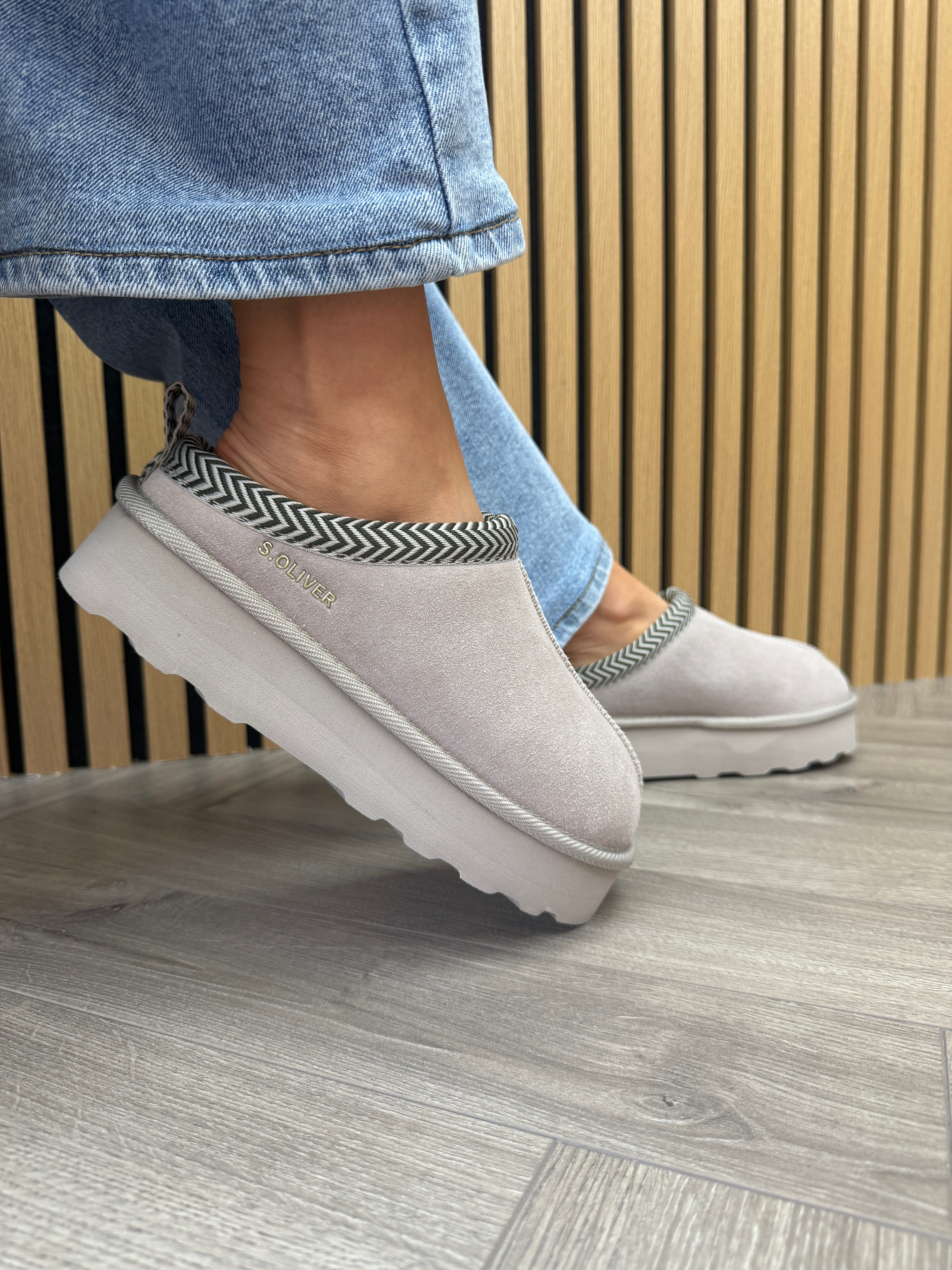 S.Oliver 5-27104-43 Fur Lined Clog With Trim - Light Taupe (S35AW)
