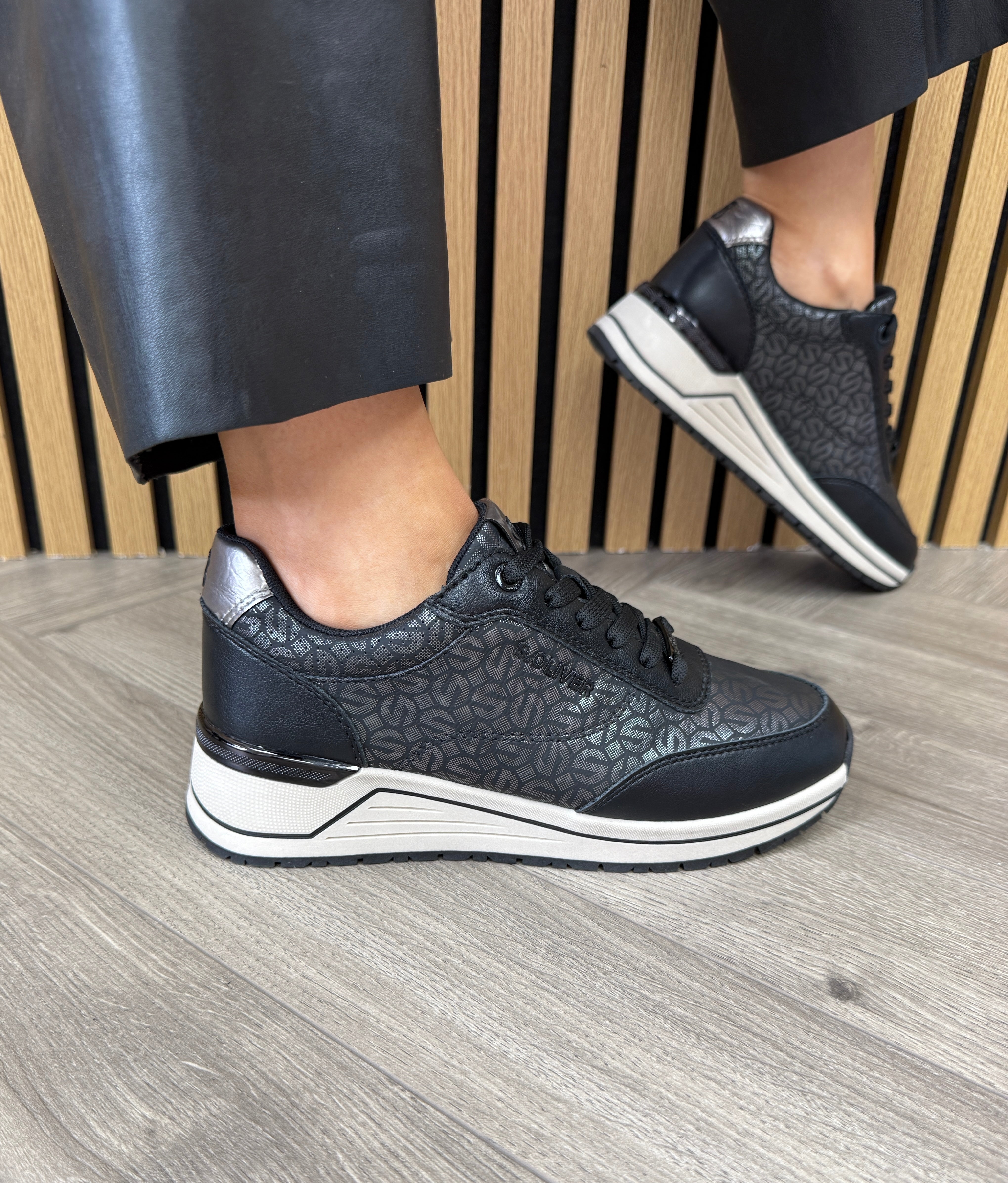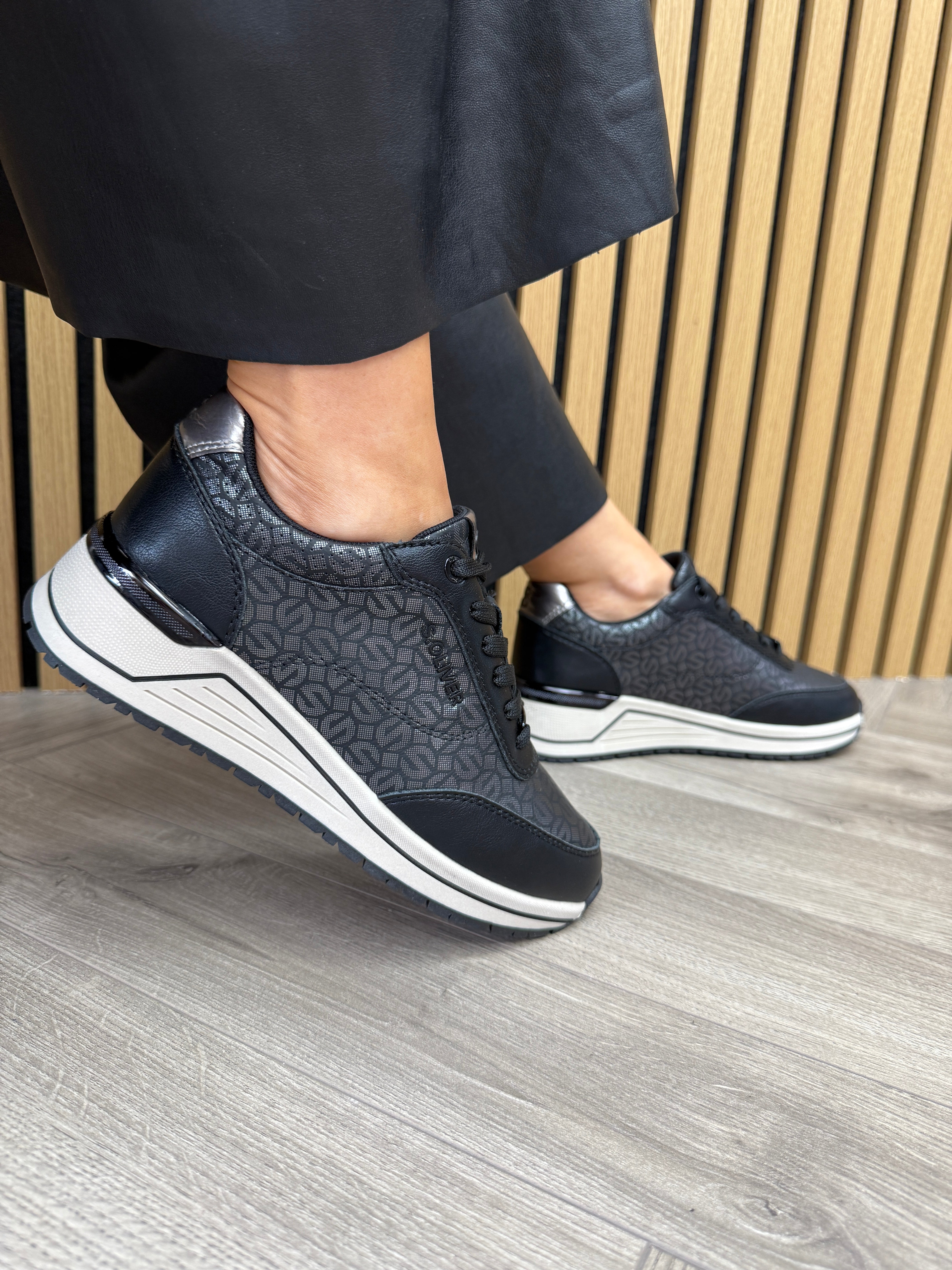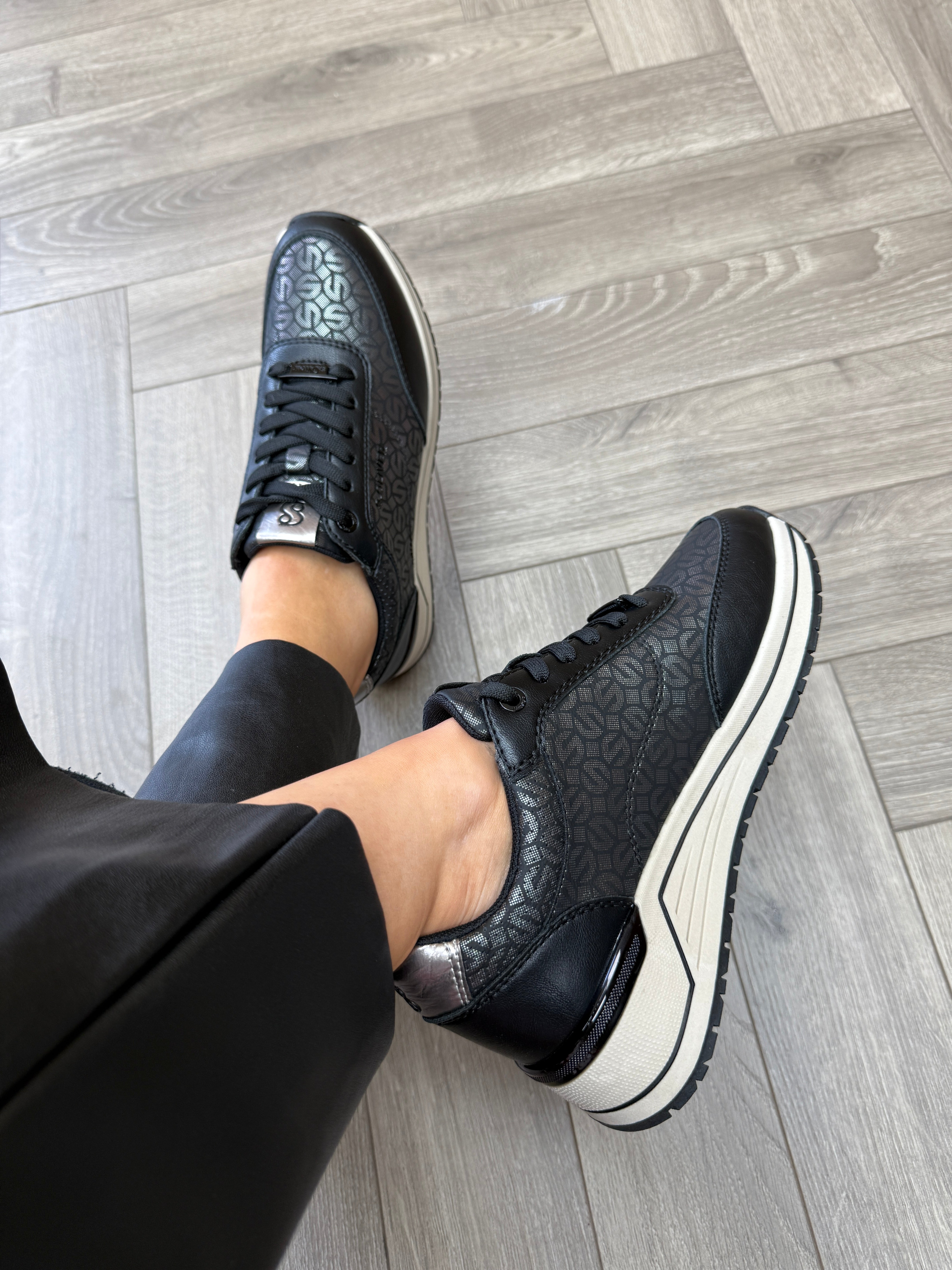 S.Oliver 5-23613-45 Elevated Trainer With Metallic Print Insert - Black/Pewter (S20AW)