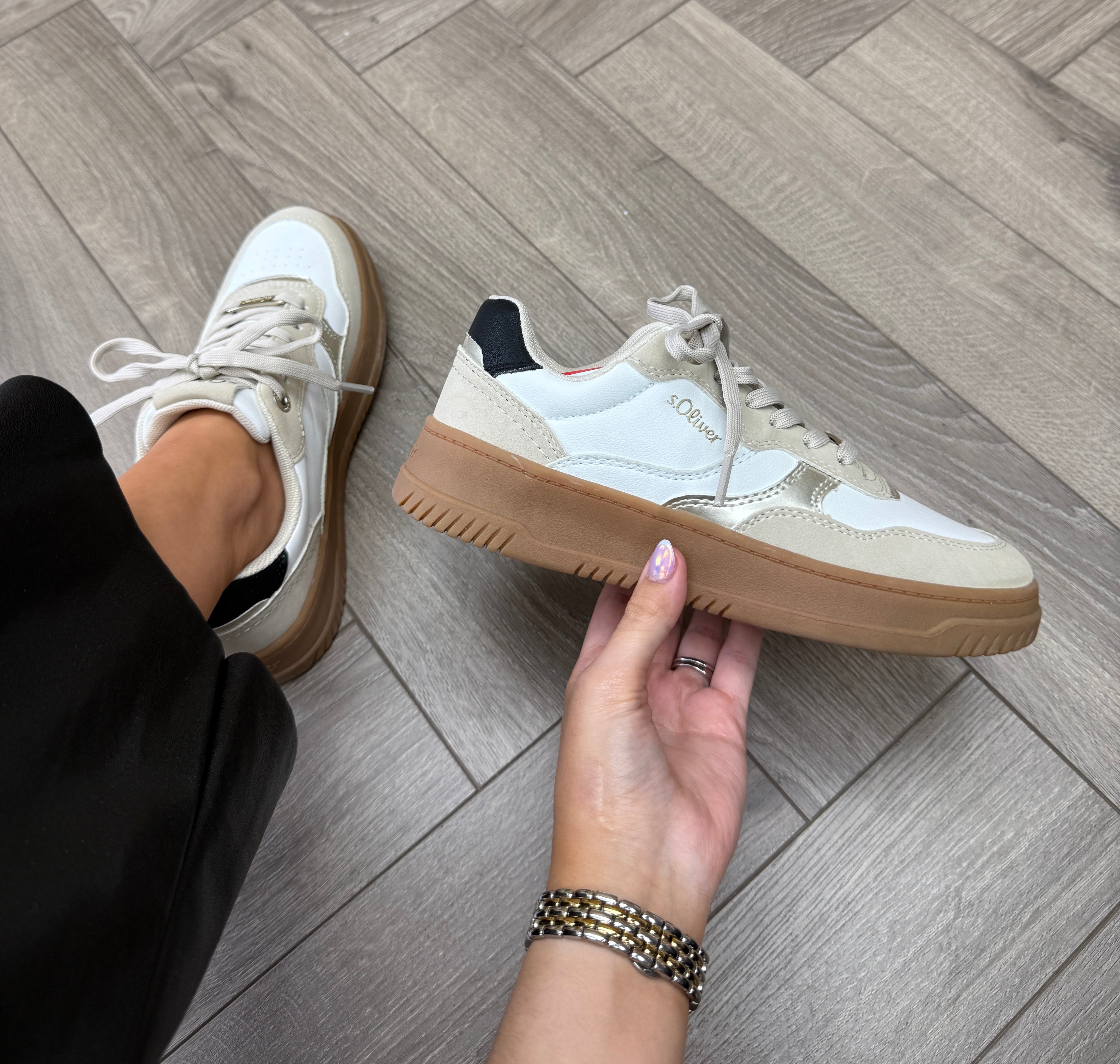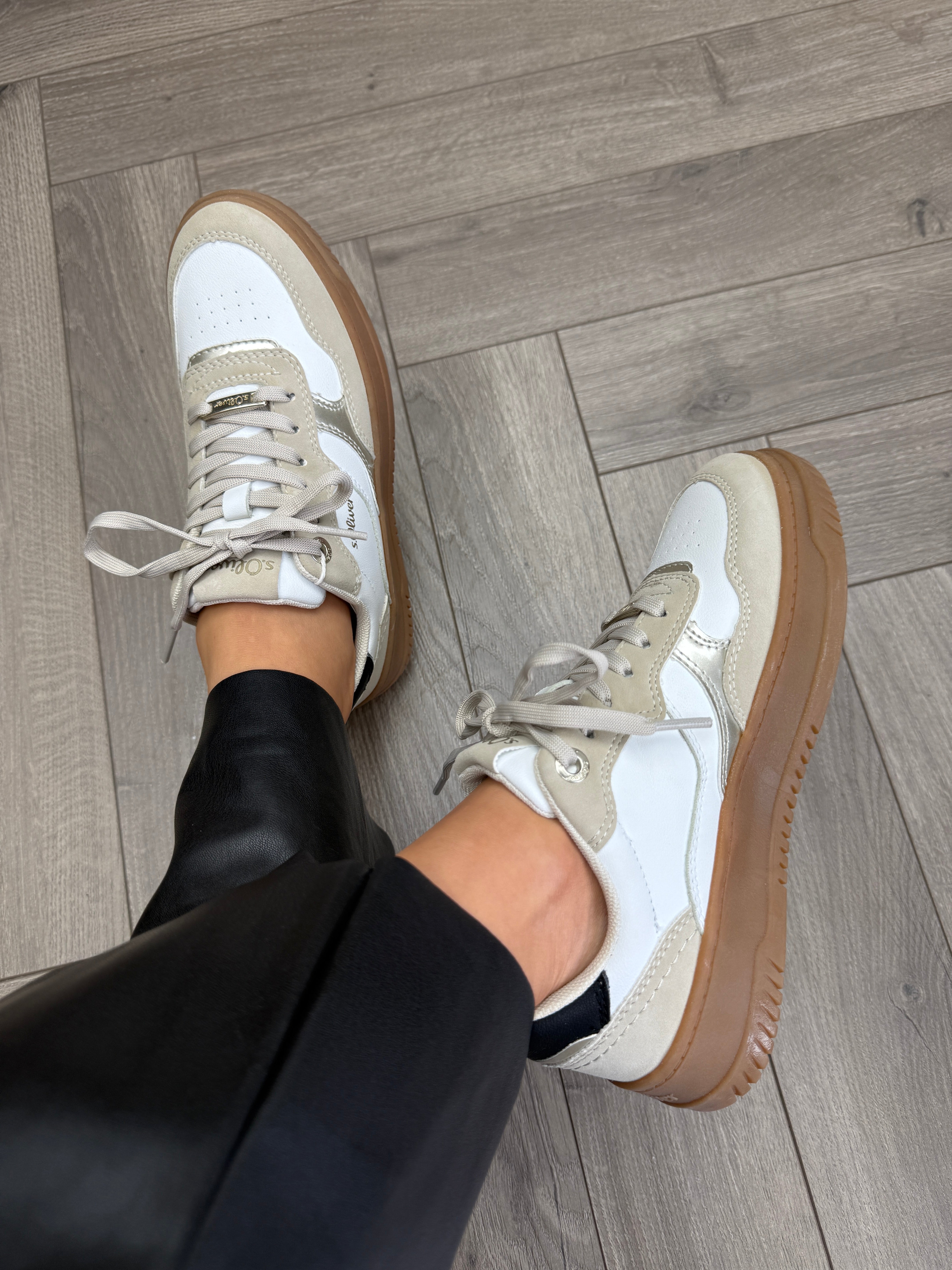 S.Oliver (AW25) 5-23632-45 Platform Gum Sole Trainer With Black Heel - White Comb (SAW3)