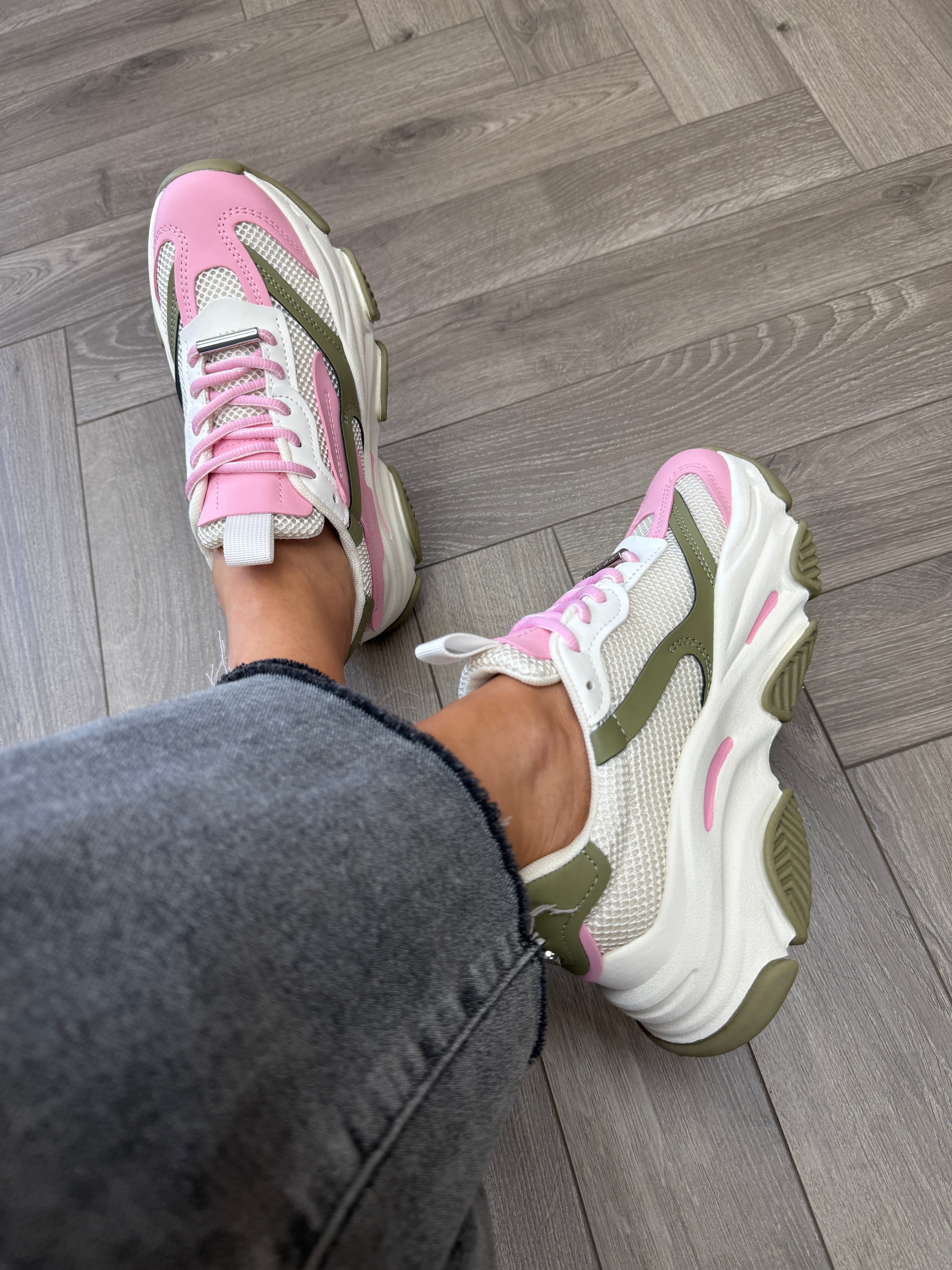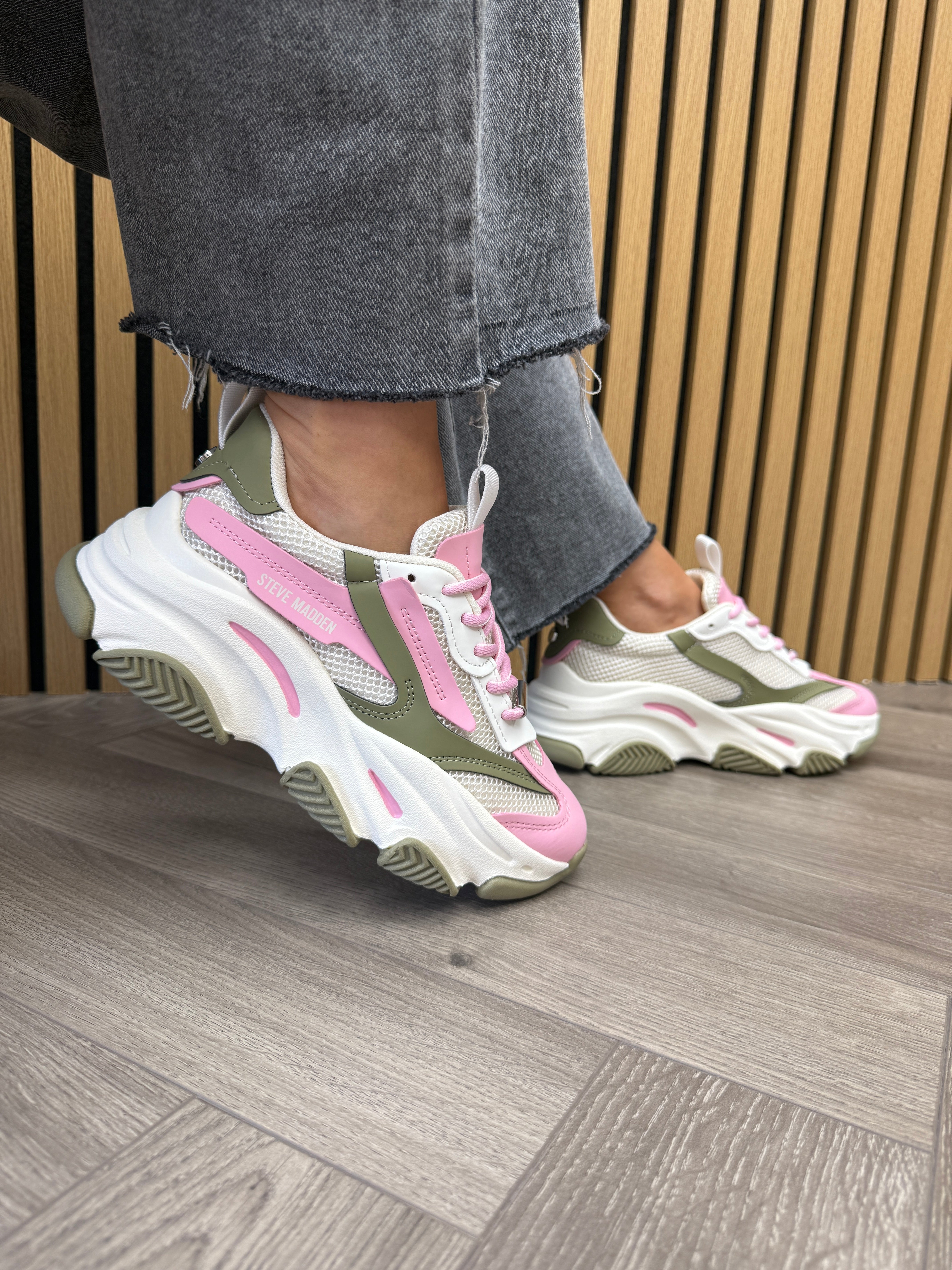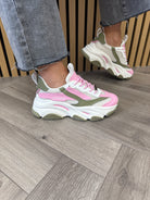 Steve Madden (AW25) ‘Possession-E’ Chunky Mesh Trainer - Green Forset/Pink (SM13AW)