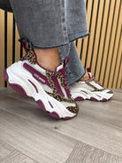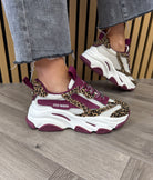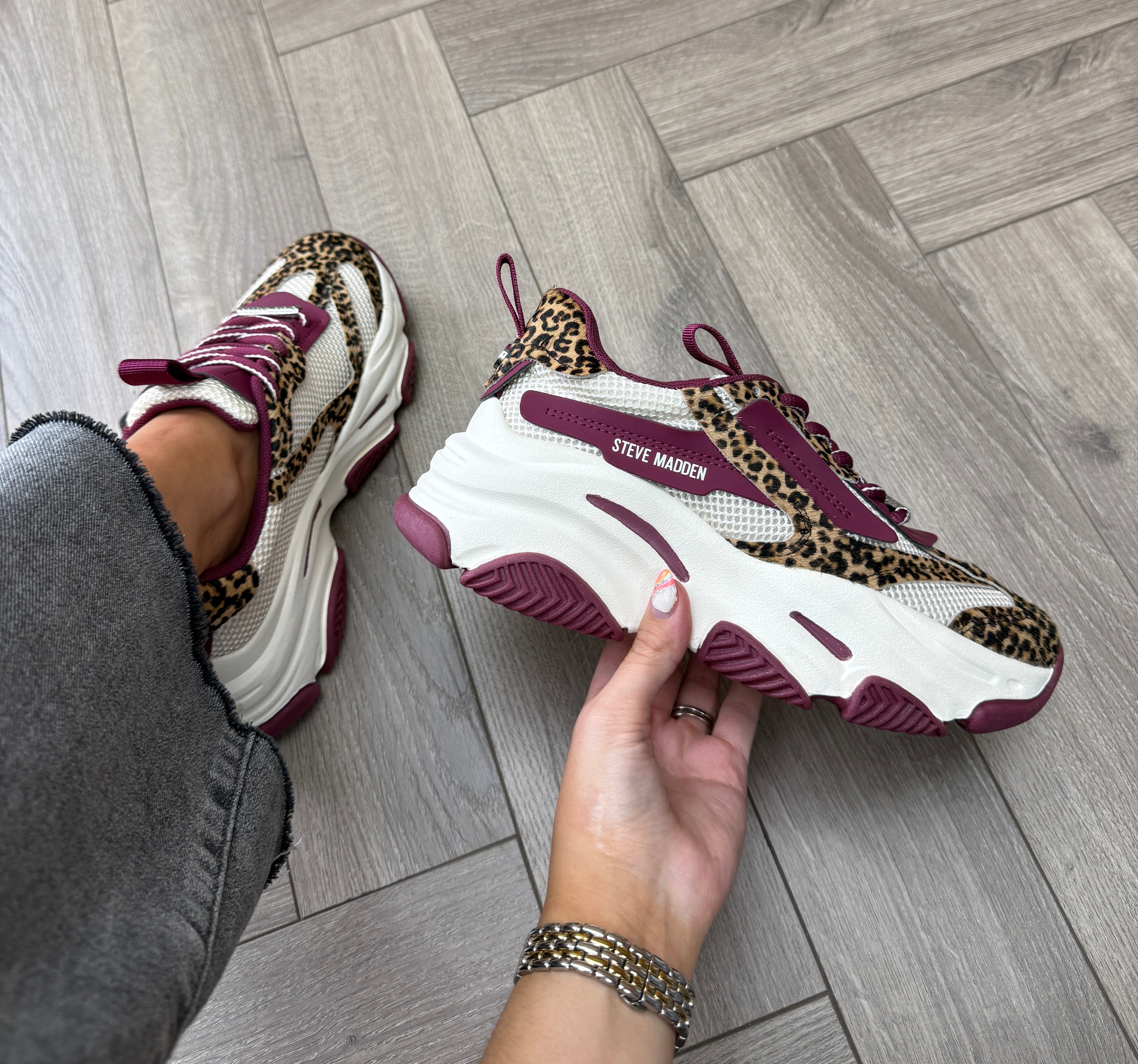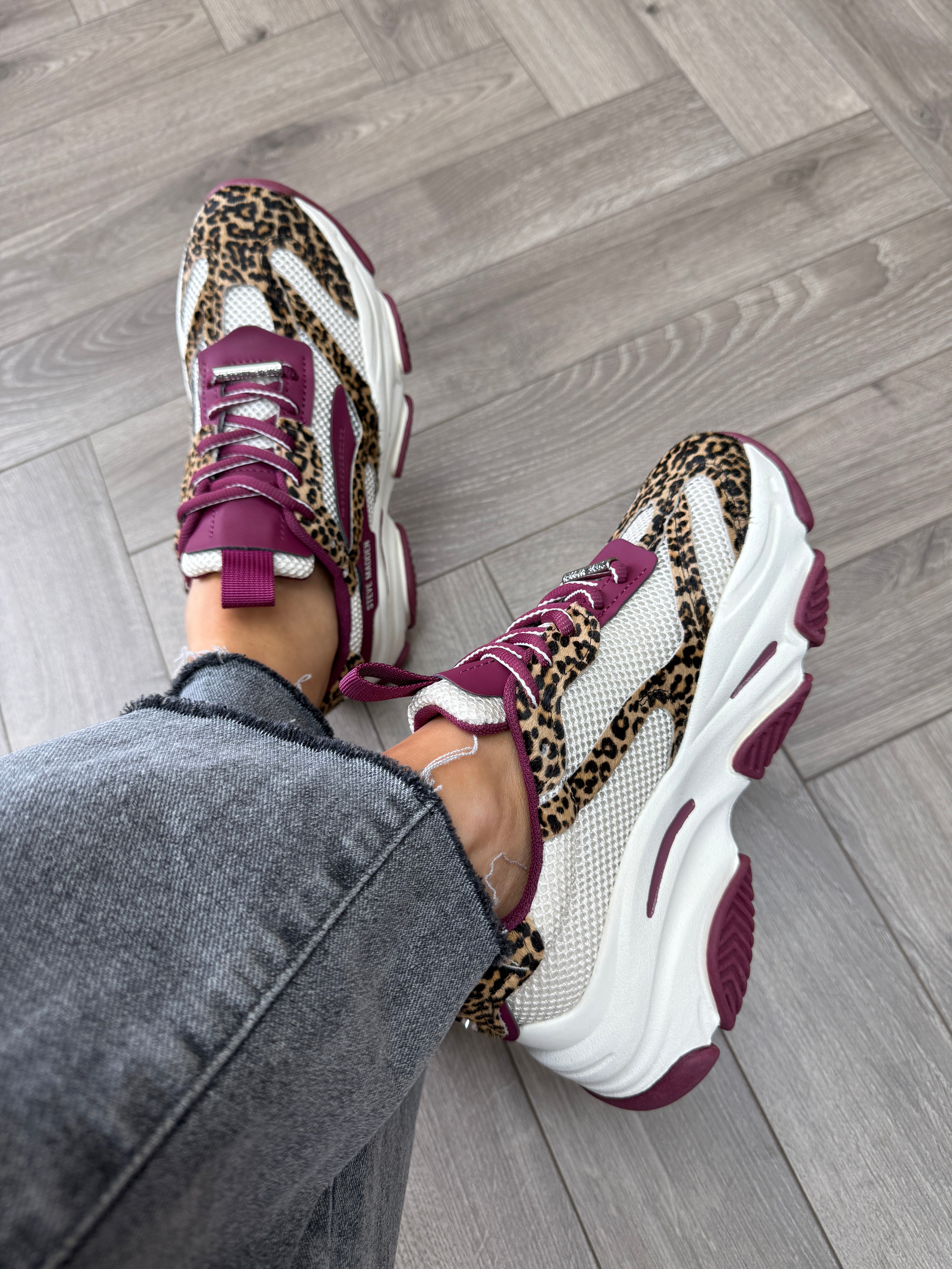 Steve Madden (AW25) ‘Possession-L-E’ Mesh Trainer With Leopard Print - Plum/Leopard (SM10AW)