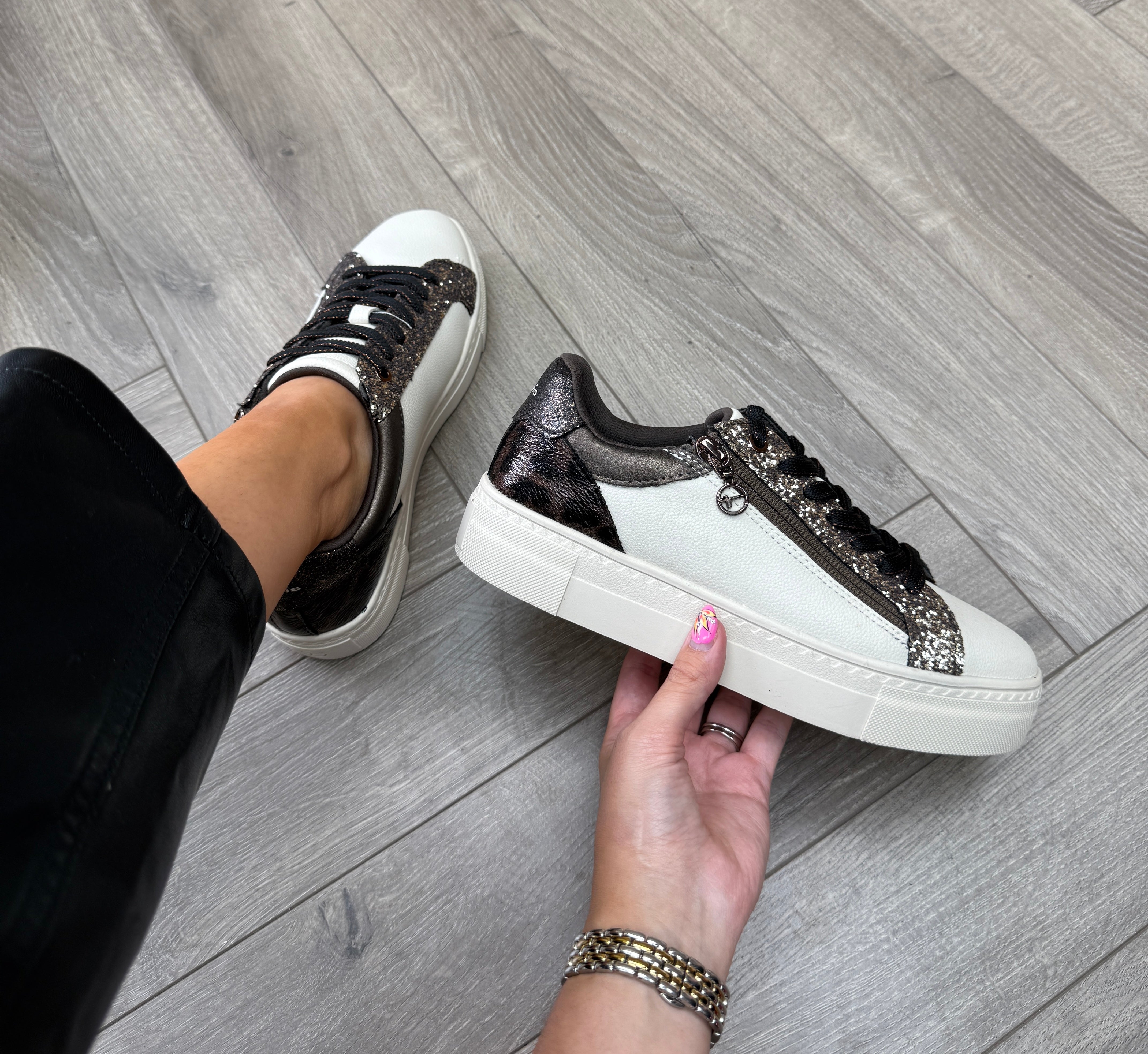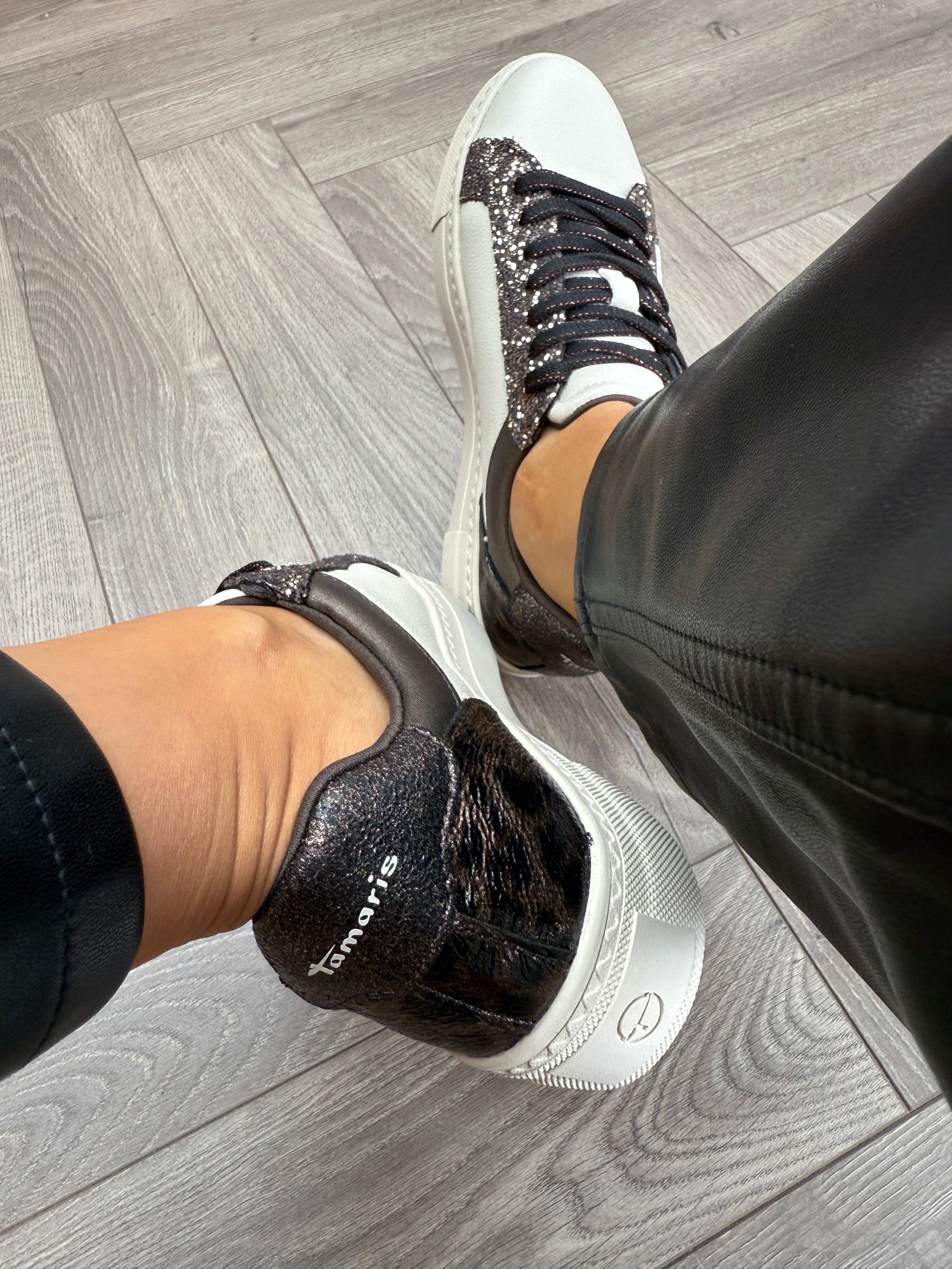 Tamaris (AW25) 1-23313-41 Platform Trainer With Glitter Trim - Ivory Comb (TAW32)