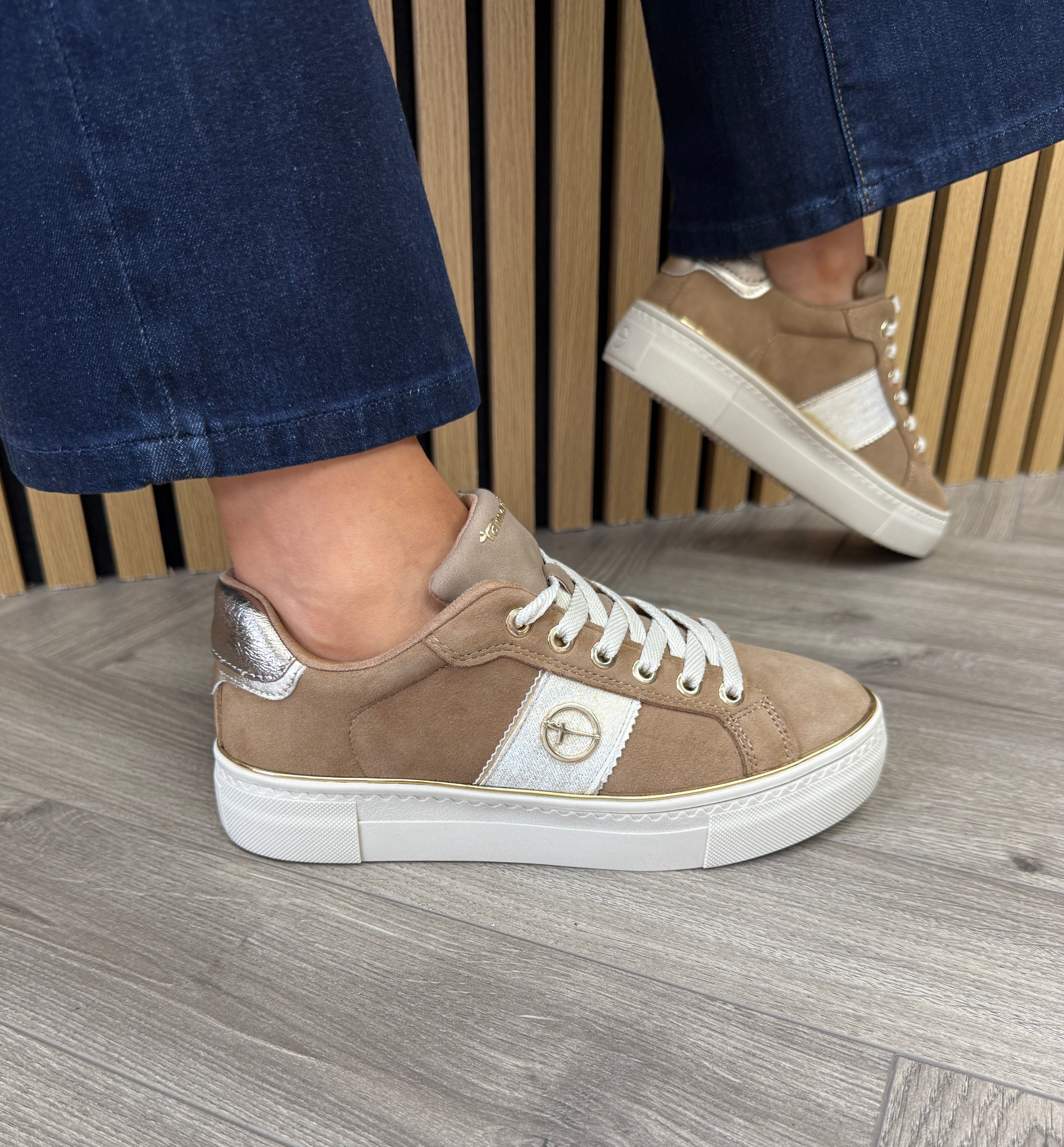 Tamaris (AW25) 1-23724-42 Platform Suede Trainer - Camel (T42AW)