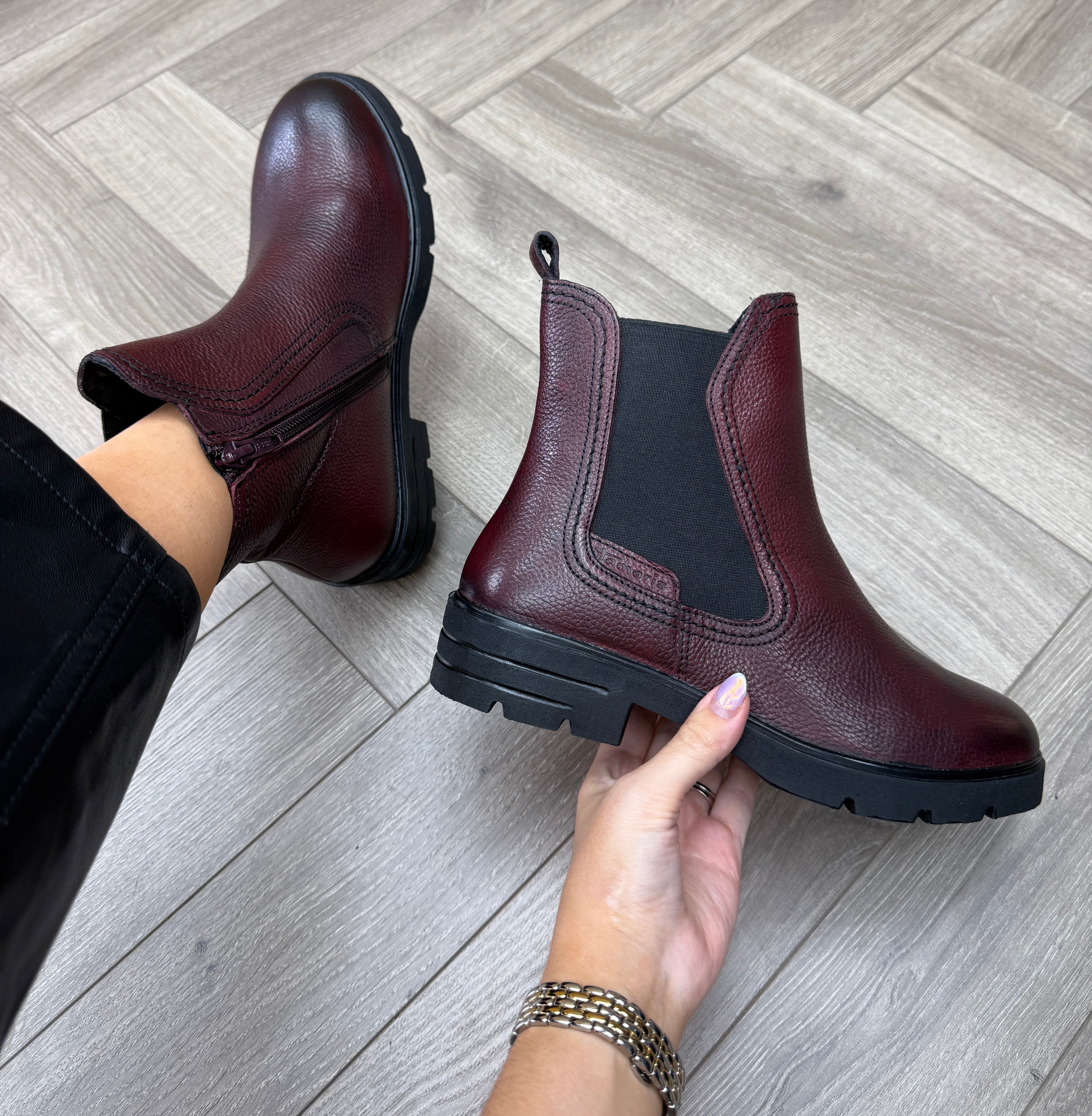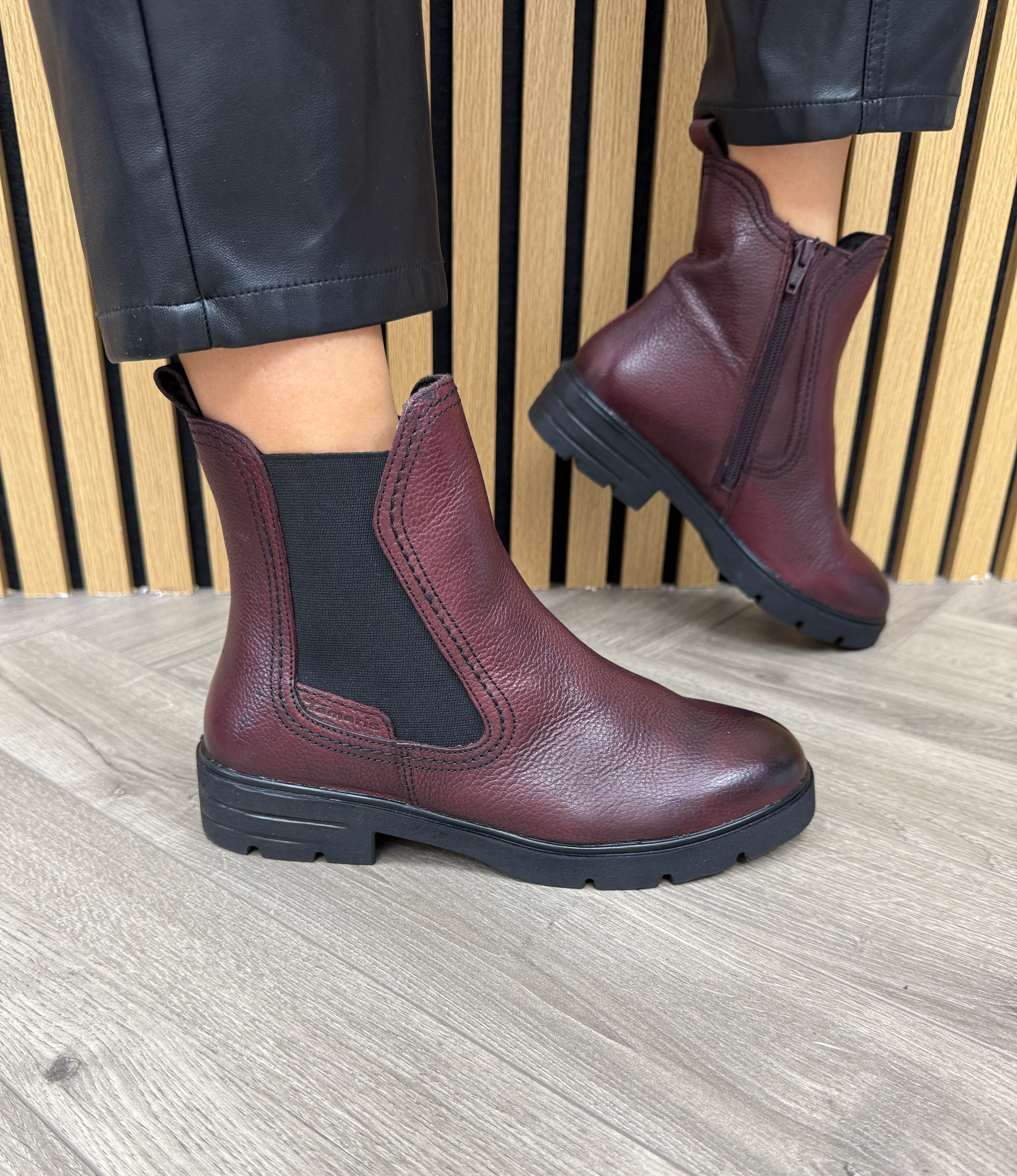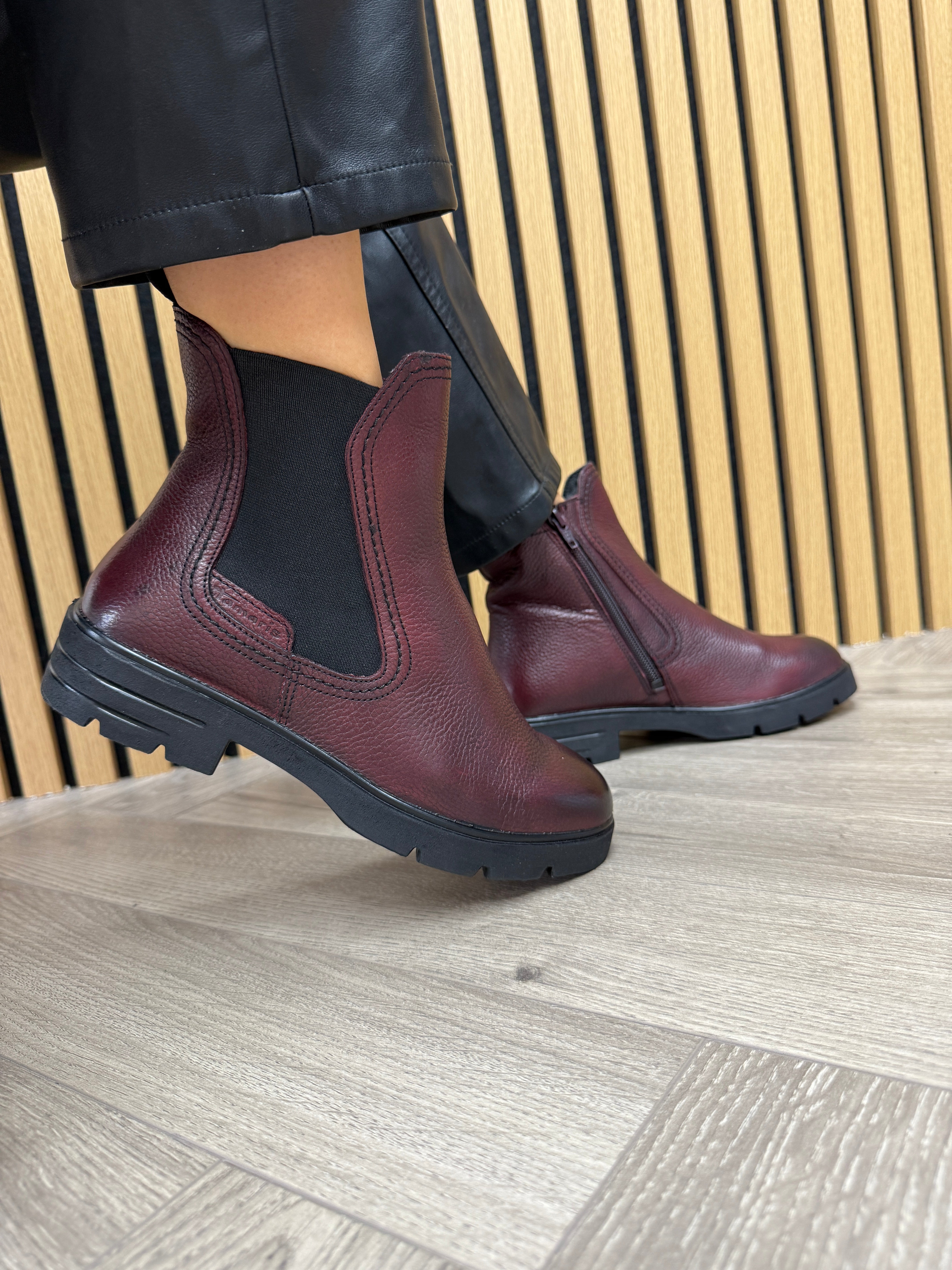 Tamaris (T55) Leather Boot With Gusset 25422 - Merlot