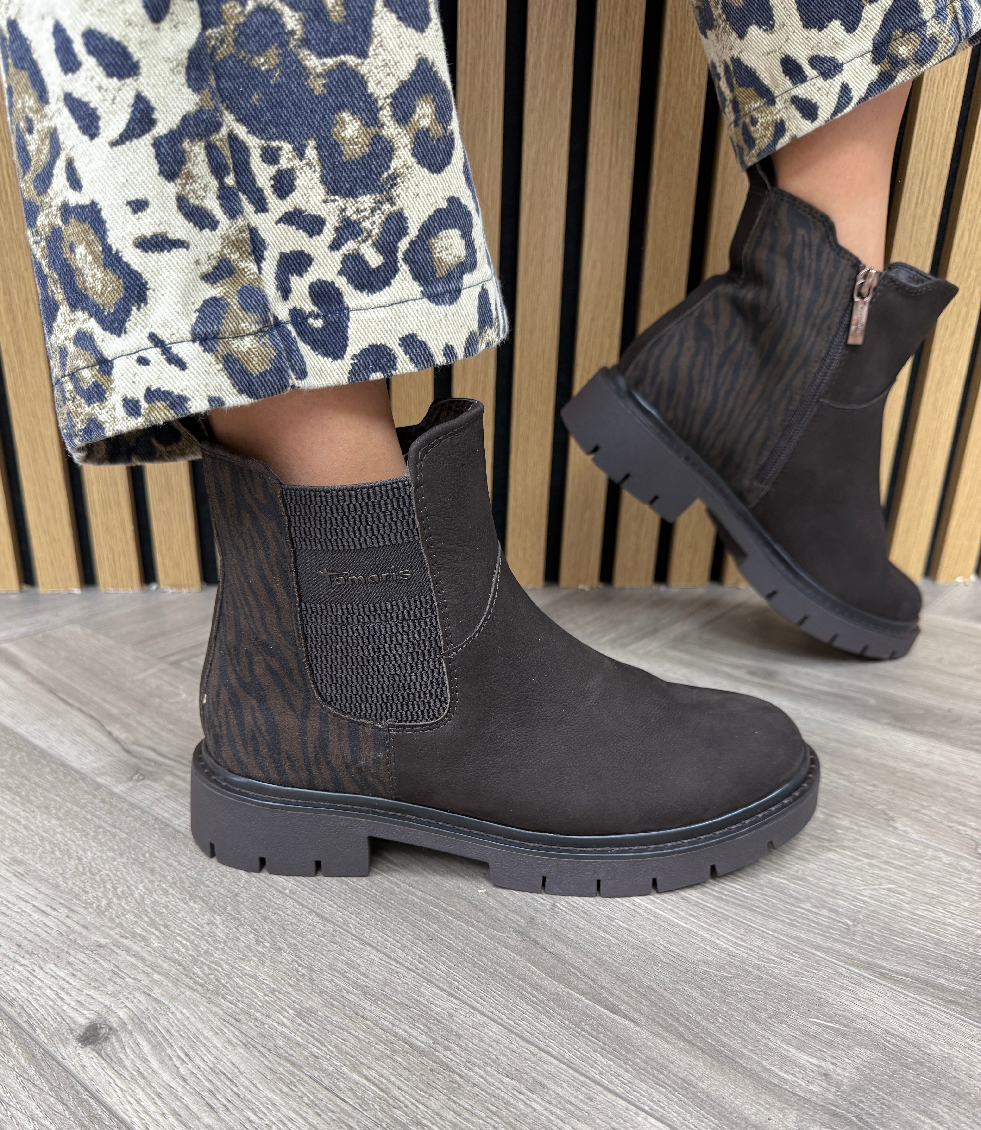 Tamaris (T56) Nubuck Leather Boot 85421 - Mocca Comb