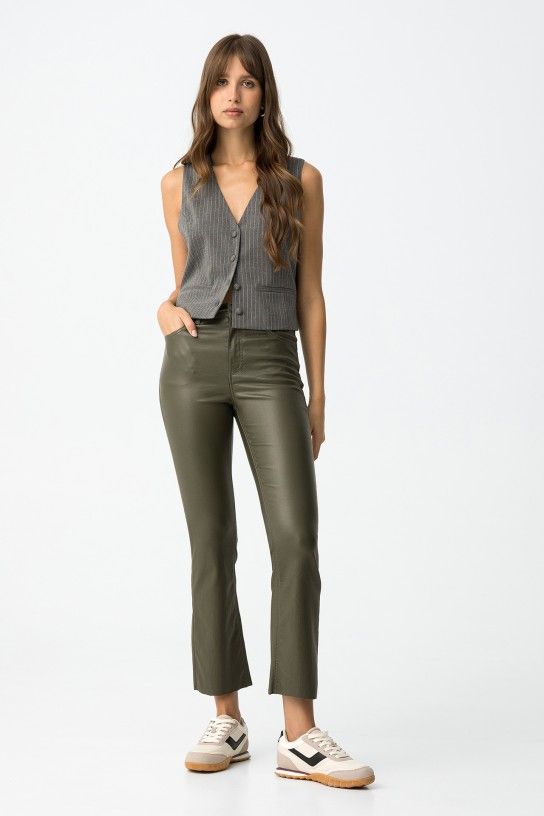 Tiffosi ‘Megan_111’ 10062864_831 Cropped Flare Leather Look Jean -Green (TC19)