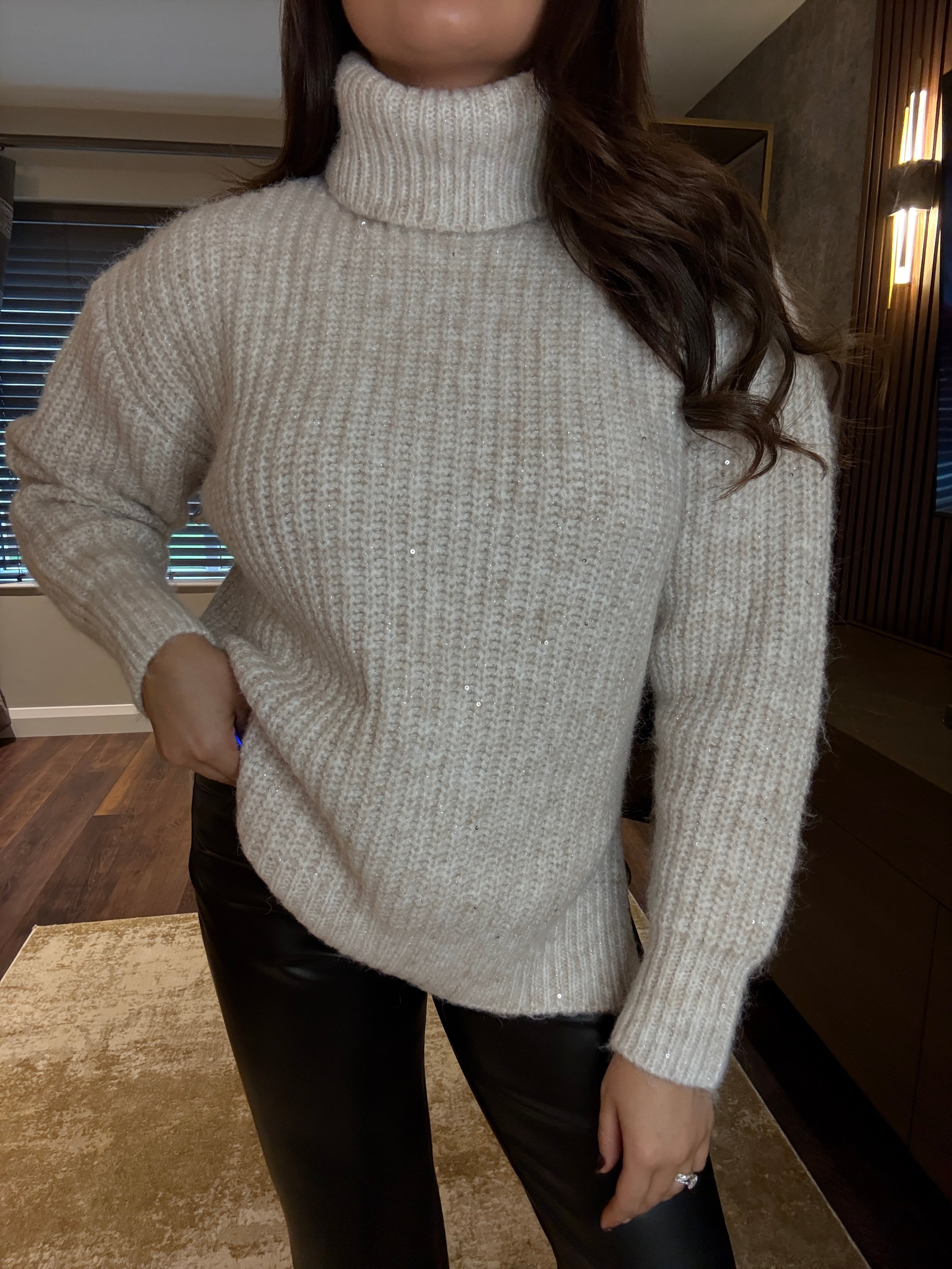 Tiffosi ‘Midnight’ 10061658_733 Roll Neck Jumper With Shimmer - Beige (TC52)