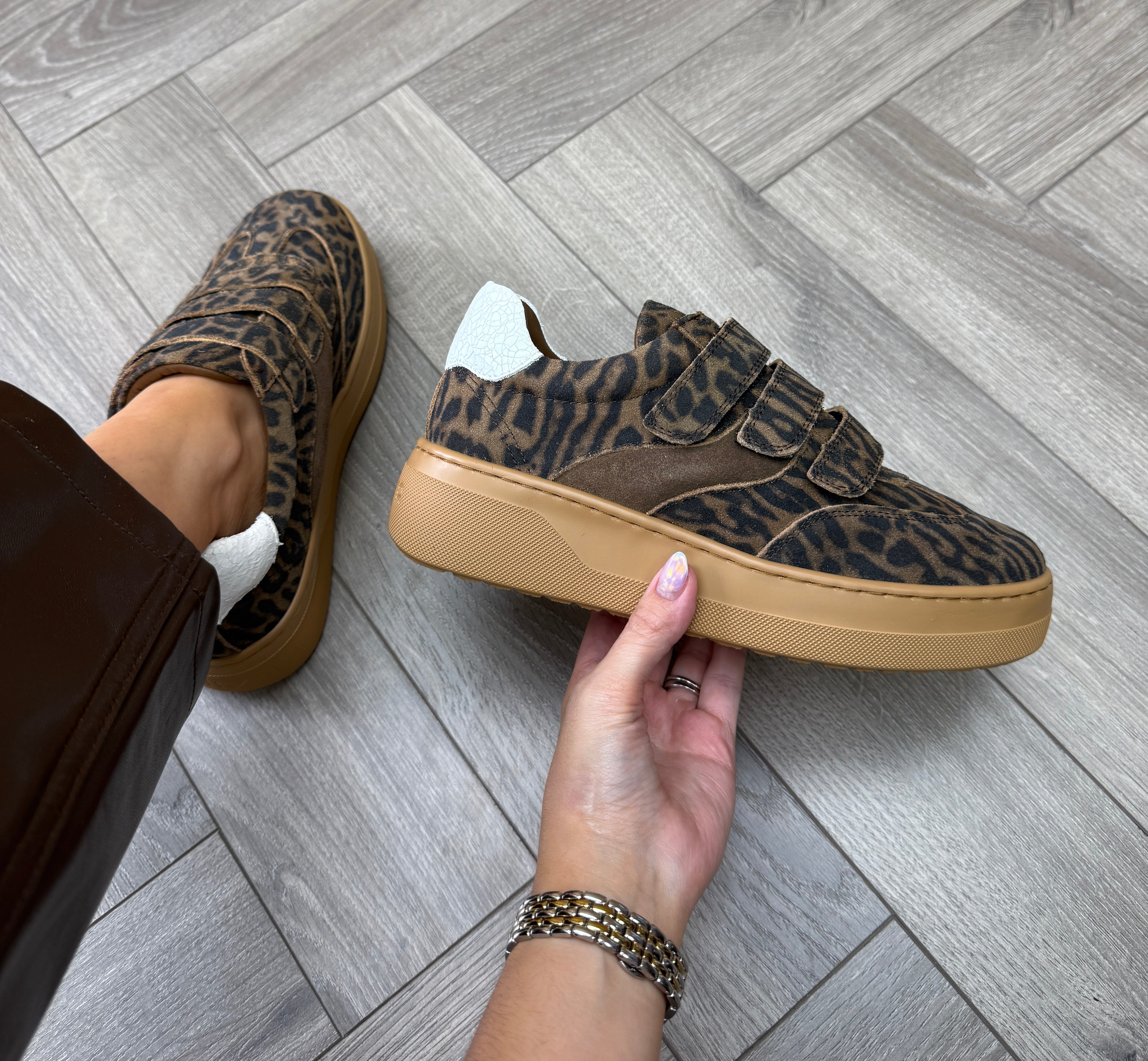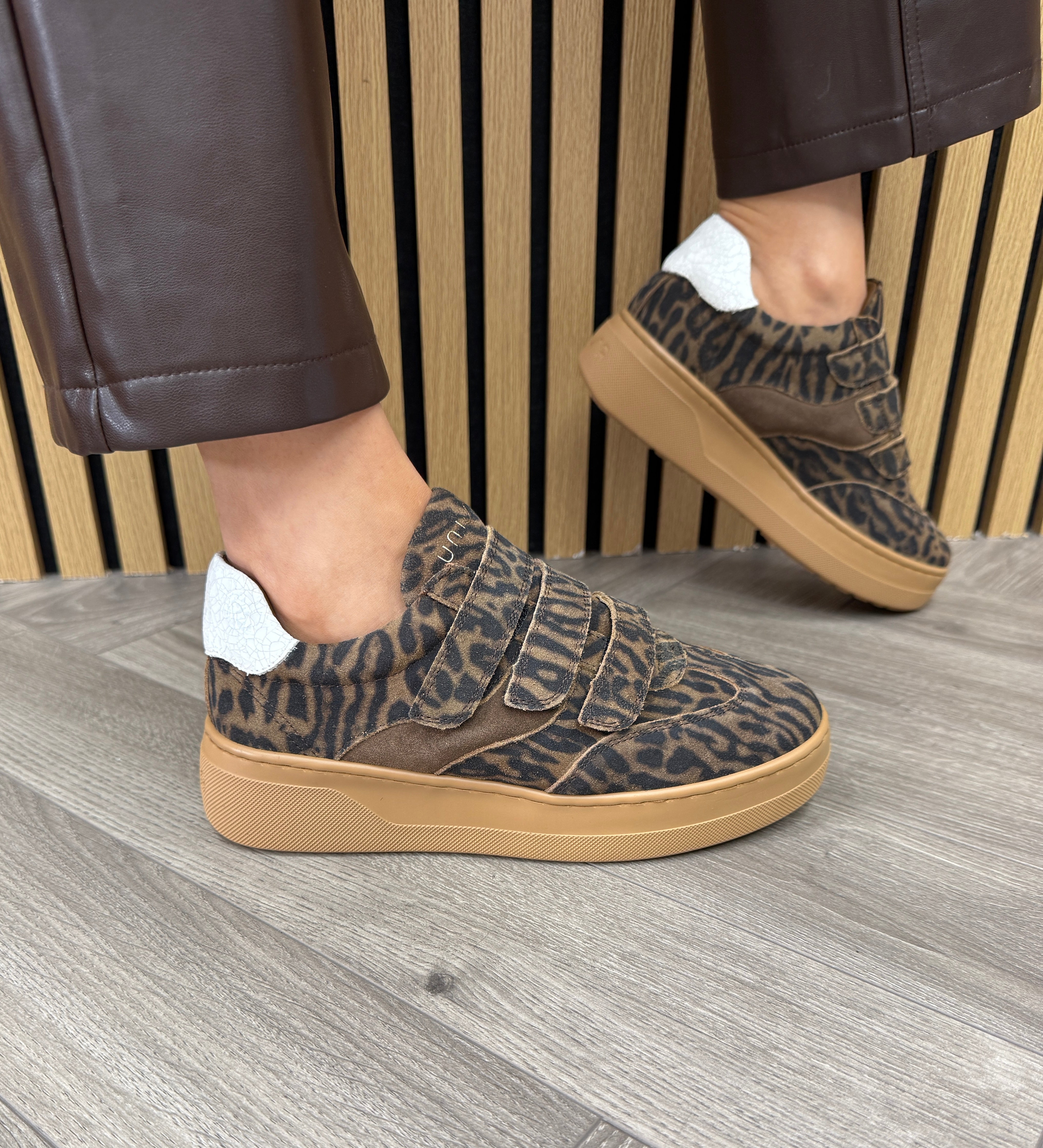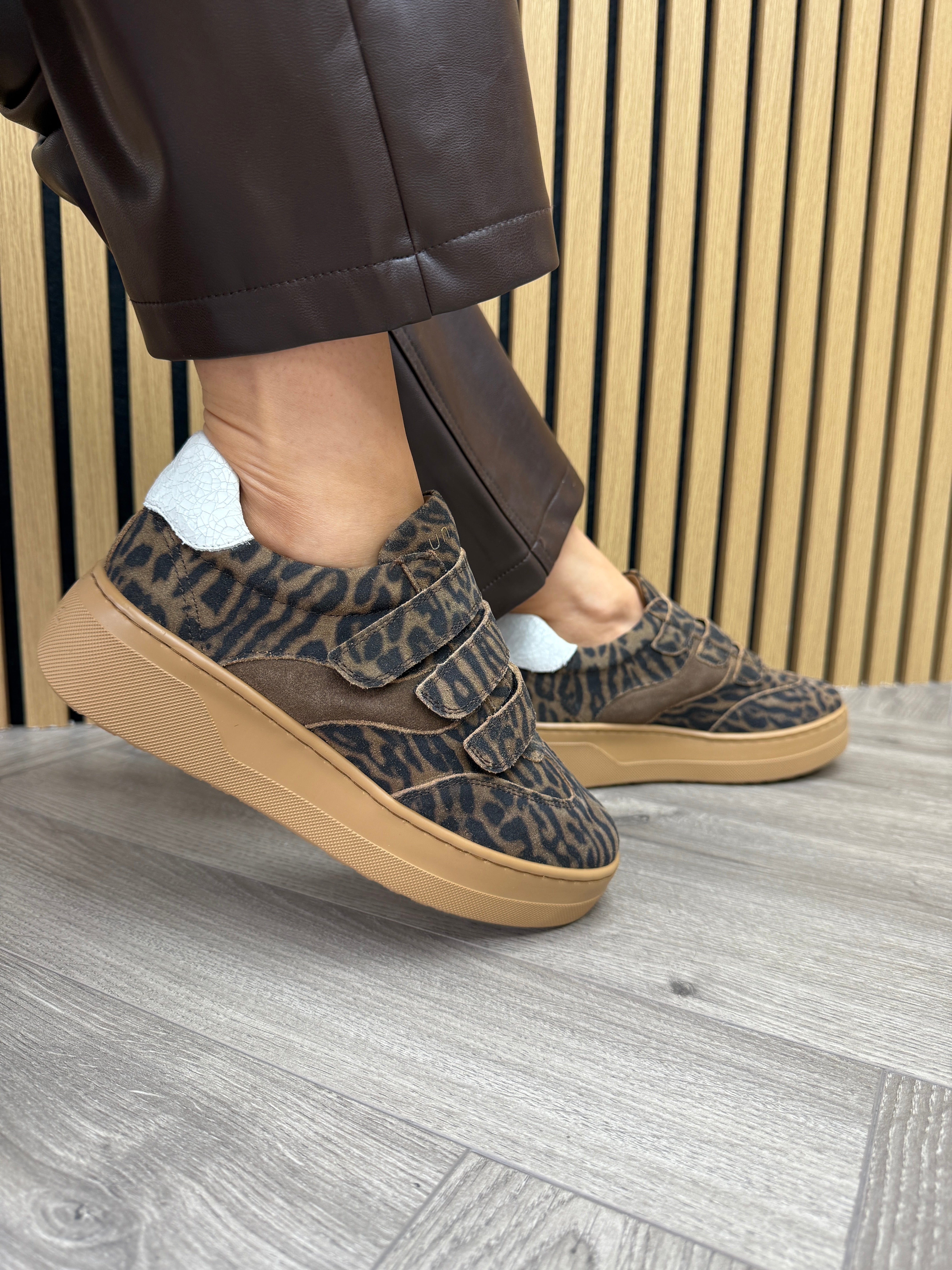 Unisa ‘Finto_Zul_BS’ Platform Leopard Trainer With Velcro Straps - Wengue (U7AW)