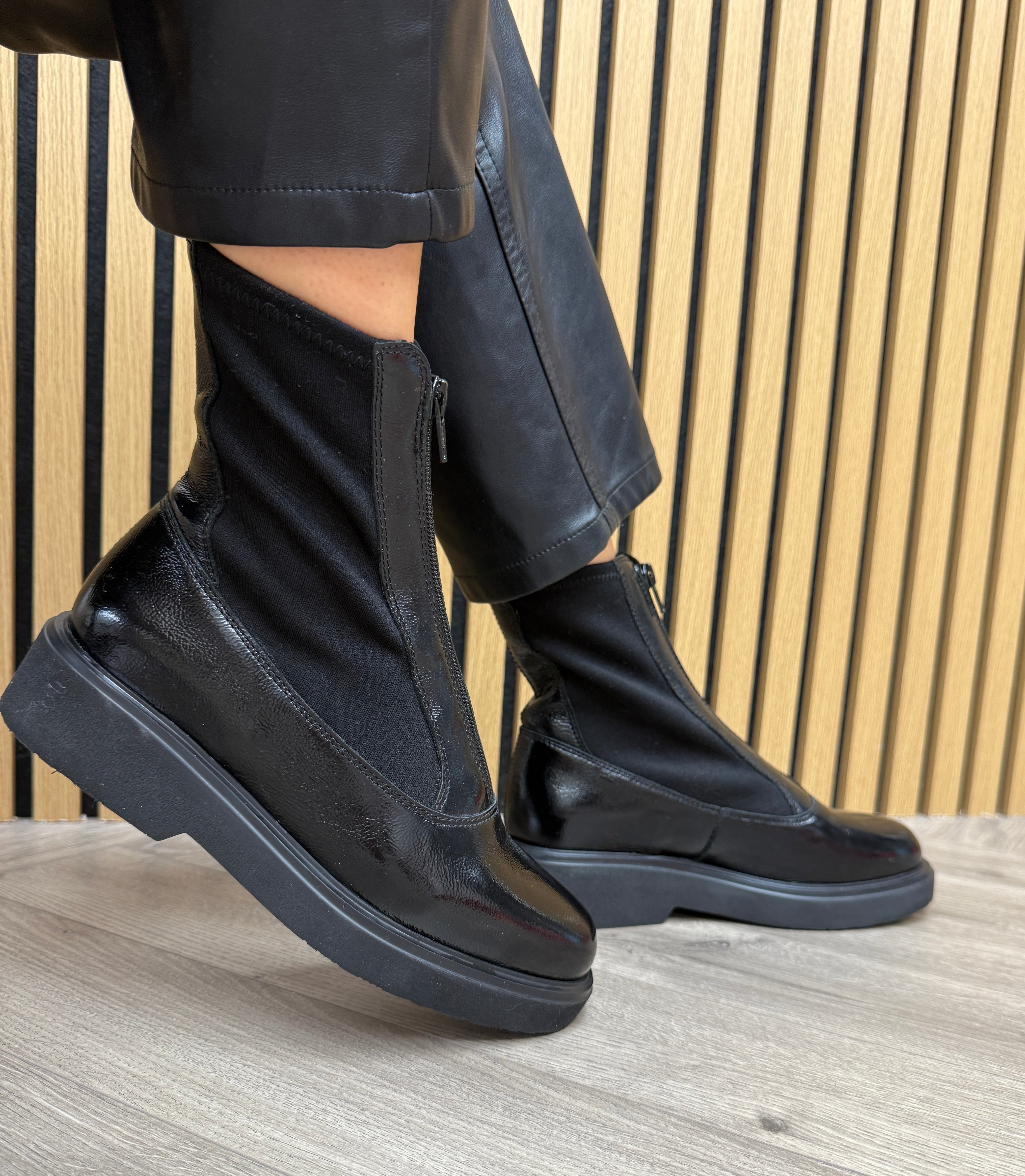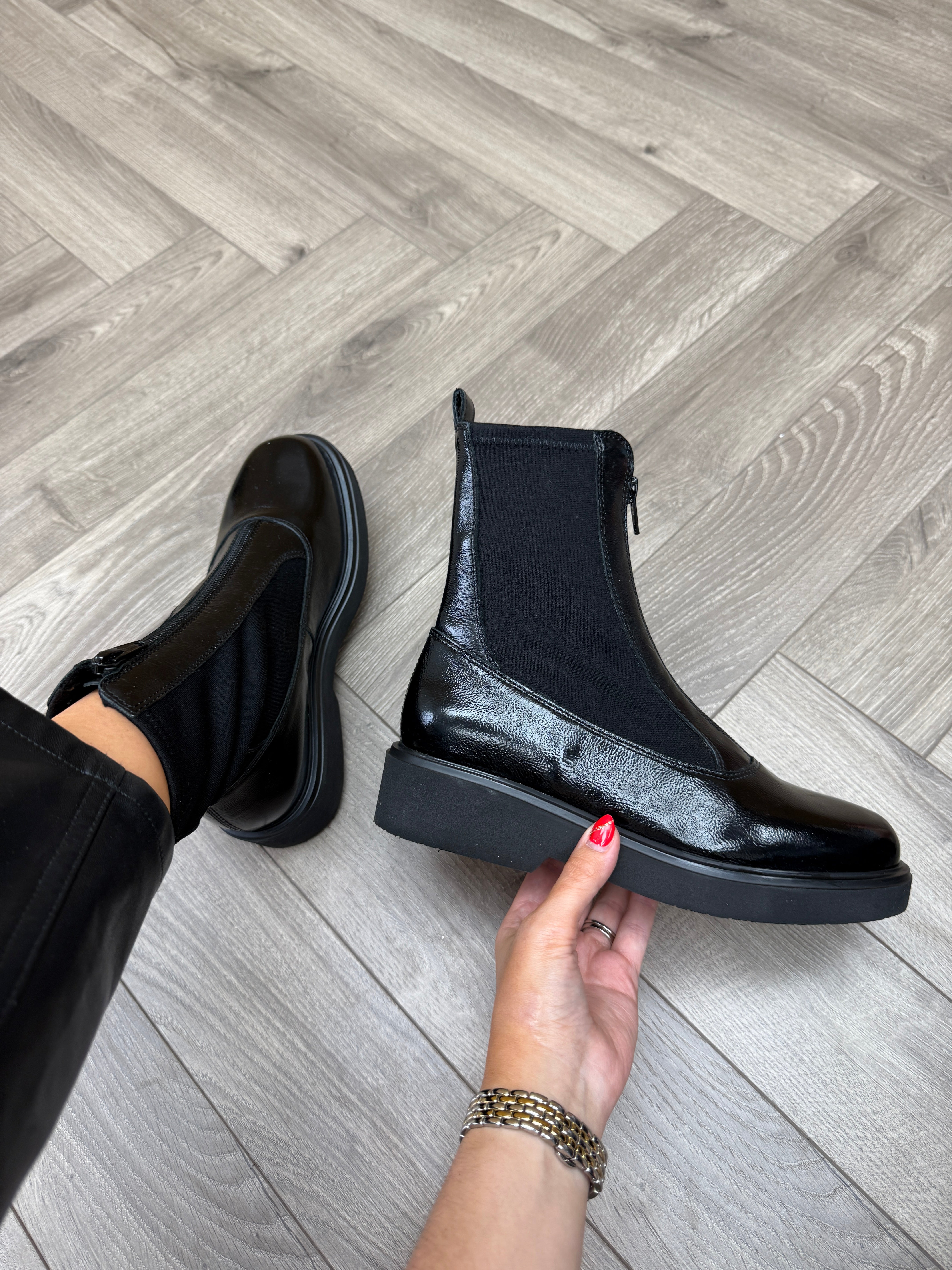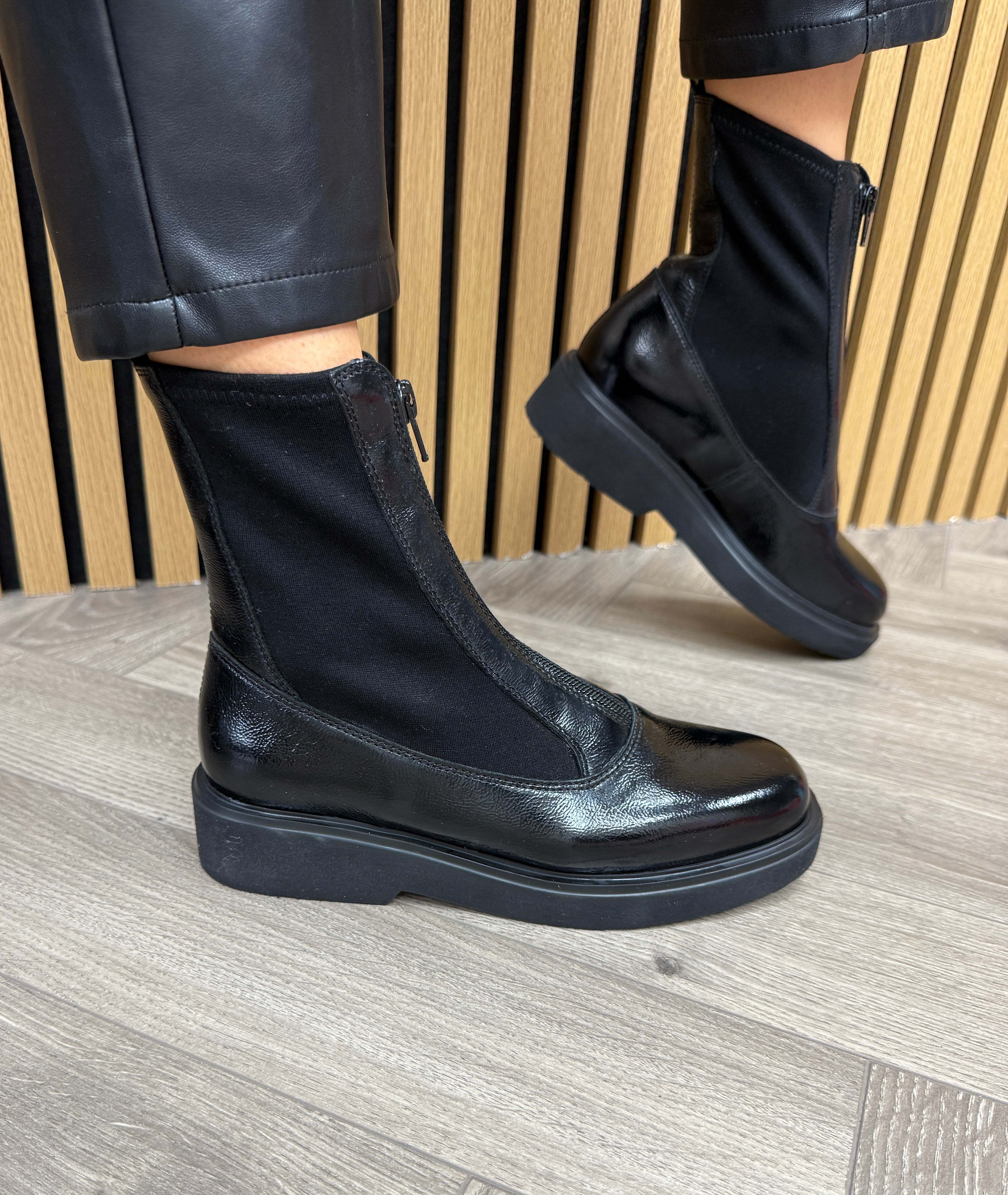 Unisa ‘Foggia_F25_PCR_SCU’ Patent Front Zip Boot - Black (U8AW)