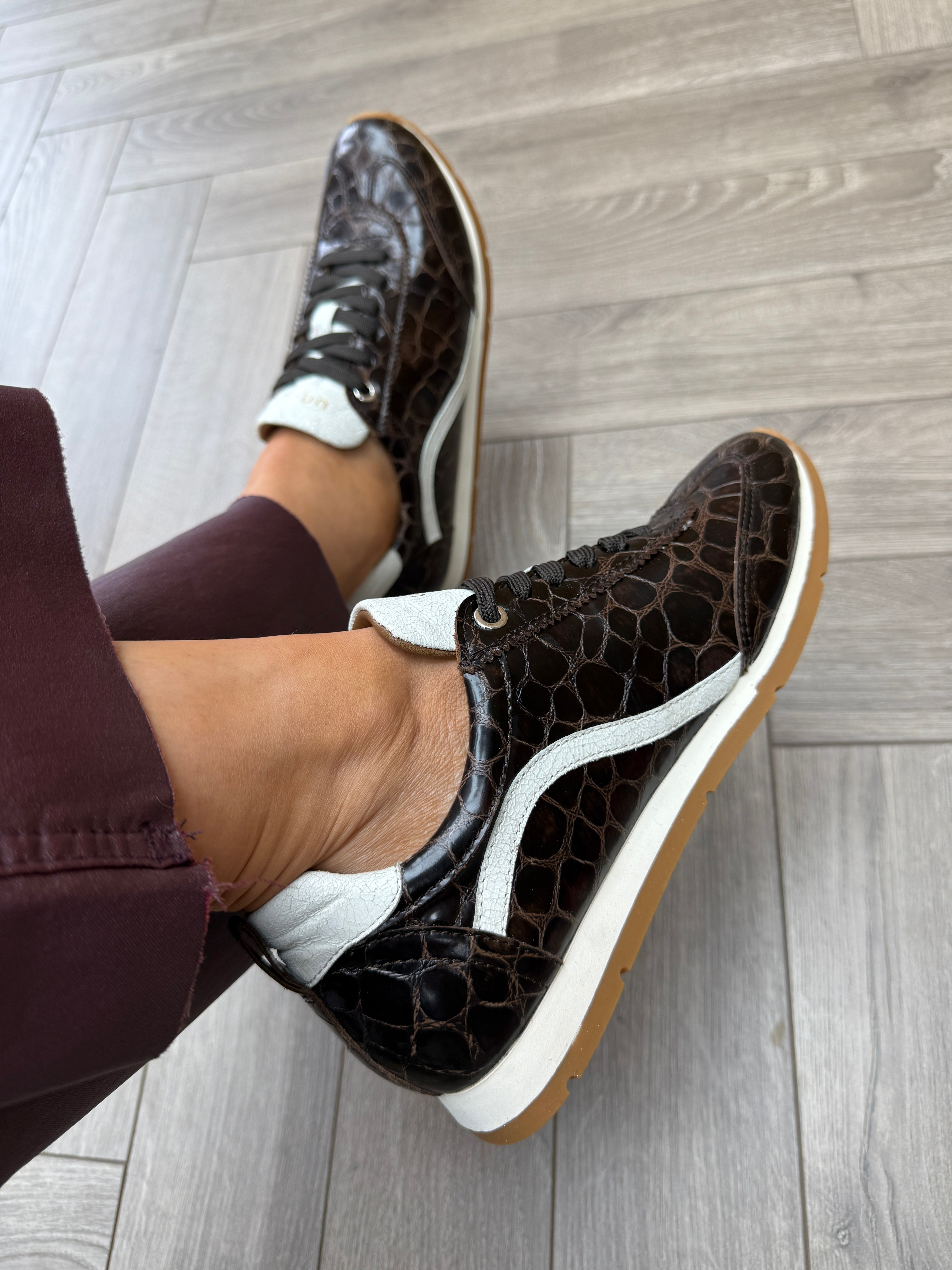 Unisa (U9) Croc Print Trainer Dalai_Sul_Gri - Wengue/Ivory