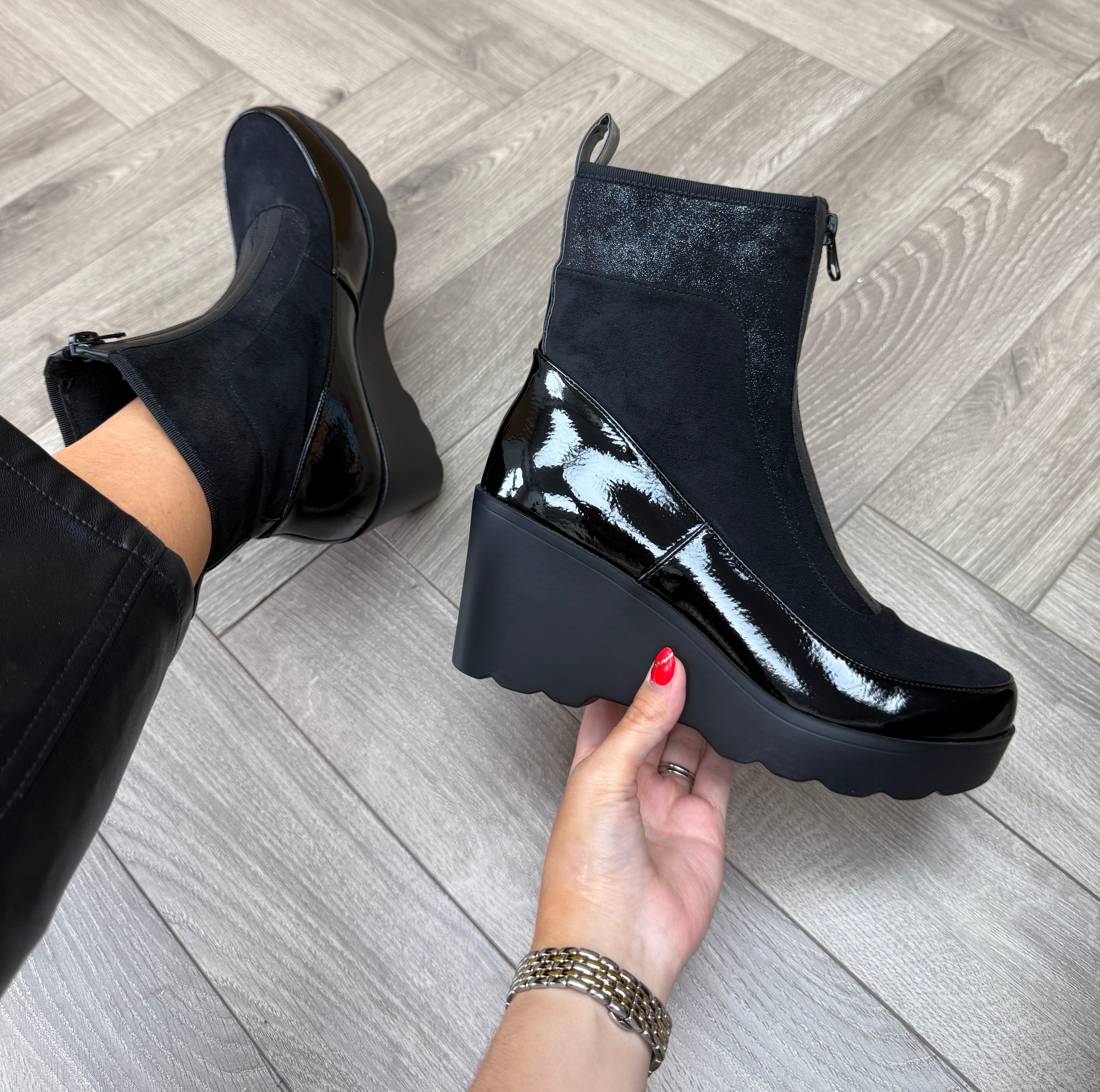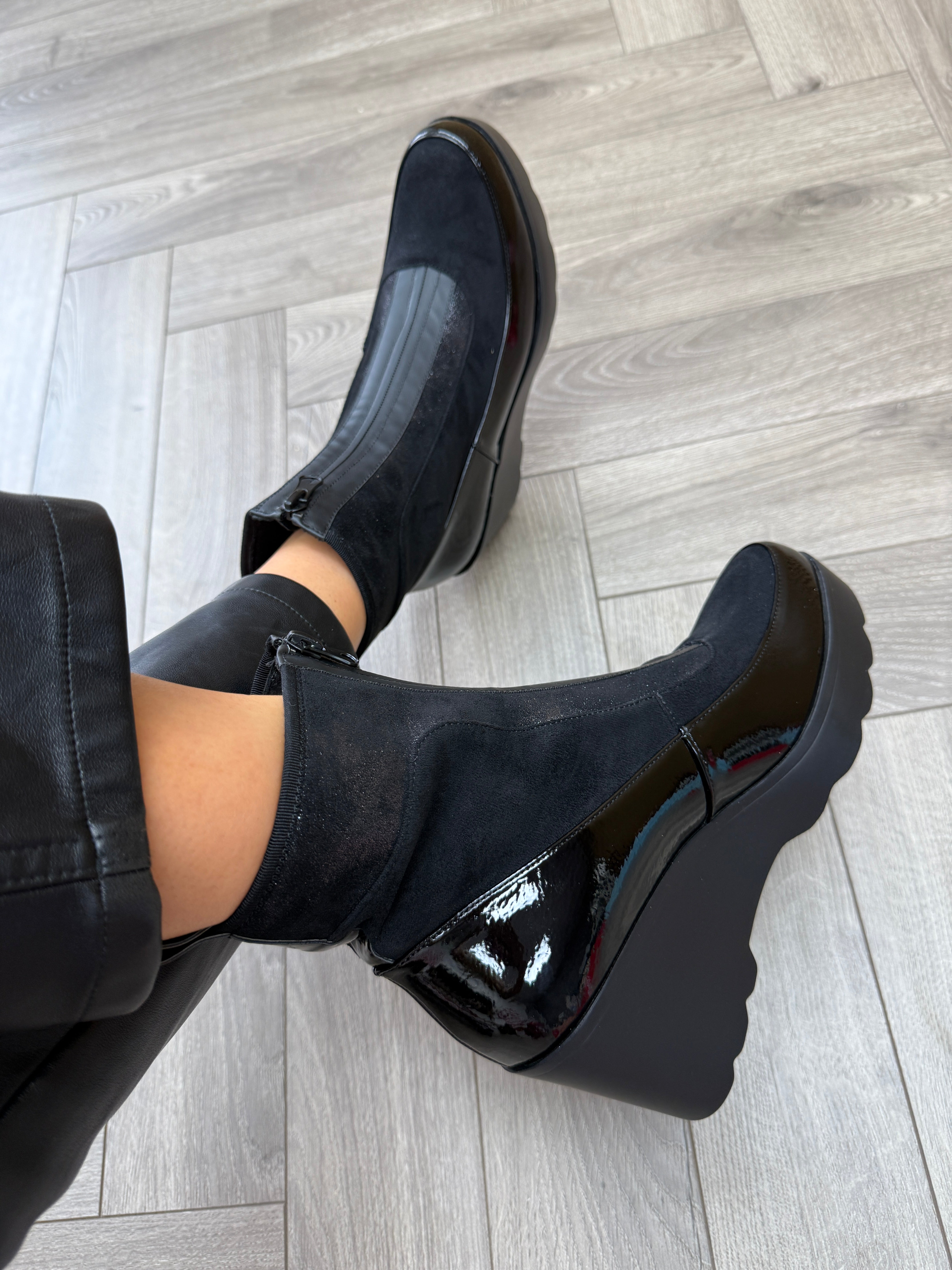 Redz ‘F1738’ Wedge Front Zip Boot - Black (R10)