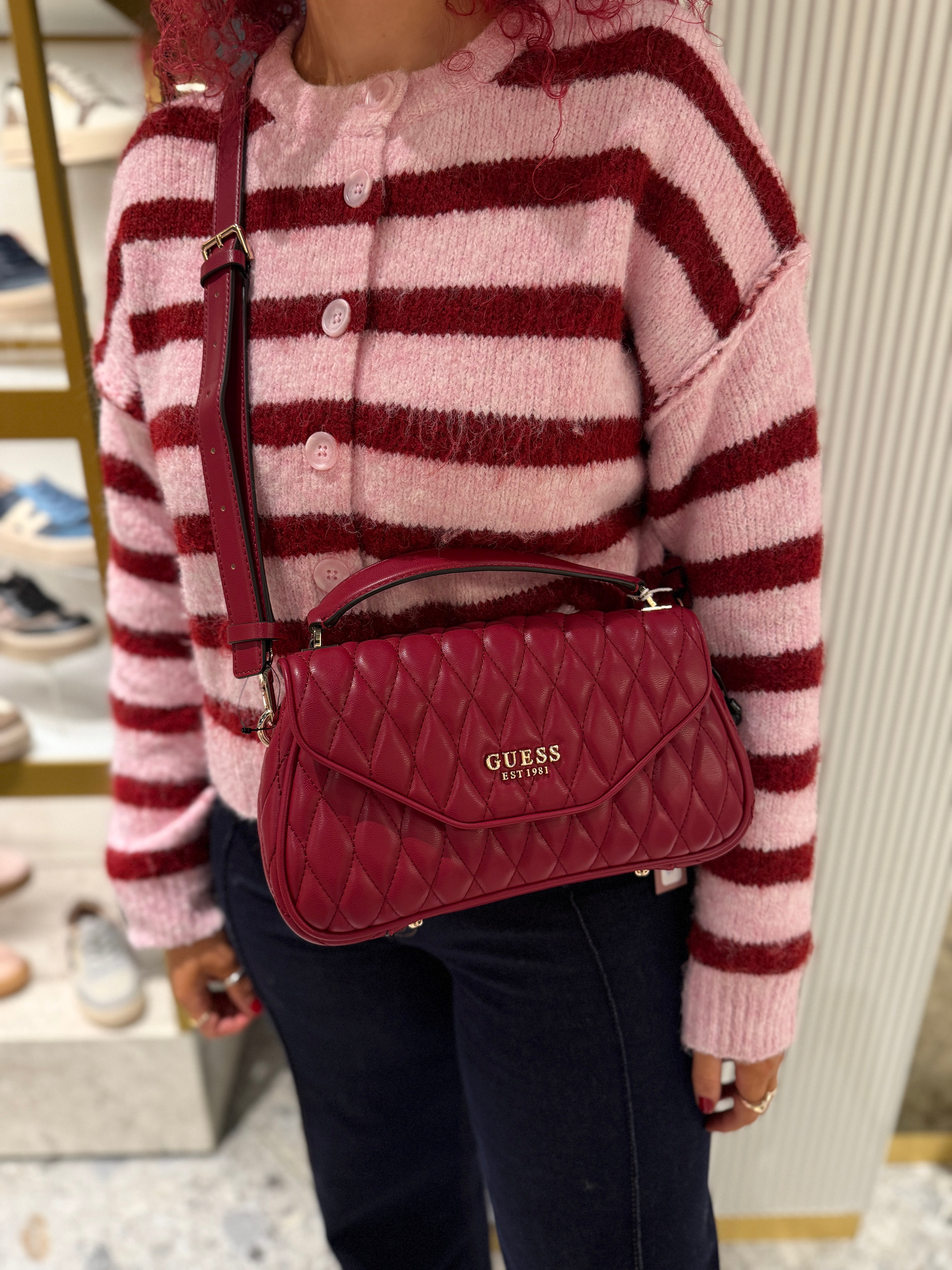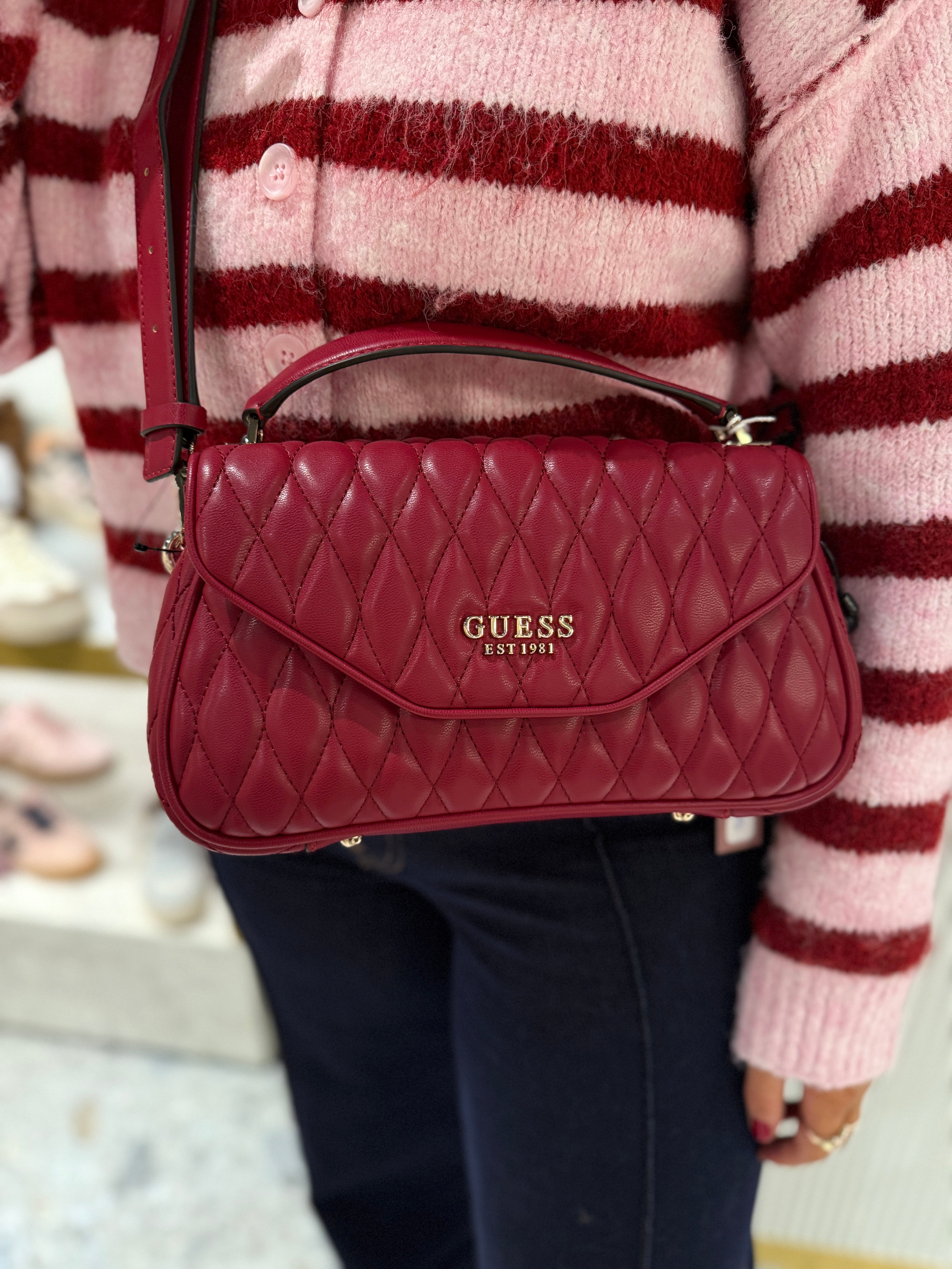 Guess ‘Valla’ QG812220 Quilted Flap over Bag Top Handle - Red (GB46)