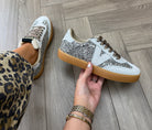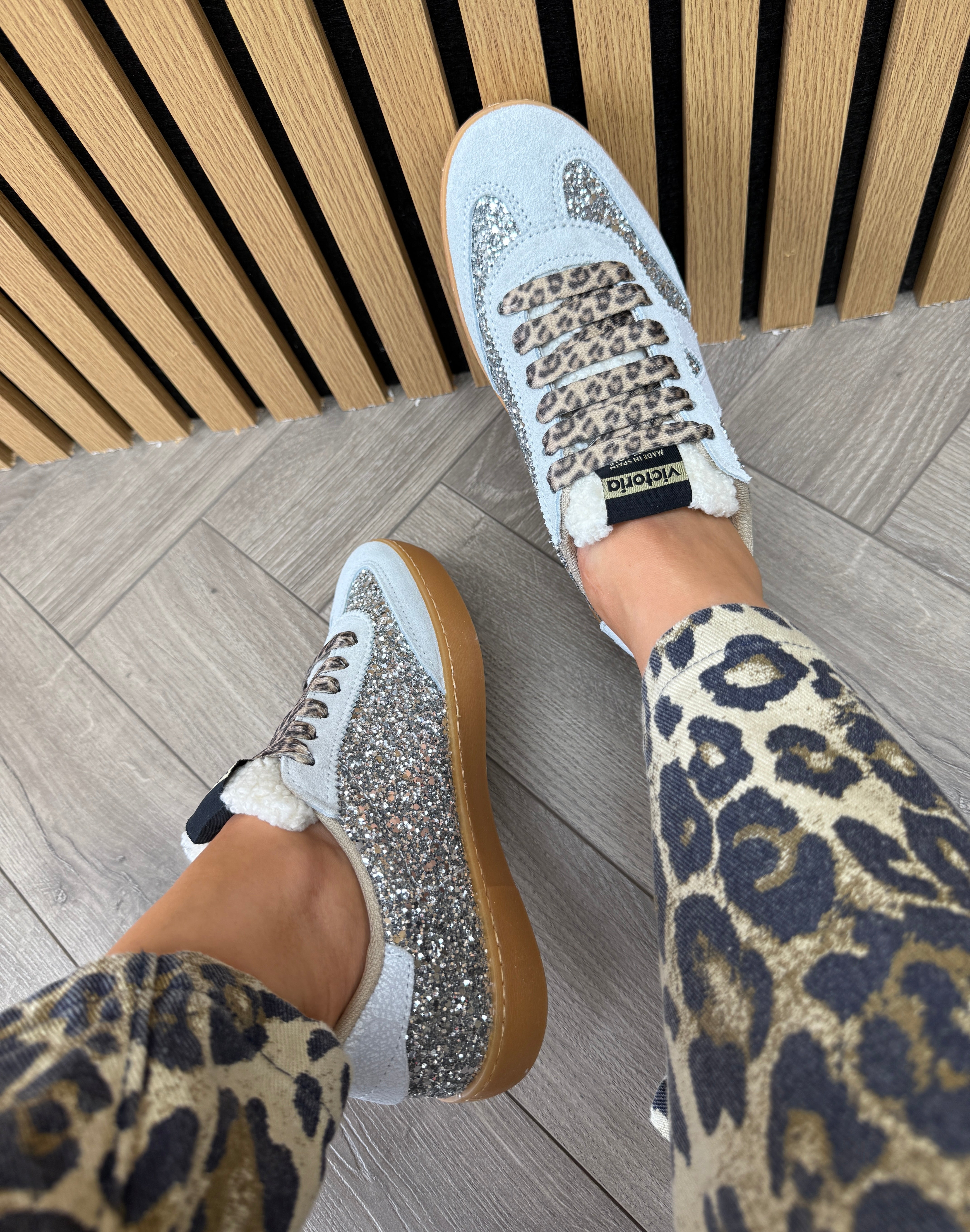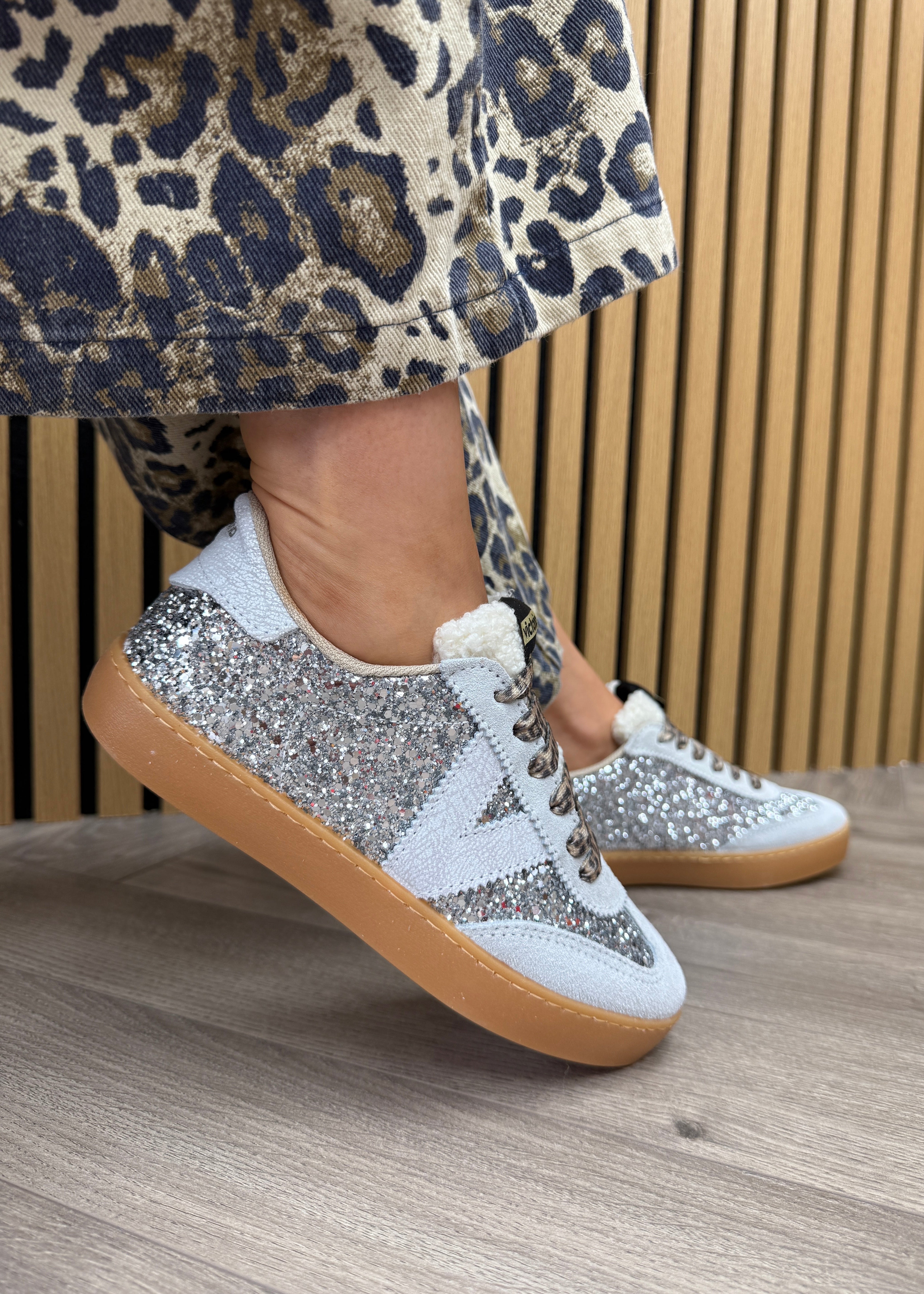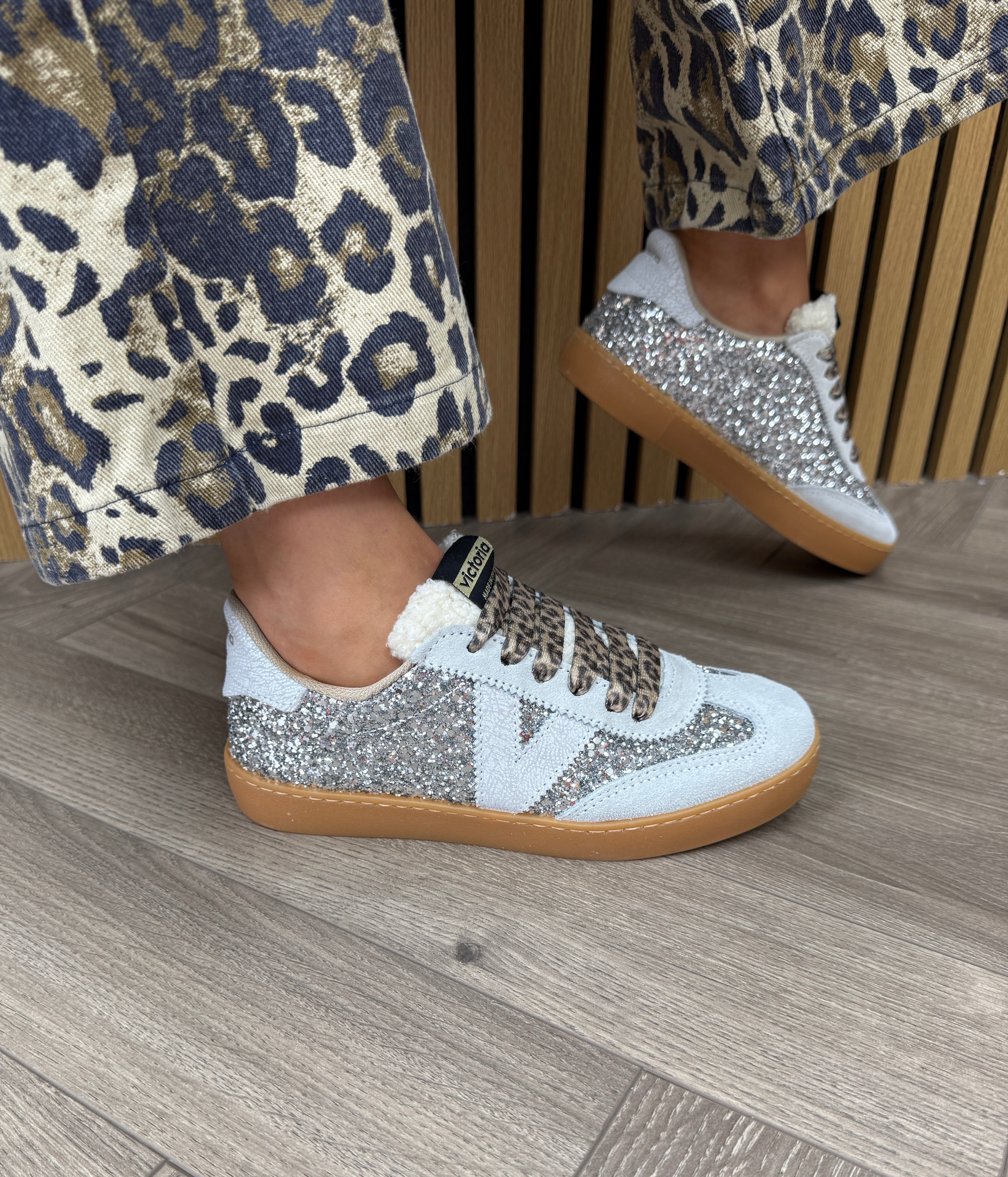 Victoria (AW25) 1126223 Gum Sole Glitter Trainer With Leopard Lace - Plata (V4AW)