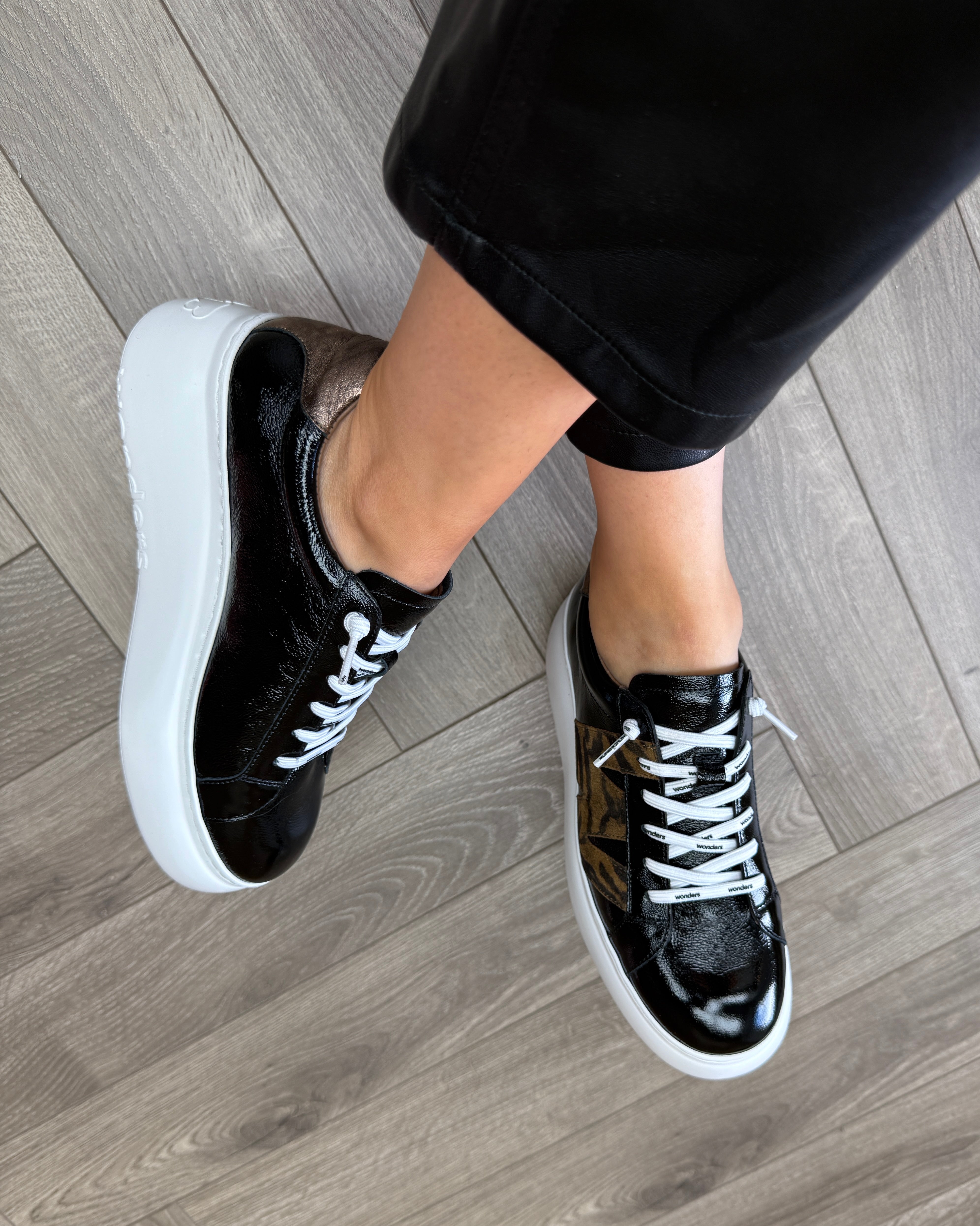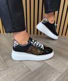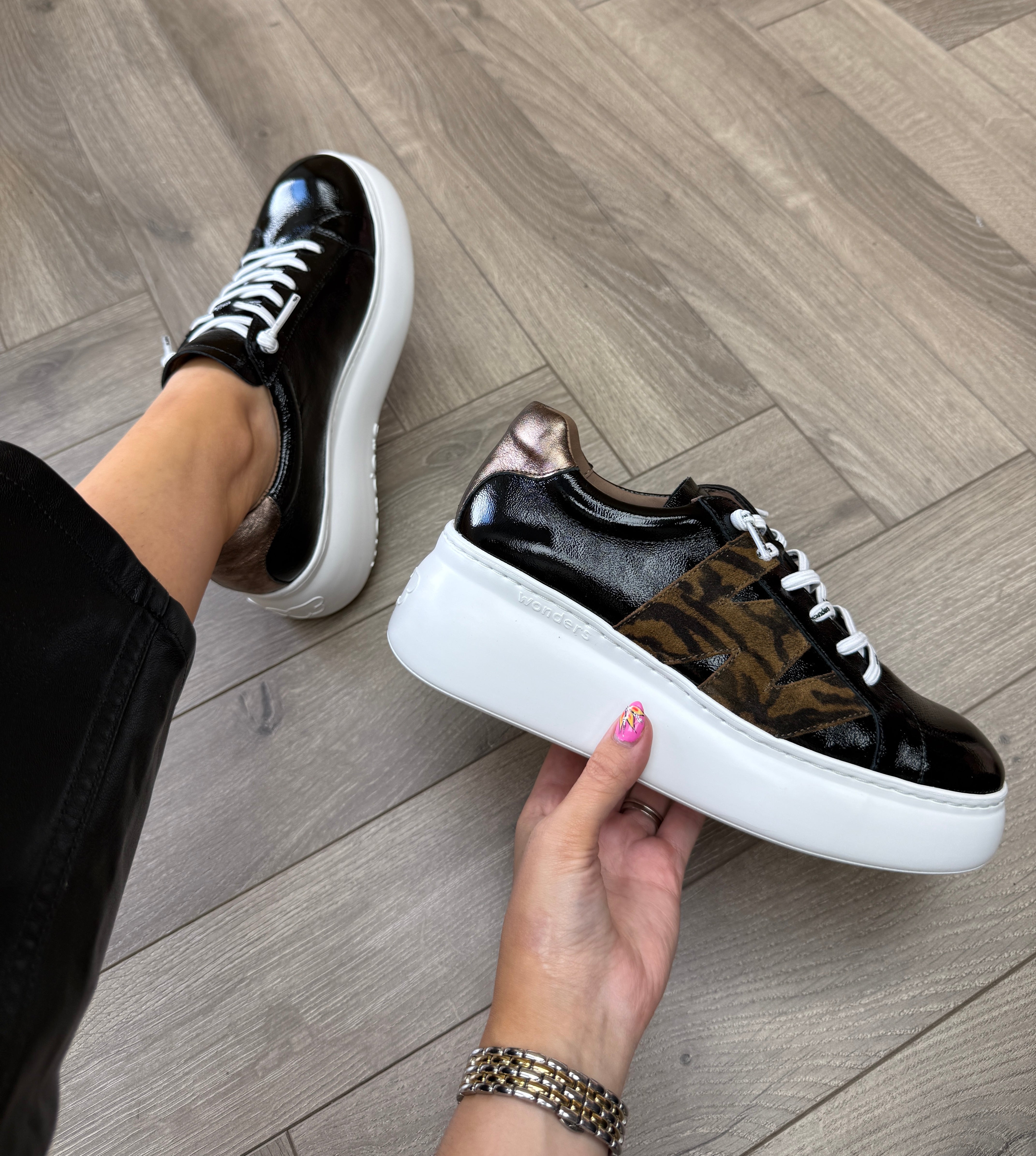Wonders (AW25) A-2660 Chunky White Sole Trainer With Animal Print Logo - Nergo/Zebra (W20AW)