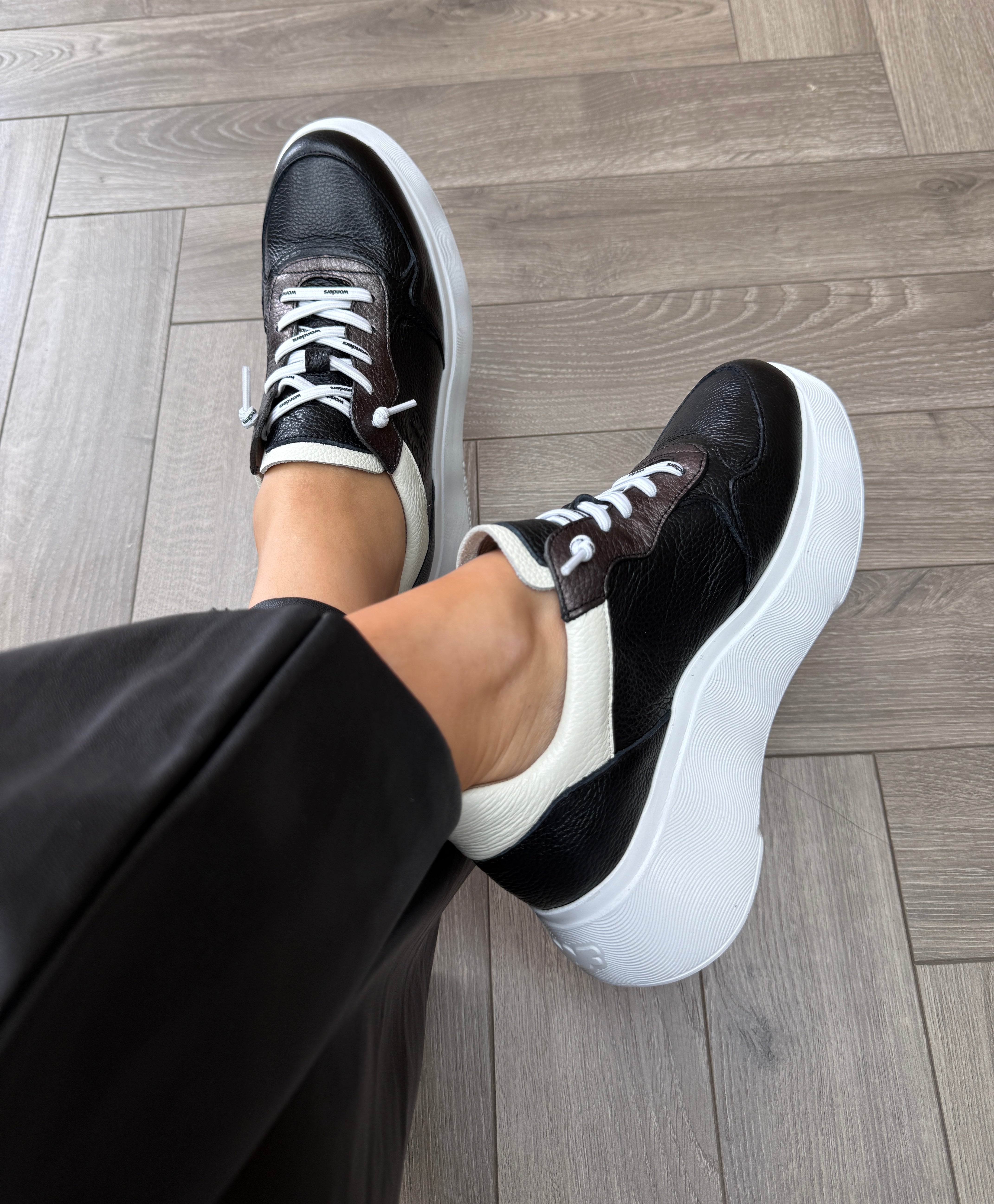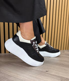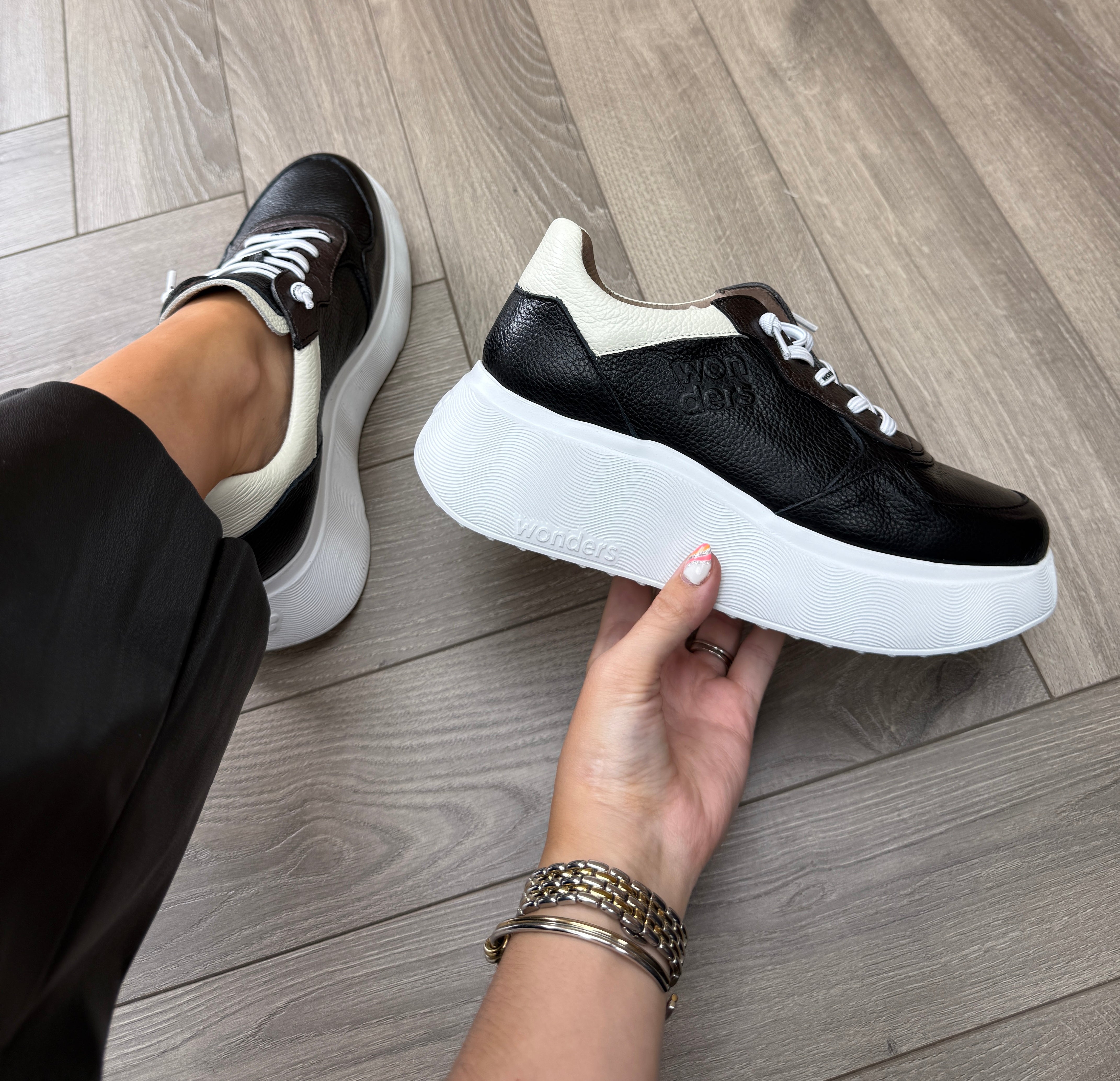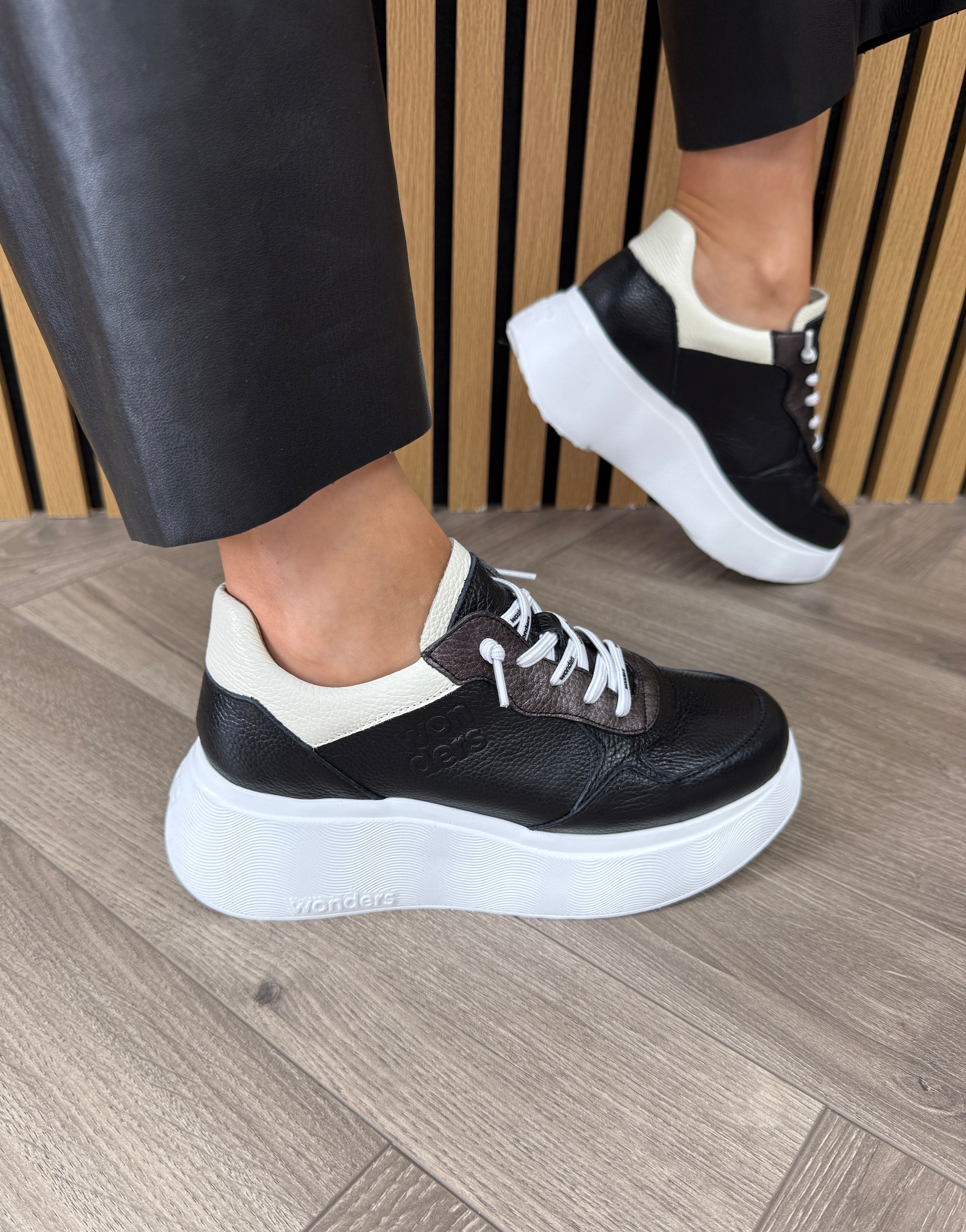 Wonders (AW25) A-3630 Chunky Sole Trainer With Elastic Lace - Negro /Plomo (W8AW)