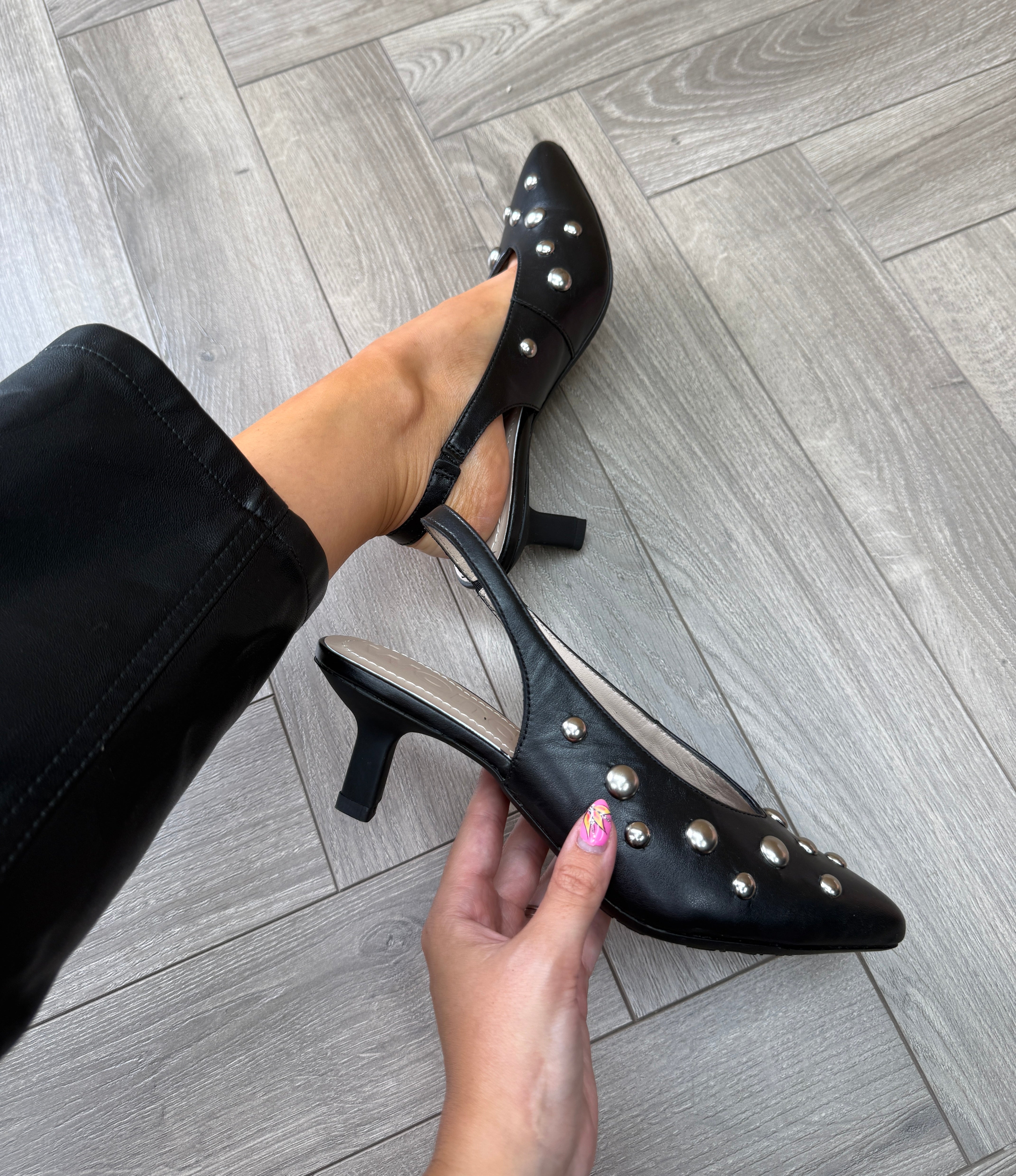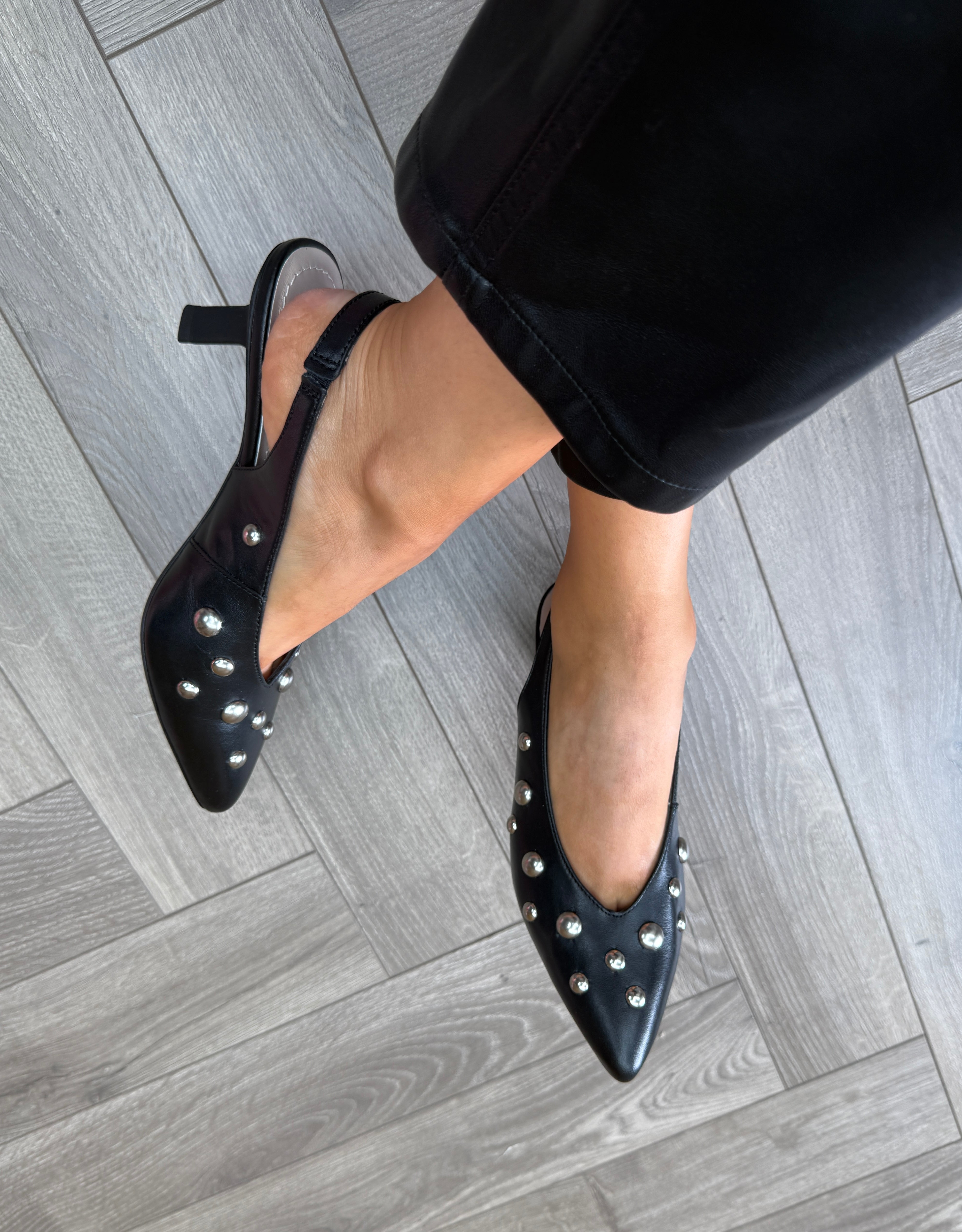 Wonders (AW25) Pointed Toe Slingback With Studs G-7123 - Negro (W1AW)