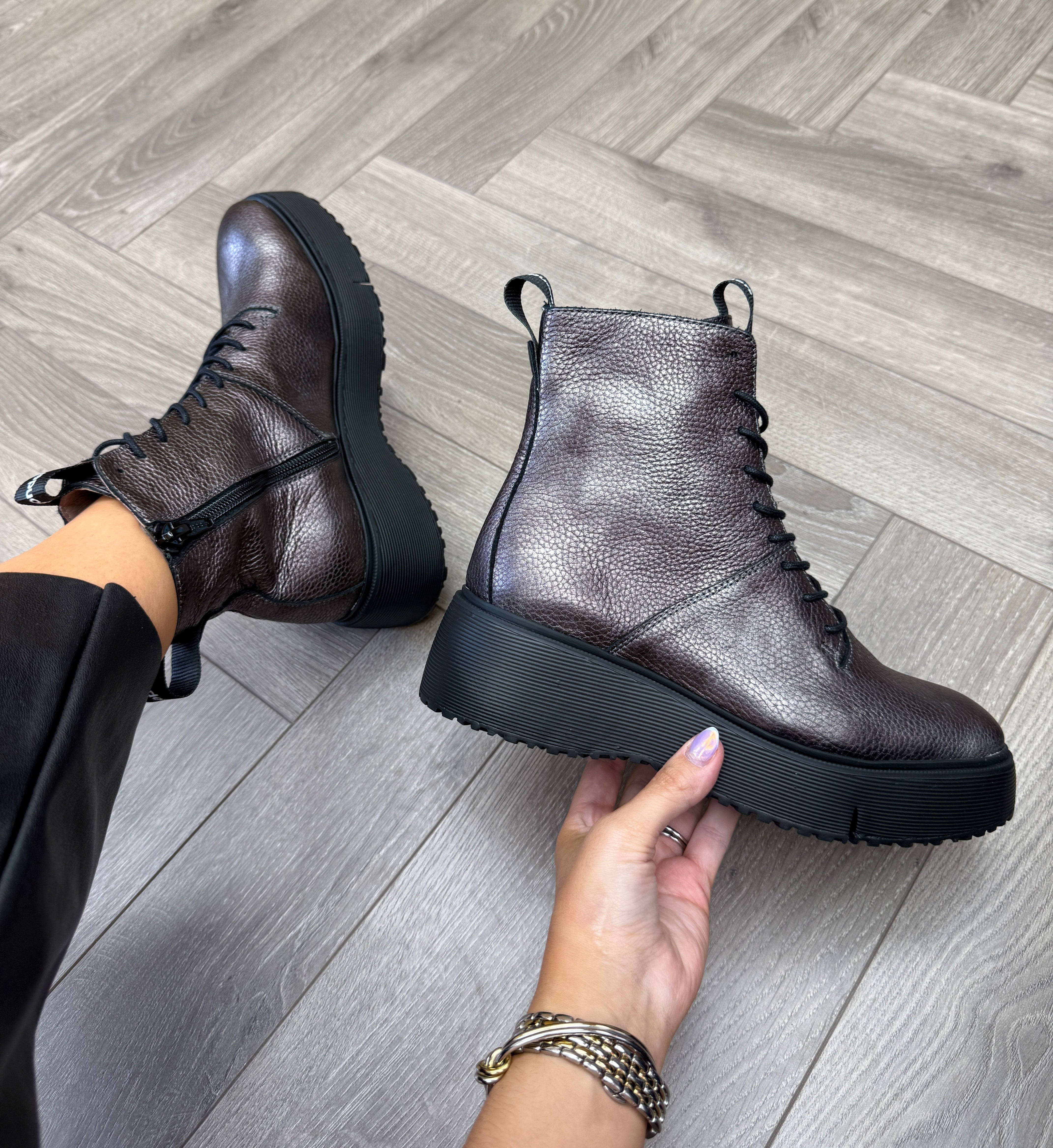 Wonders (W33) Metallic Boot With Side Zip A-9350 - Plomo