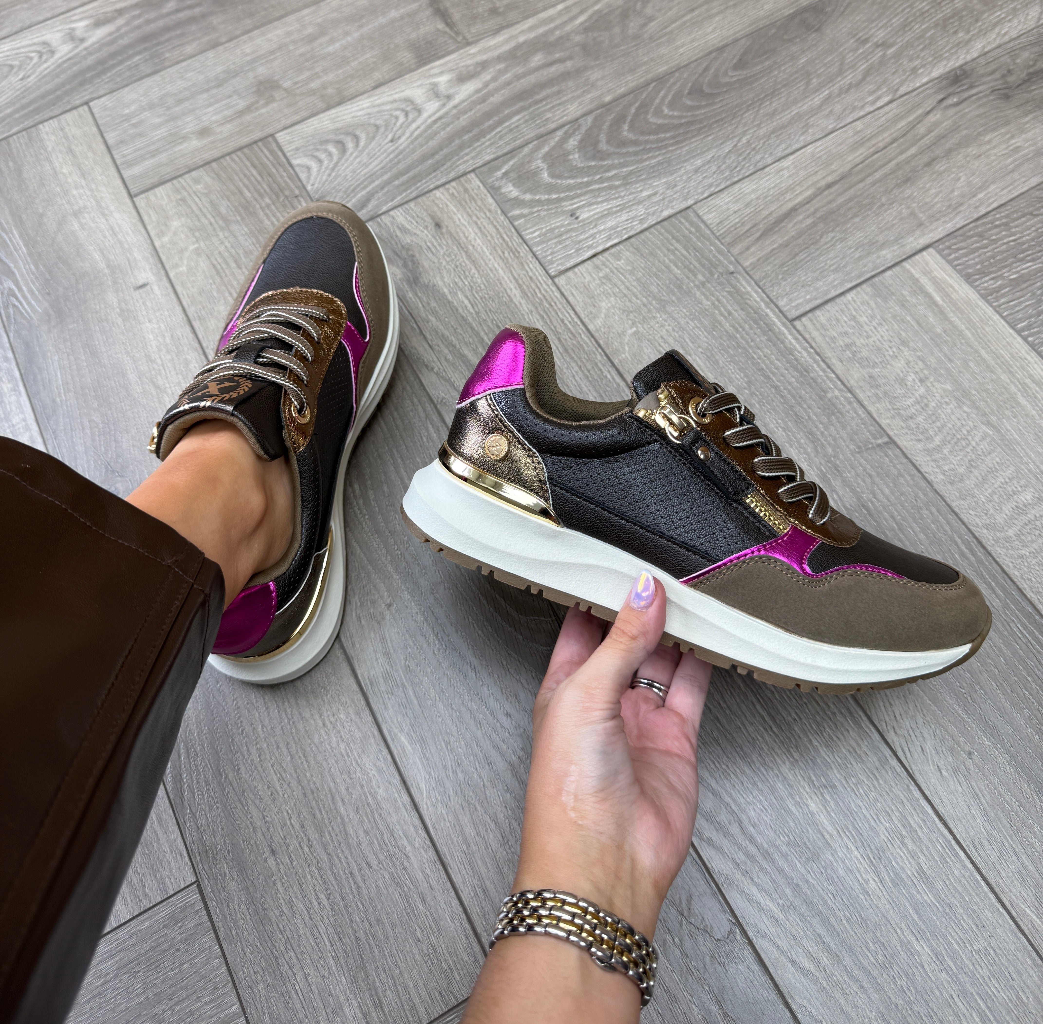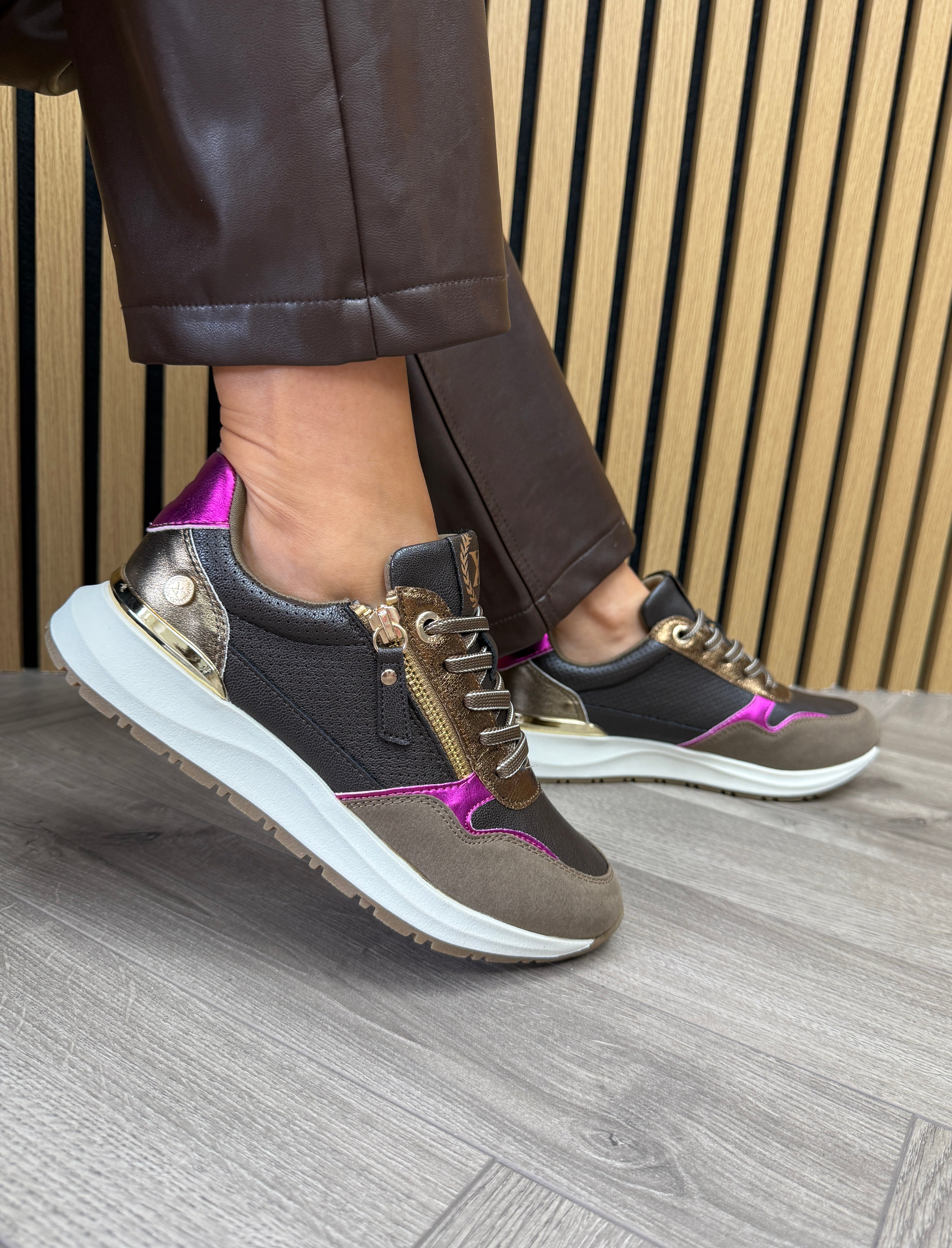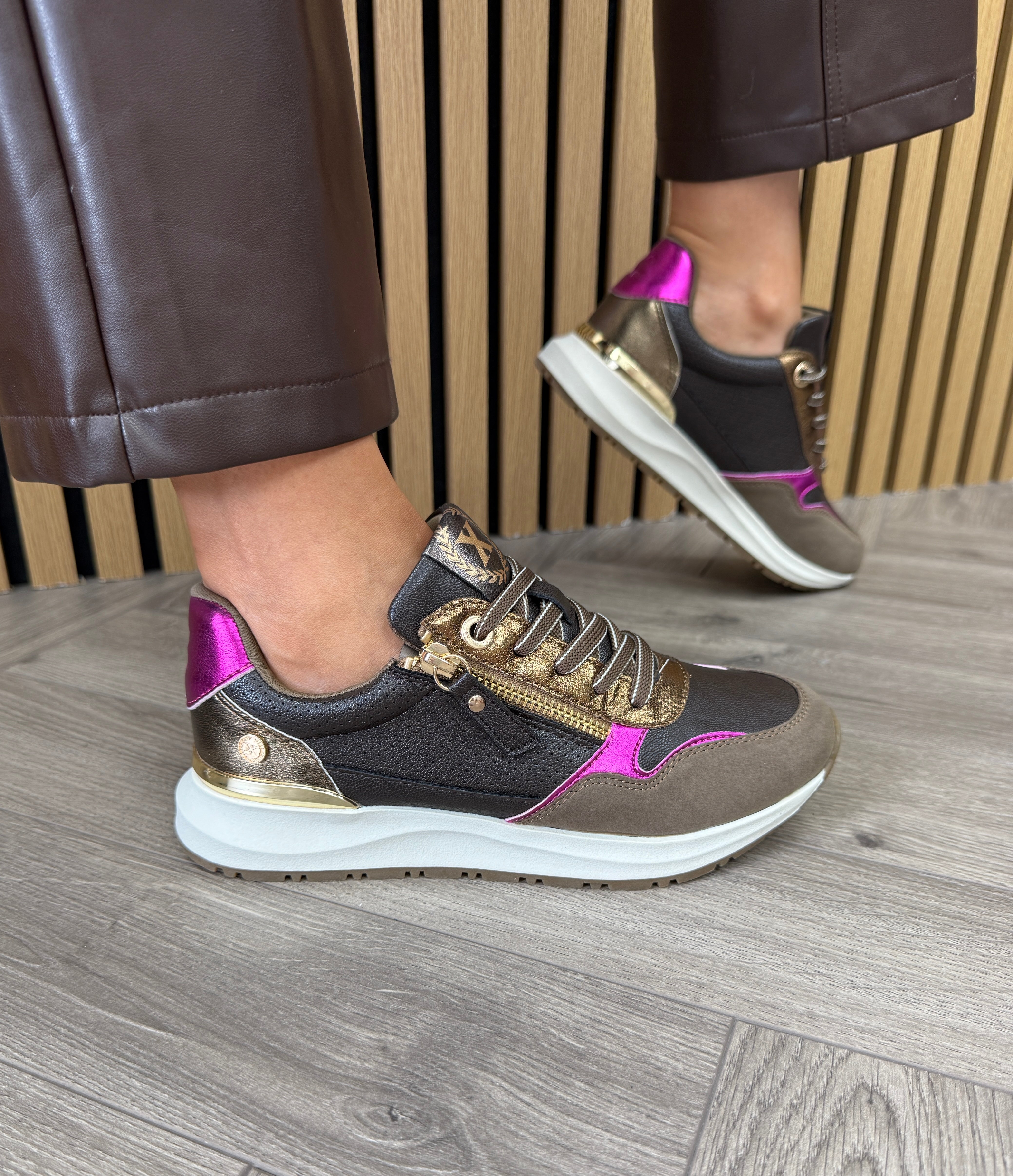 XTI (AW25) 144218 Zip Trainer With Metallic Trim - Z.C.Marron (X34AW)