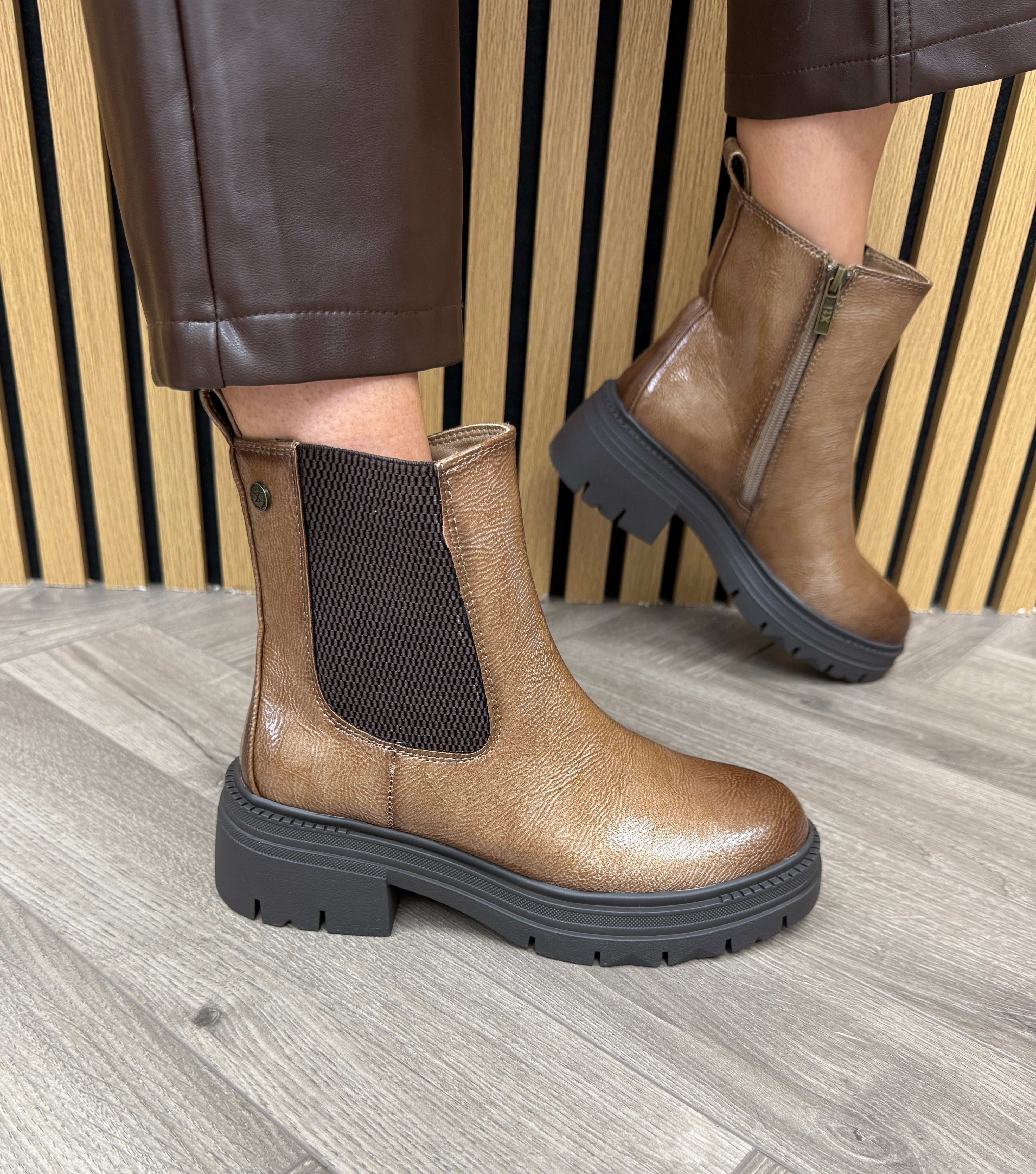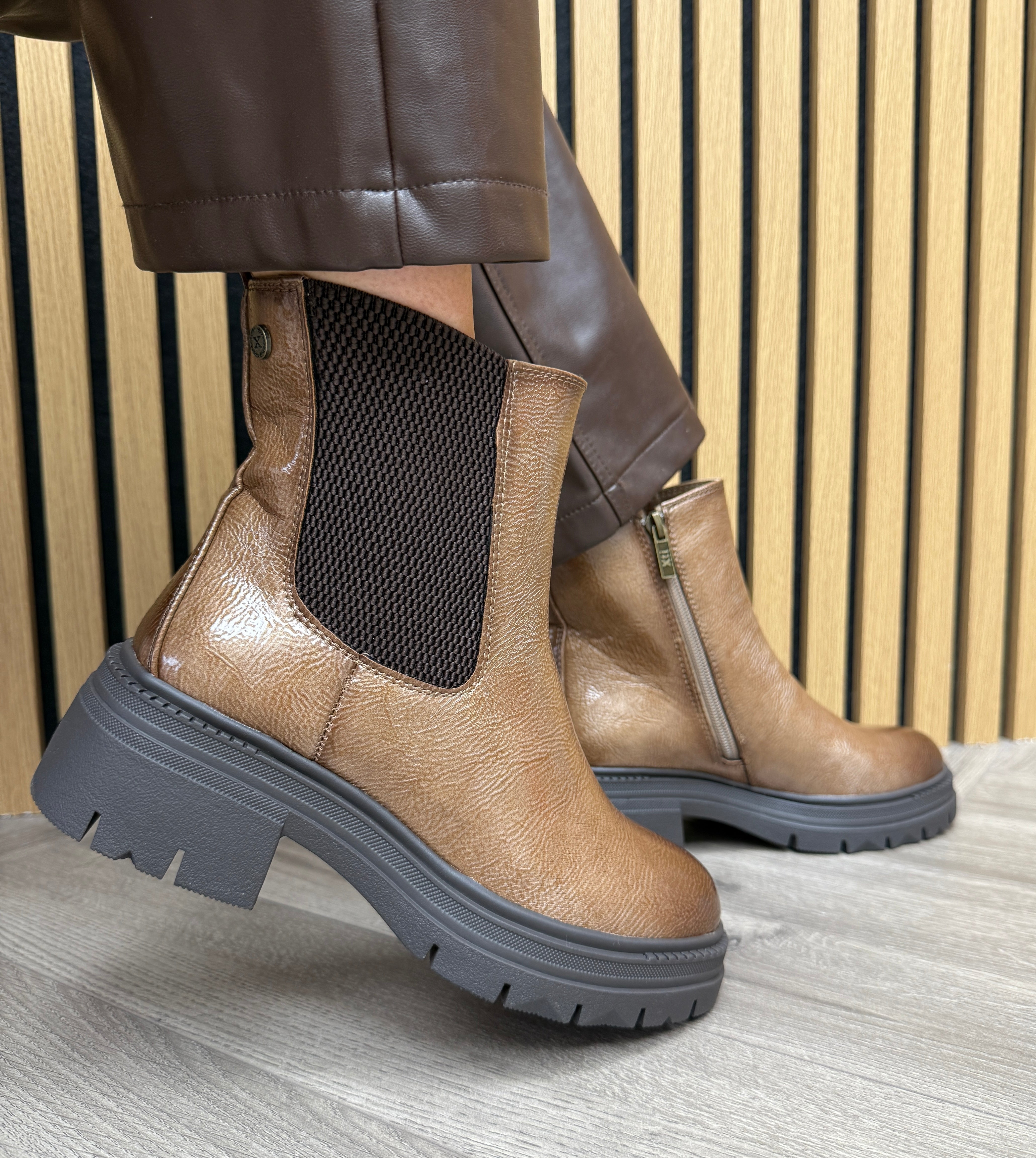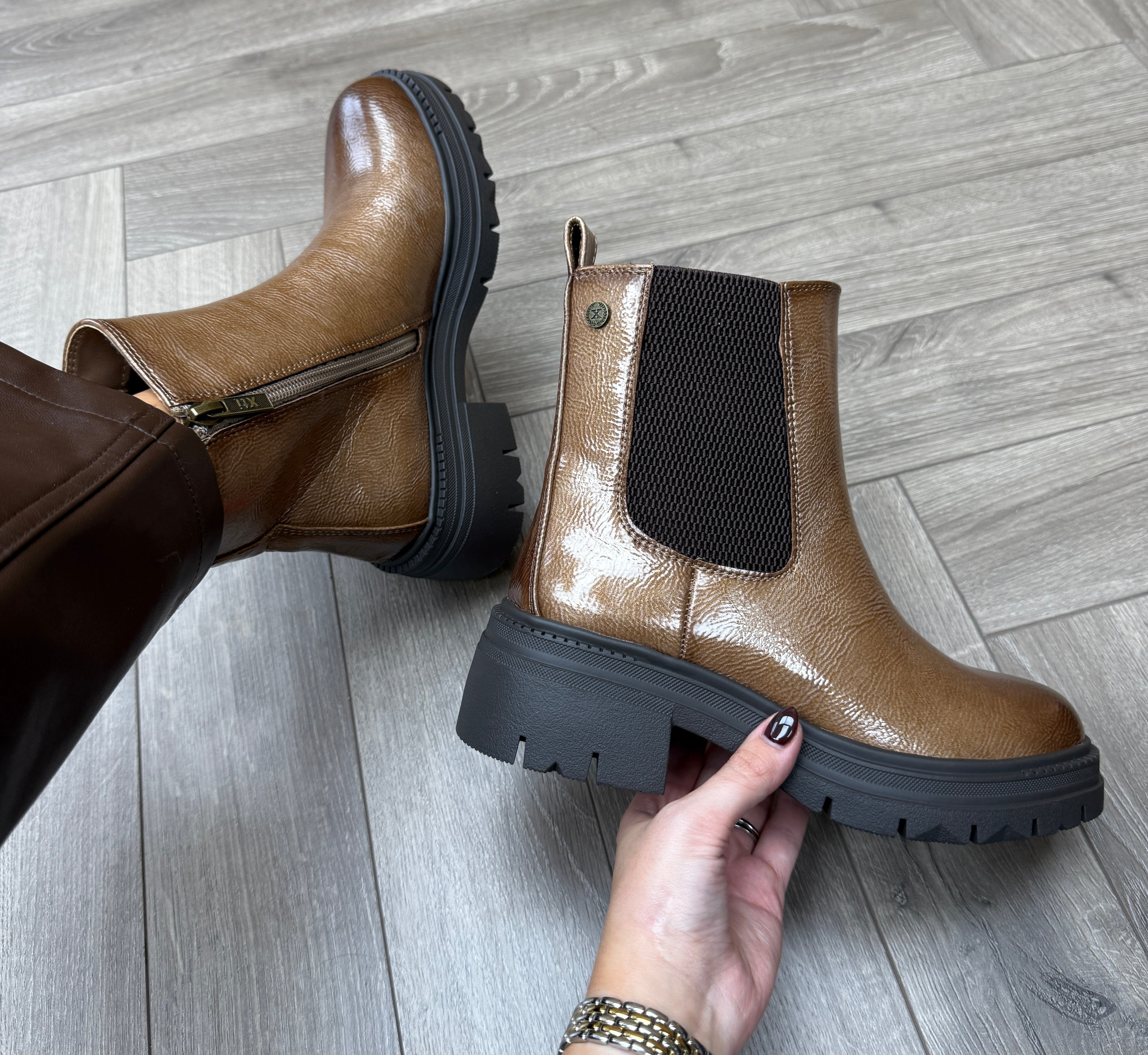 XTI 144297 Patent Boot With Elastic Side - BN.CH.Beige (X3)