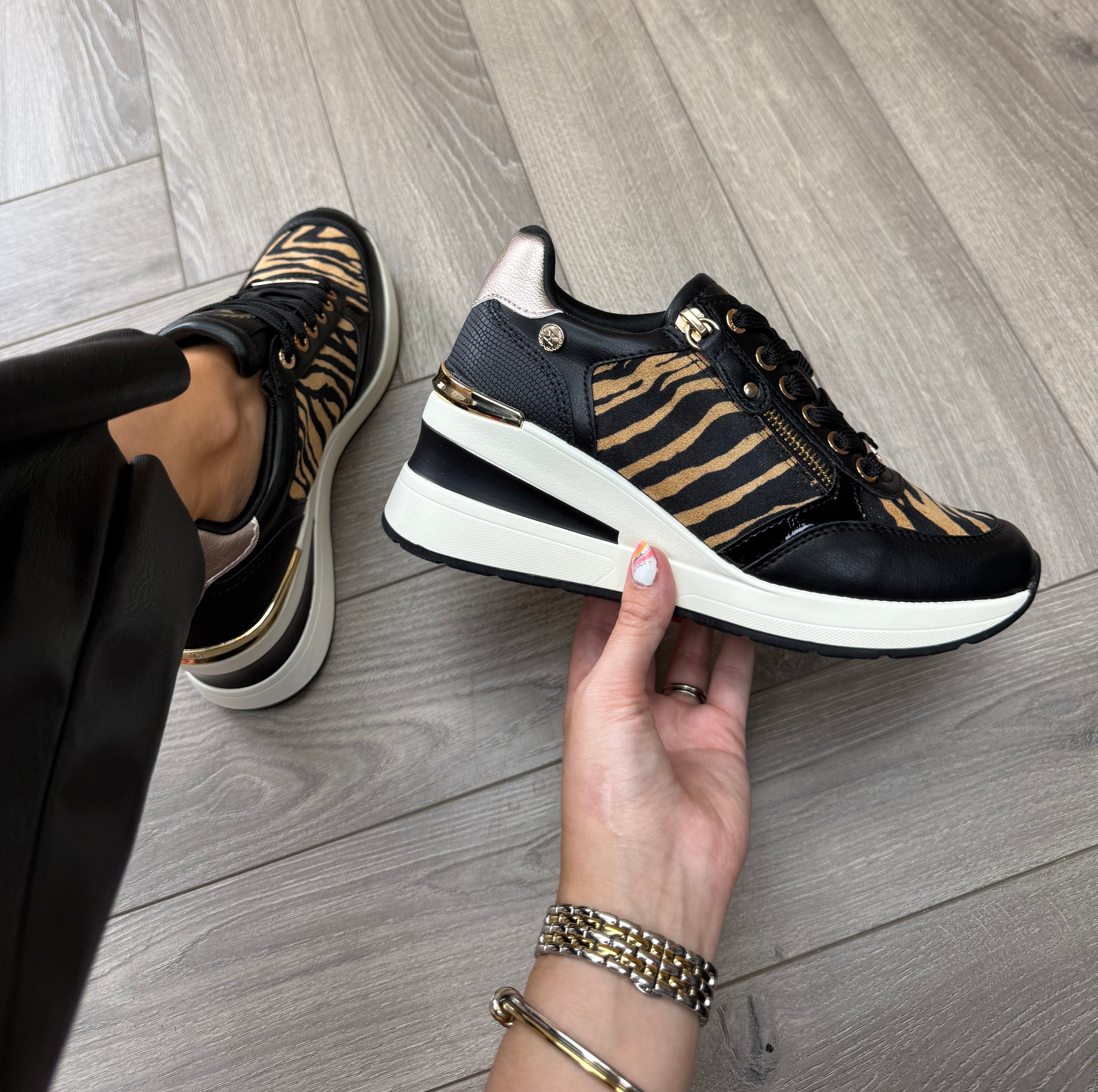 XTI (AW25) 144378 Wedge Trainer With Animal Print - Z.C.Cebra (X14)