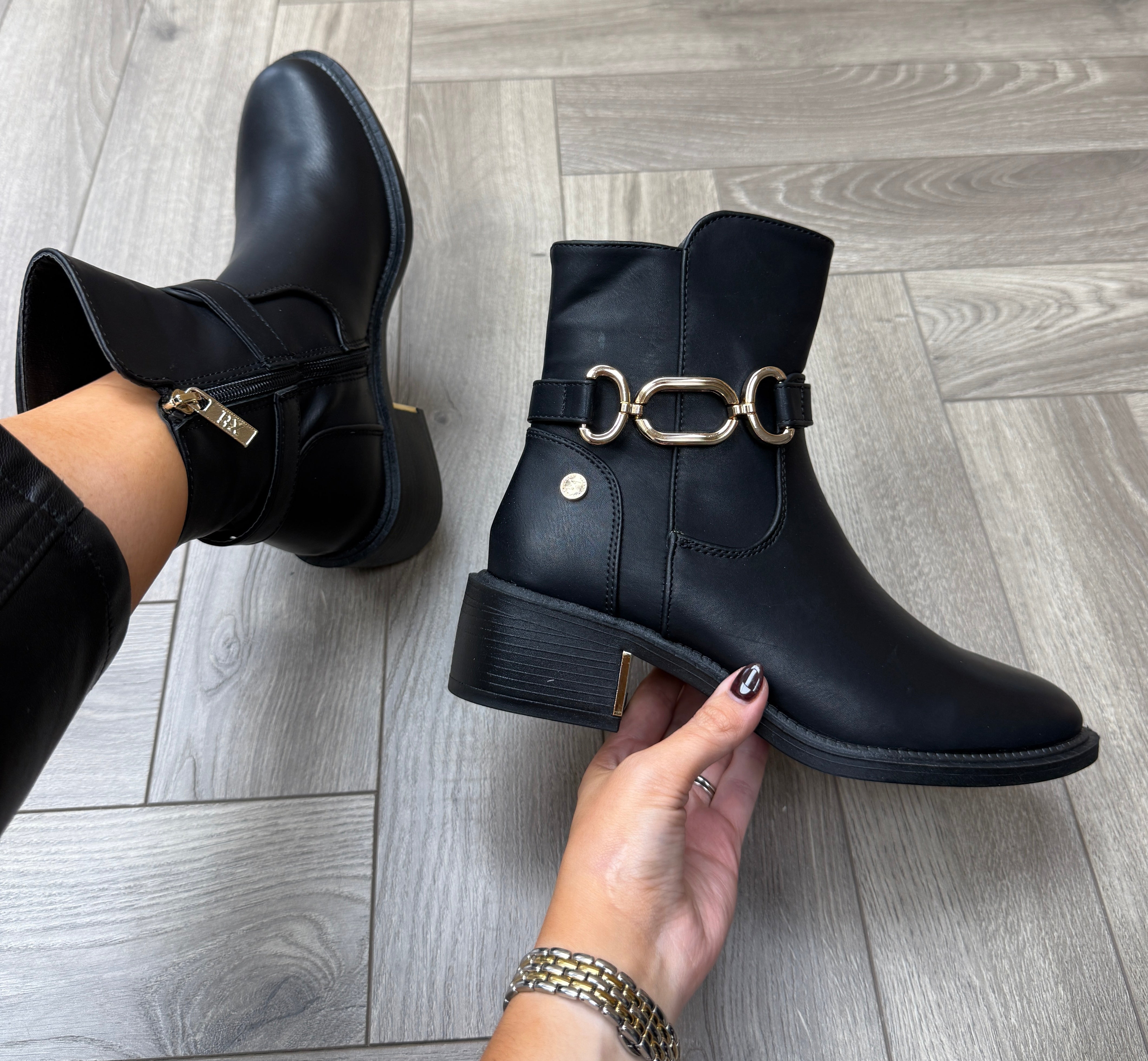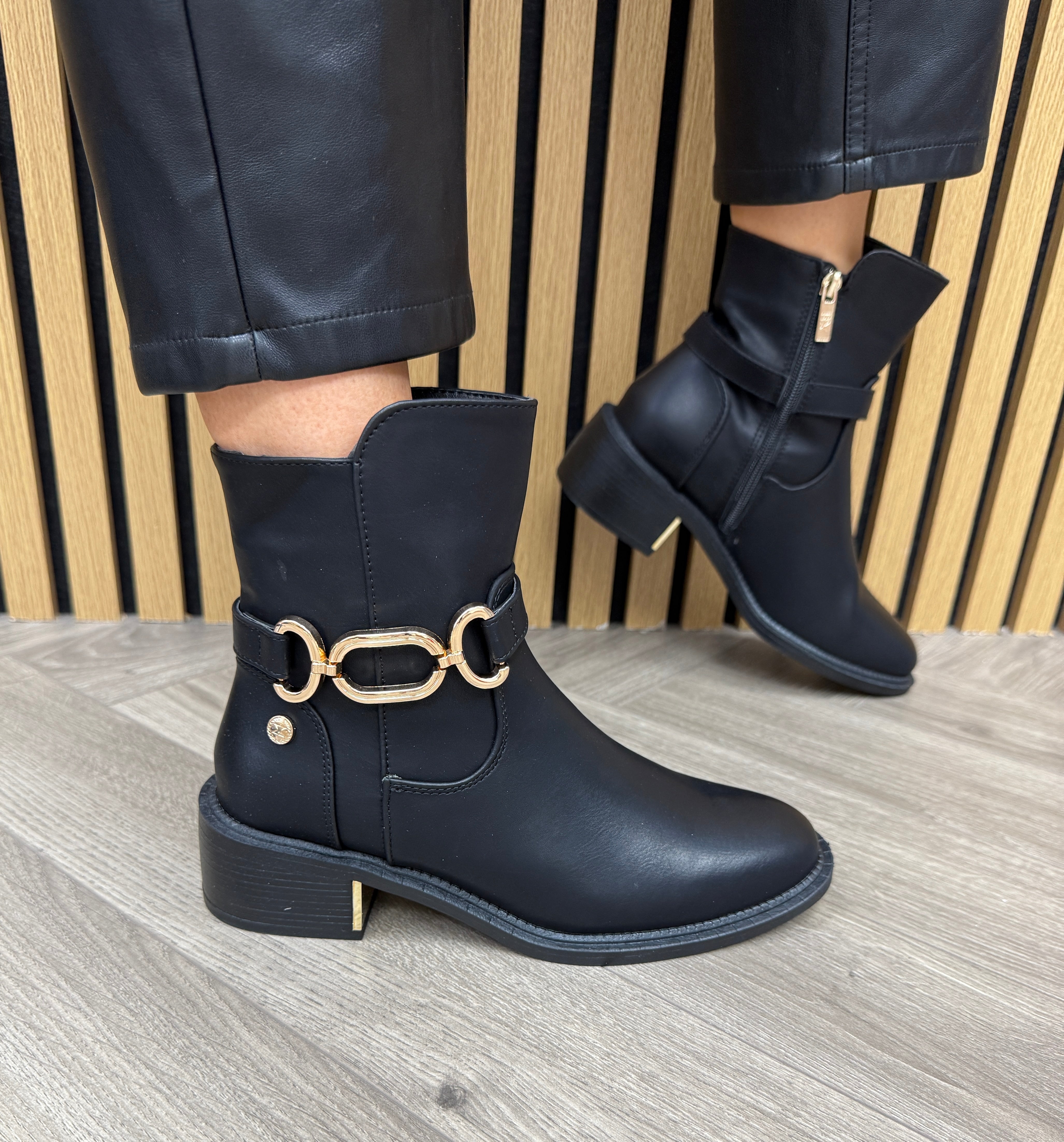 XTI 144398 Ankle Boot With Gold Buckle - BN.C.Negro (XAW26)