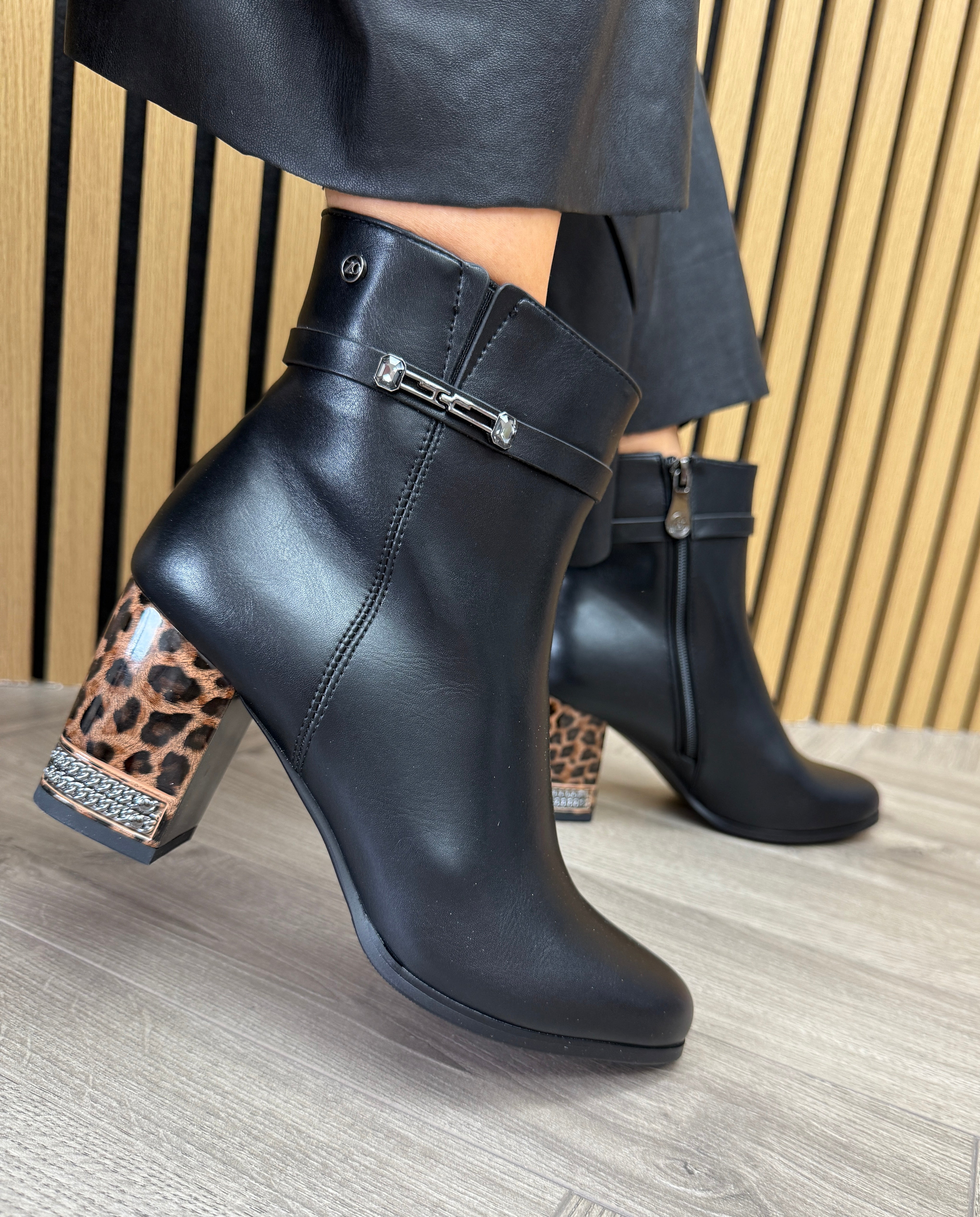 Zanni & Co (AW25) ‘Makassor One’ Leopard Heeled Ankle Boot - Ink Safari (Z28AW)