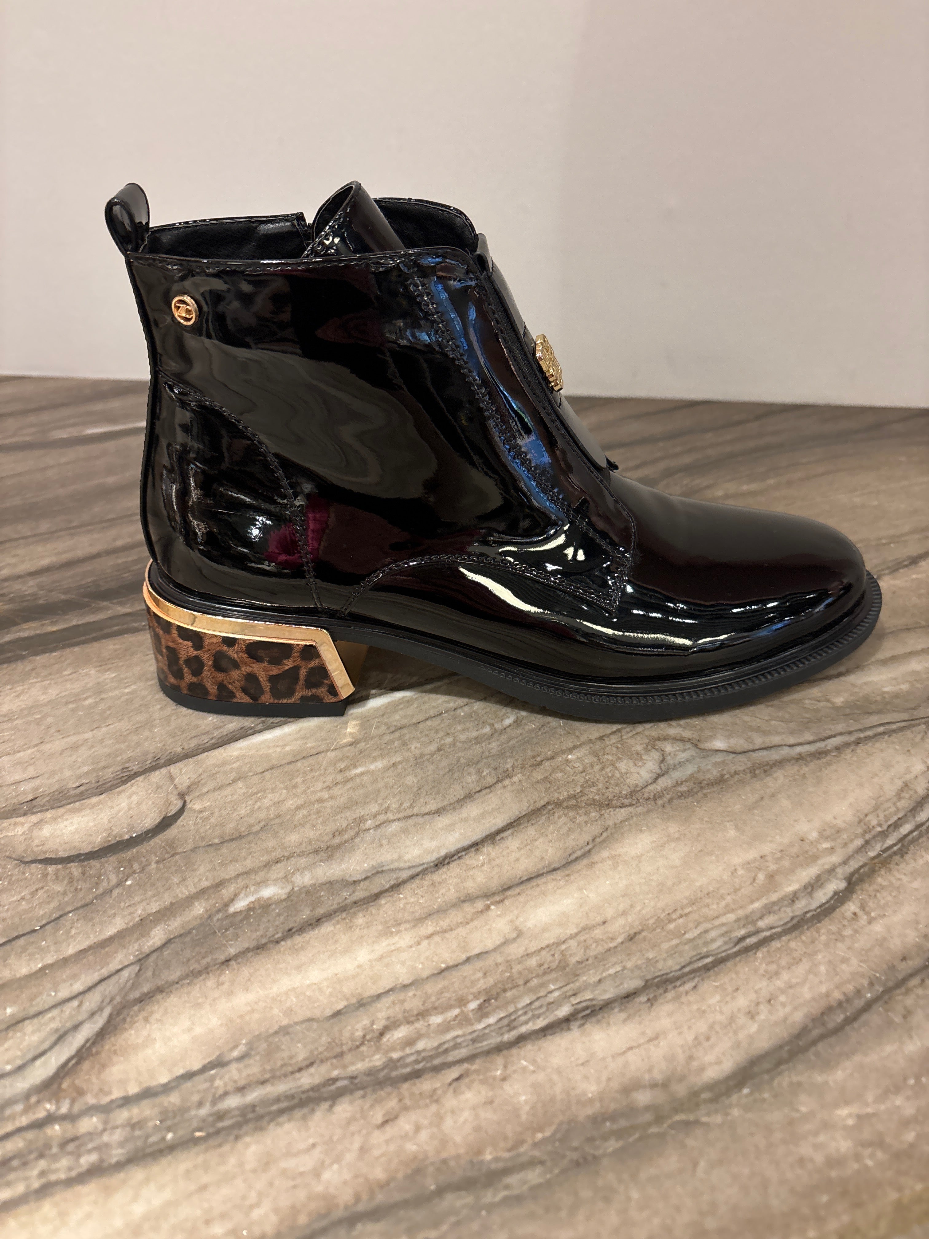 Zanni & Co (AW25) ‘Surabaya One’ Patent Ankle With Leopard Heel - Ink P (Z29AW)